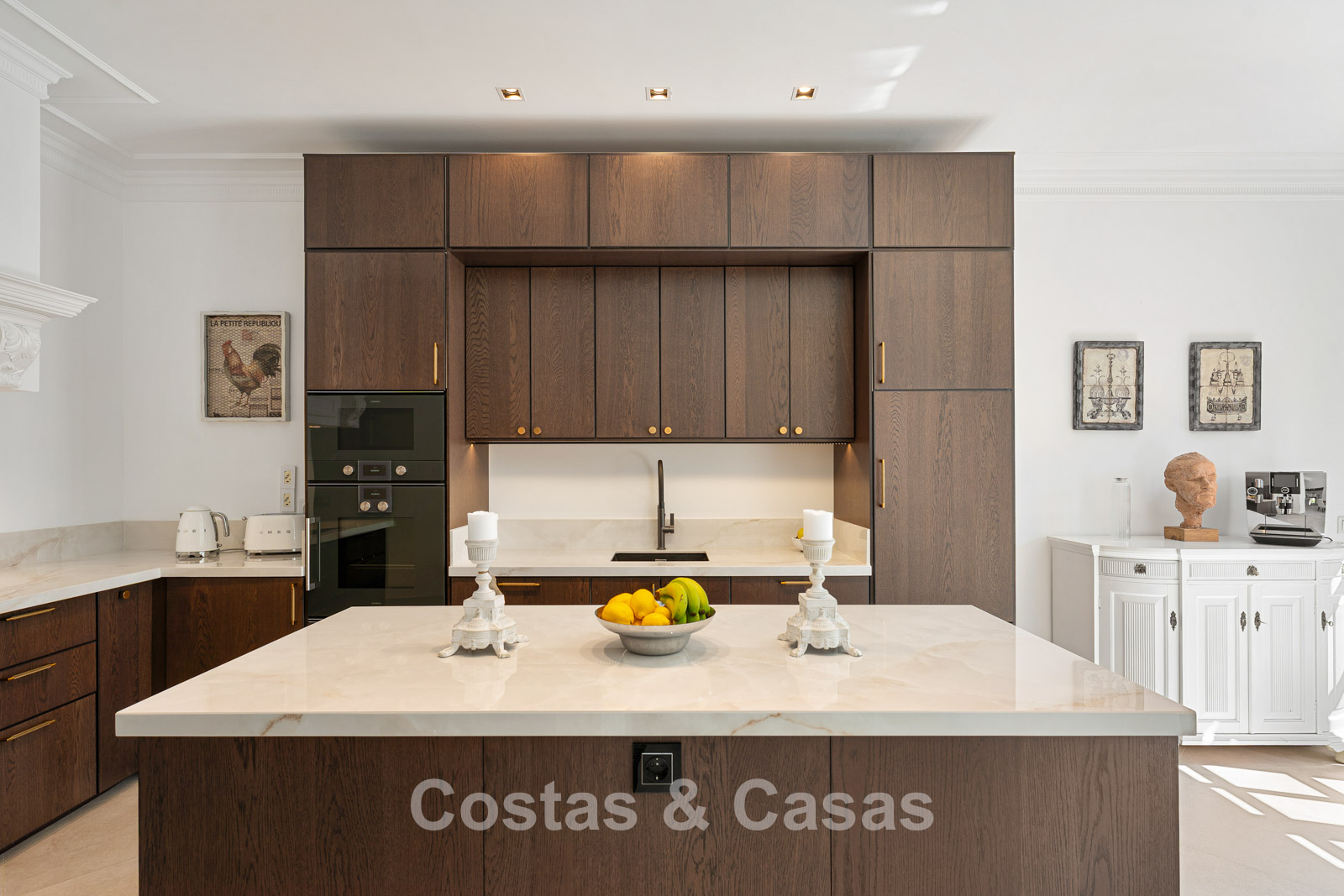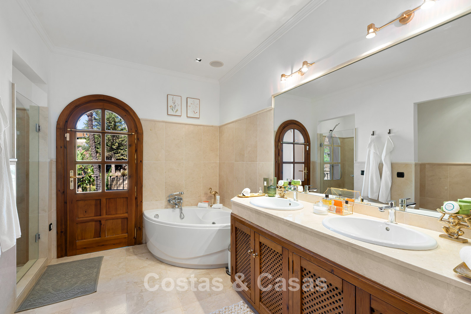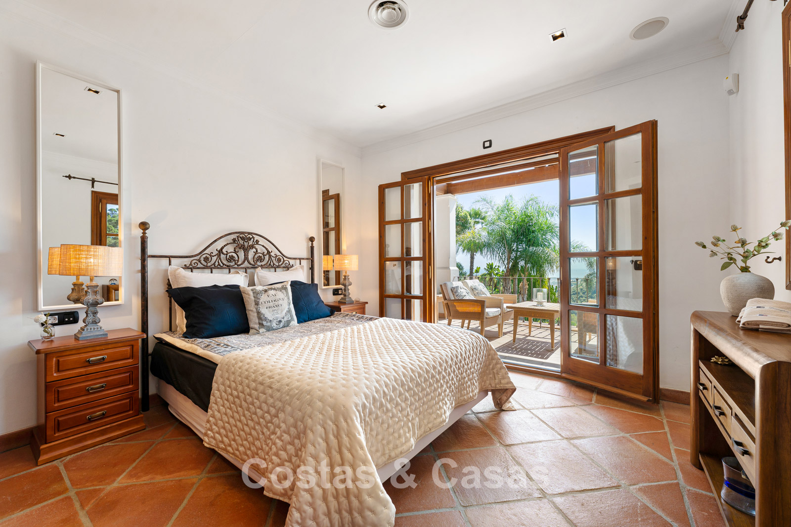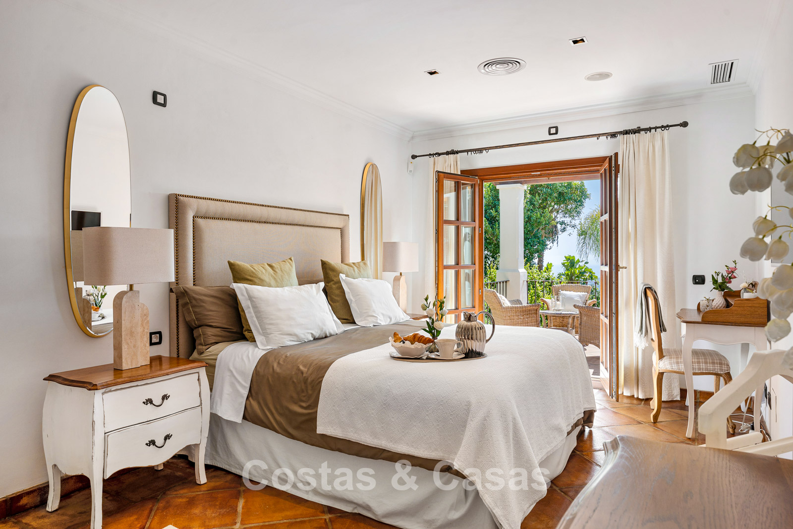 La villa conserva un auténtico carácter andaluz y fue completamente renovada en 2024. La vivienda se distribuye en dos plantas cuidadosamente diseñadas, utilizando materiales de alta calidad que aportan una atmósfera cálida y lujosa. El interior es especialmente luminoso gracias a sus amplios ventanales y a su distribución abierta y fluida. El elegante salón de estilo mediterráneo combina un impresionante techo inclinado de madera con paredes encaladas de estilo rústico, realzadas por arcos clásicos y detalles en hierro forjado. La cocina moderna, totalmente equipada con electrodomésticos de Gaggenau y con isla central, conecta directamente con el comedor. Los cuatro dormitorios disponen de su propio baño en suite de lujo para garantizar el máximo confort. Un aseo de cortesía está convenientemente situado junto al hall de entrada. La planta inferior ofrece espacios adicionales, incluyendo una sala de cine en casa que puede transformarse fácilmente en un dormitorio adicional o gimnasio. Un trastero para almacenamiento extra. La propiedad dispone de amplio aparcamiento privado para varios vehículos.