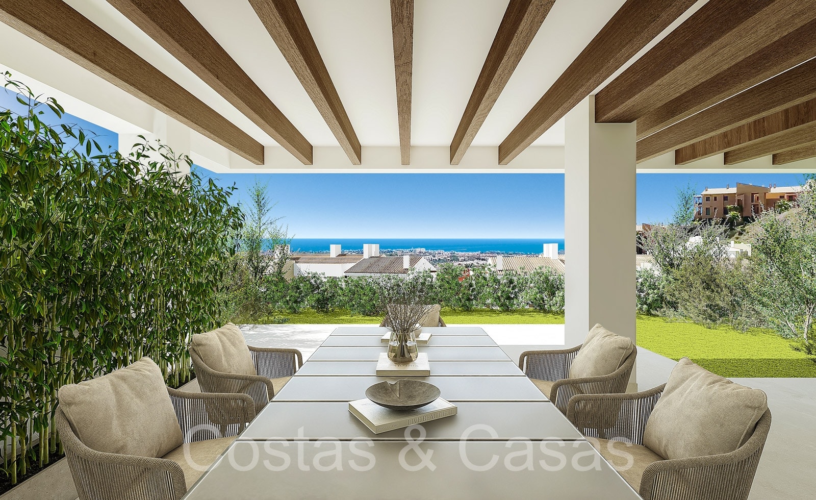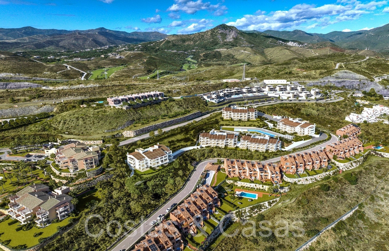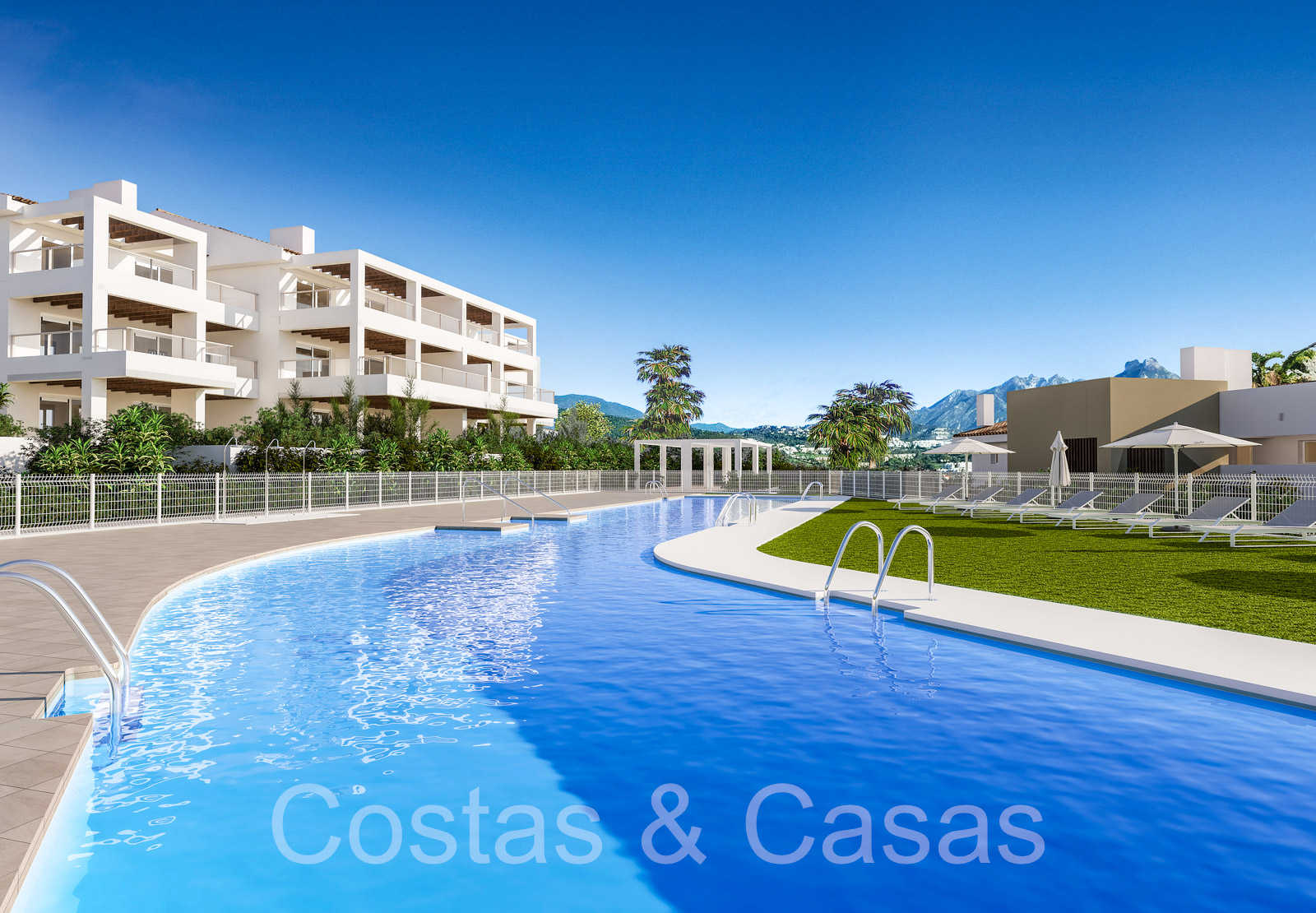 Apartamentos de nueva construcción de estilo contemporáneo. Alto nivel de acabados con materiales de calidad. Orientada al Sureste. Vistas panorámicas a los campos de golf y al mar Mediterráneo. Diseño interior espacioso y elegante. Apartamentos en planta baja, 1a o 2a planta. Concepto de planta abierta. Cocina moderna y abierta, totalmente equipada con electrodomésticos Siemens y equipada con una isla. Junto a un cuarto de servicio. Las altas ventanas correderas generan mucha luz natural en las viviendas y dan a las amplias terrazas. Comedor integrado. 2 o 3 dormitorios, 2 baños. Suelos porcelánicos de calidad 90x90cm de la marca Saloni. Trastero y plaza de aparcamiento en garaje subterráneo incluidos.