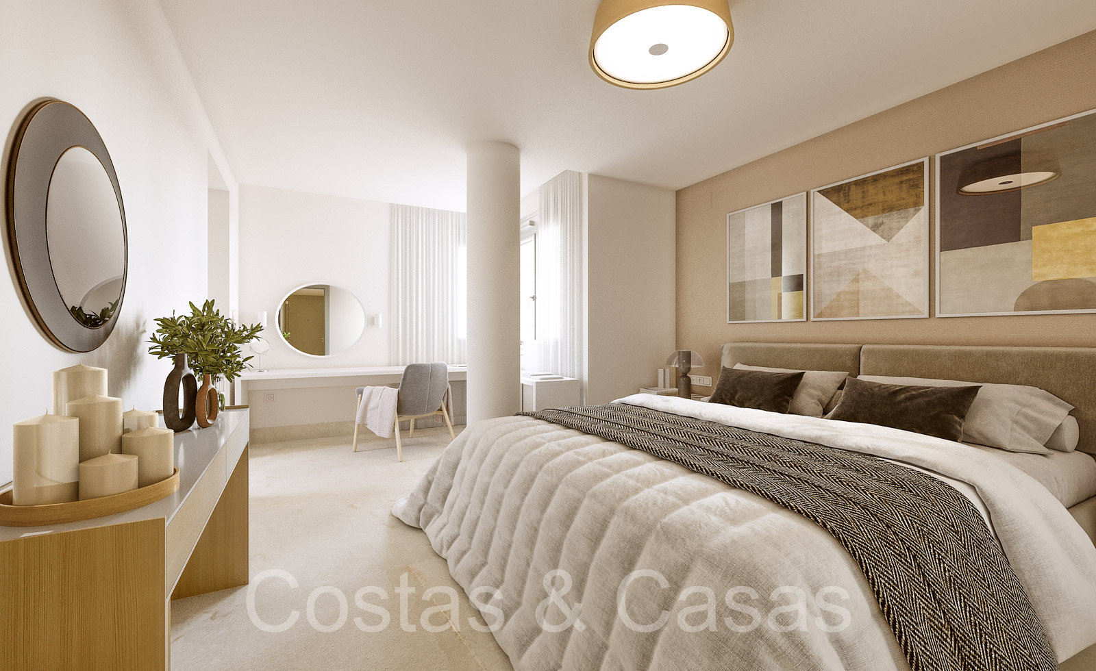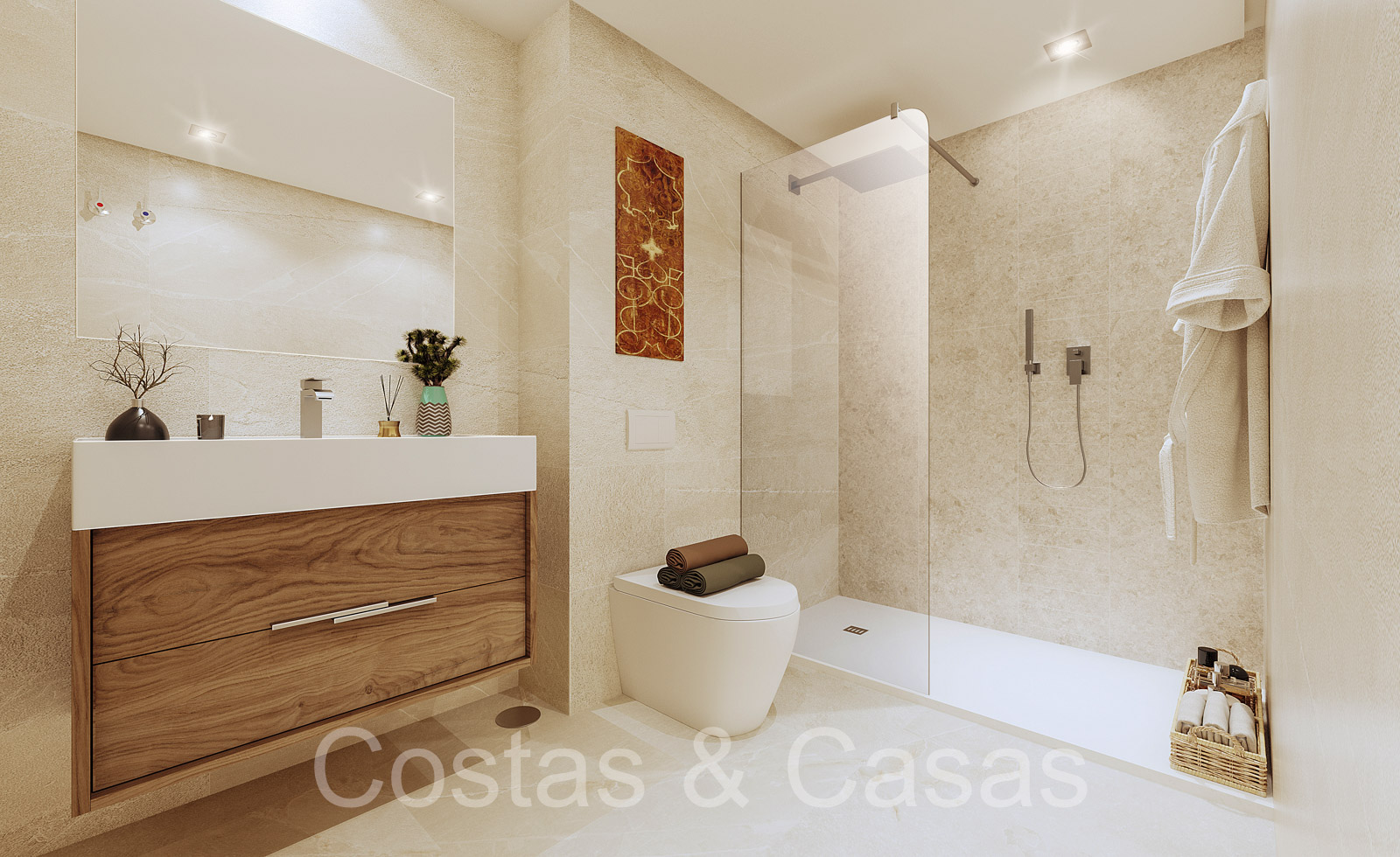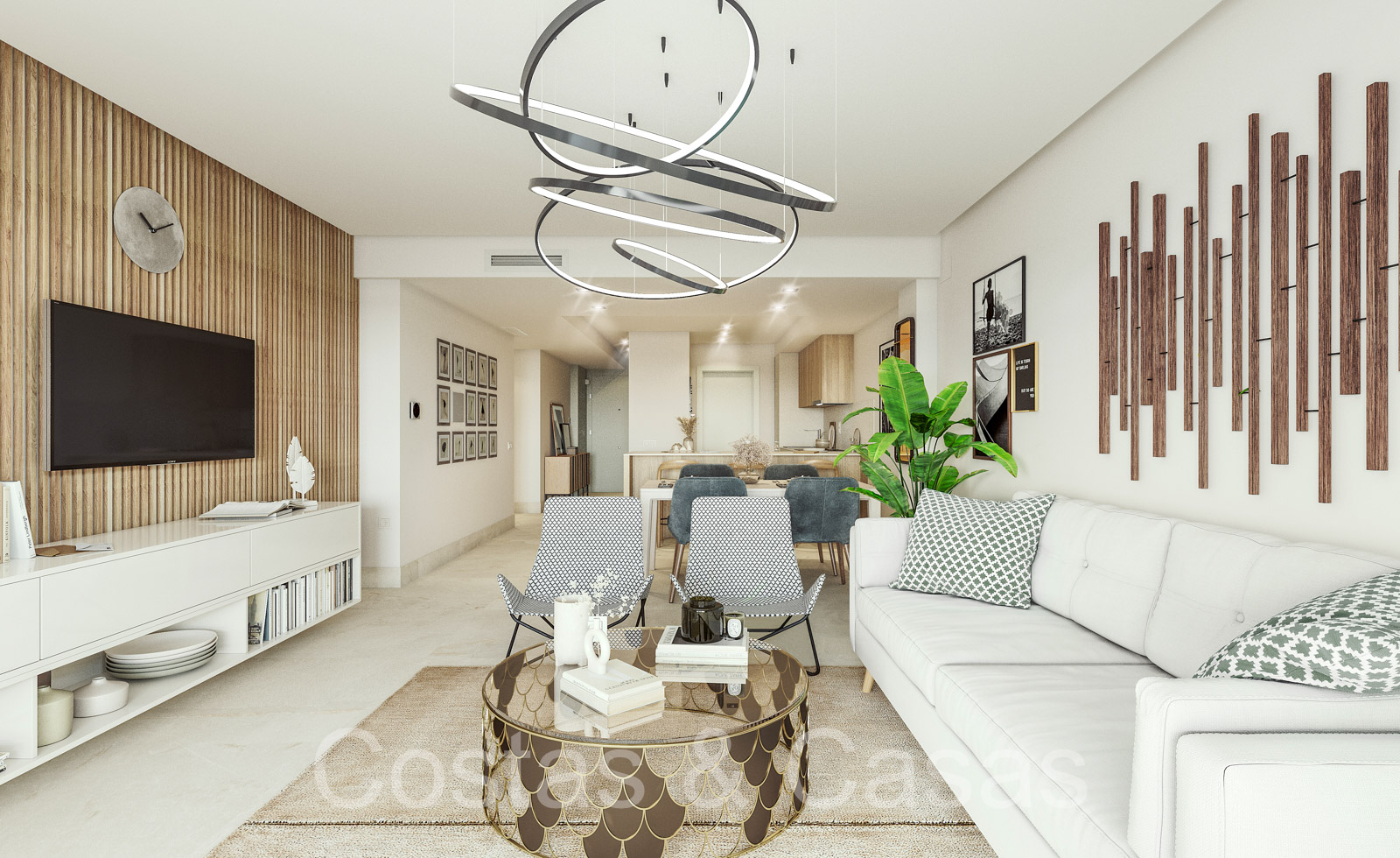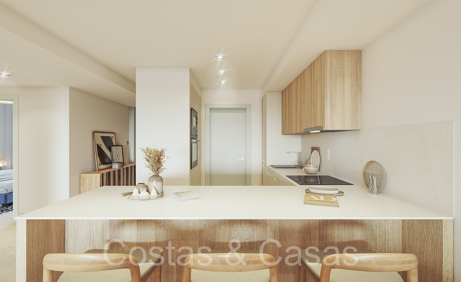 Apartamentos de nueva construcción de estilo contemporáneo. Alto nivel de acabados con materiales de calidad. Orientada al Sureste. Vistas panorámicas a los campos de golf y al mar Mediterráneo. Diseño interior espacioso y elegante. Apartamentos en planta baja, 1a o 2a planta. Concepto de planta abierta. Cocina moderna y abierta, totalmente equipada con electrodomésticos Siemens y equipada con una isla. Junto a un cuarto de servicio. Las altas ventanas correderas generan mucha luz natural en las viviendas y dan a las amplias terrazas. Comedor integrado. 2 o 3 dormitorios, 2 baños. Suelos porcelánicos de calidad 90x90cm de la marca Saloni. Trastero y plaza de aparcamiento en garaje subterráneo incluidos.