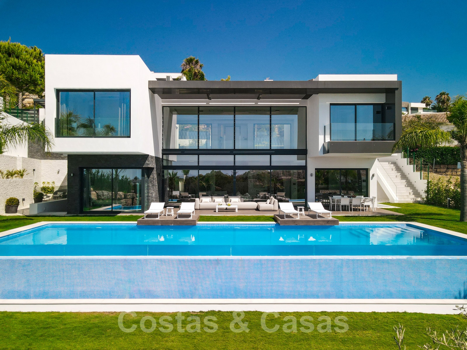 Nueva villa de diseño moderno en venta con vistas al golf y al mar en Marbella - Benahavis