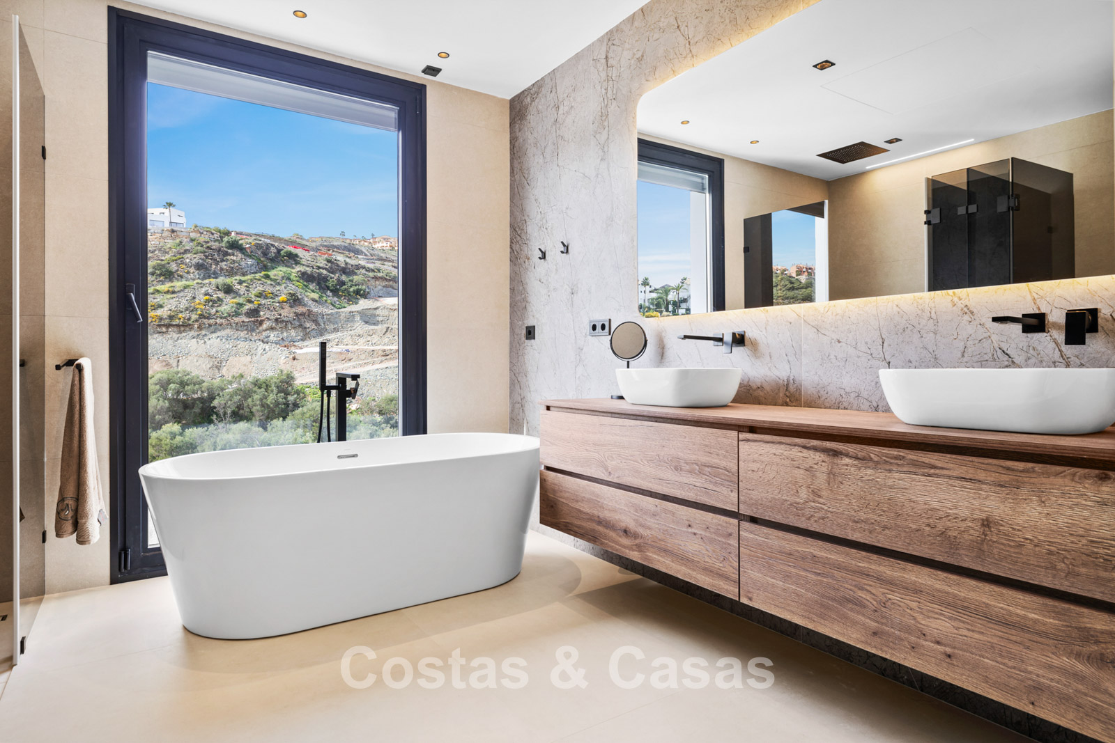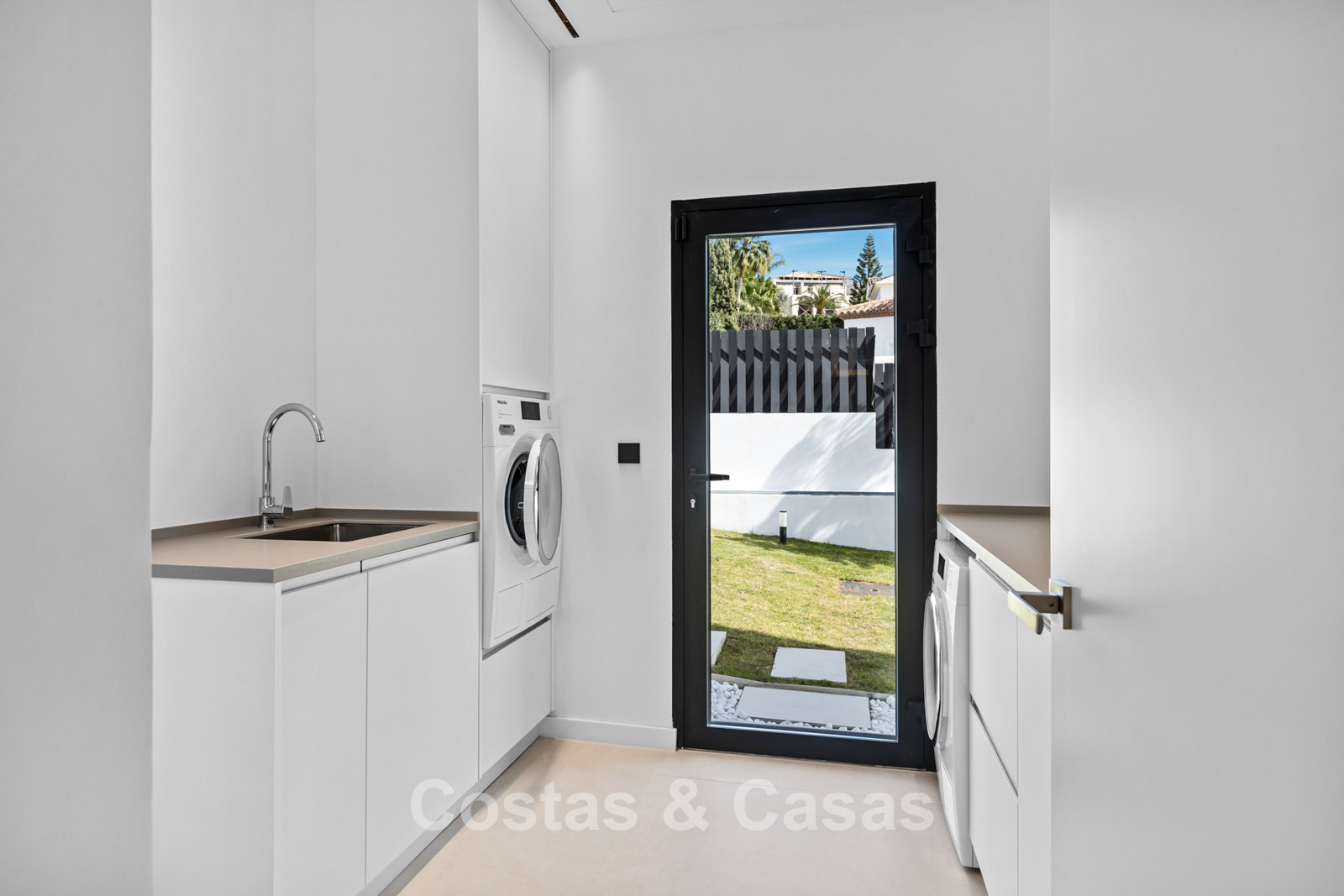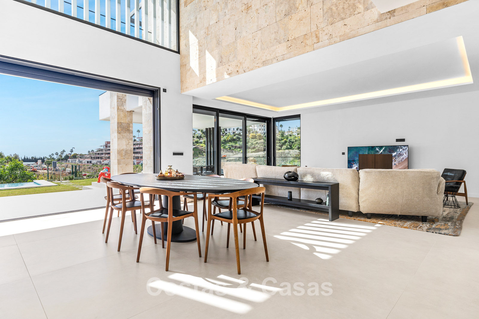 Villa independiente de lujo con una arquitectura moderna y minimalista con líneas limpias y un diseño abierto que combina perfectamente con el entorno mediterráneo. Terminada en 2024 según los más altos estándares de calidad. Entrada, hall, amplio living y comedor con techos altos. Grandes ventanales de planta a techo y barandillas de vidrio maximizan la luz y brindan una conexión perfecta entre el interior y el exterior. Una cocina abierta y totalmente equipada con electrodomésticos Miele y barra de desayuno. Comedor integrado. 4 dormitorios, 4 baños y aseo independiente. El dormitorio principal en suite dispone de vestidor. En la planta inferior hay una gran sala polivalente que se puede configurar libremente. Suelos de piedra natural de gran formato en color crema. Lavandería, equipada con espacio de almacenaje y máquinas Miele. Trastero. Garaje interior para 2 coches. Al lado del garaje hay una cochera cubierta para 2 coches.