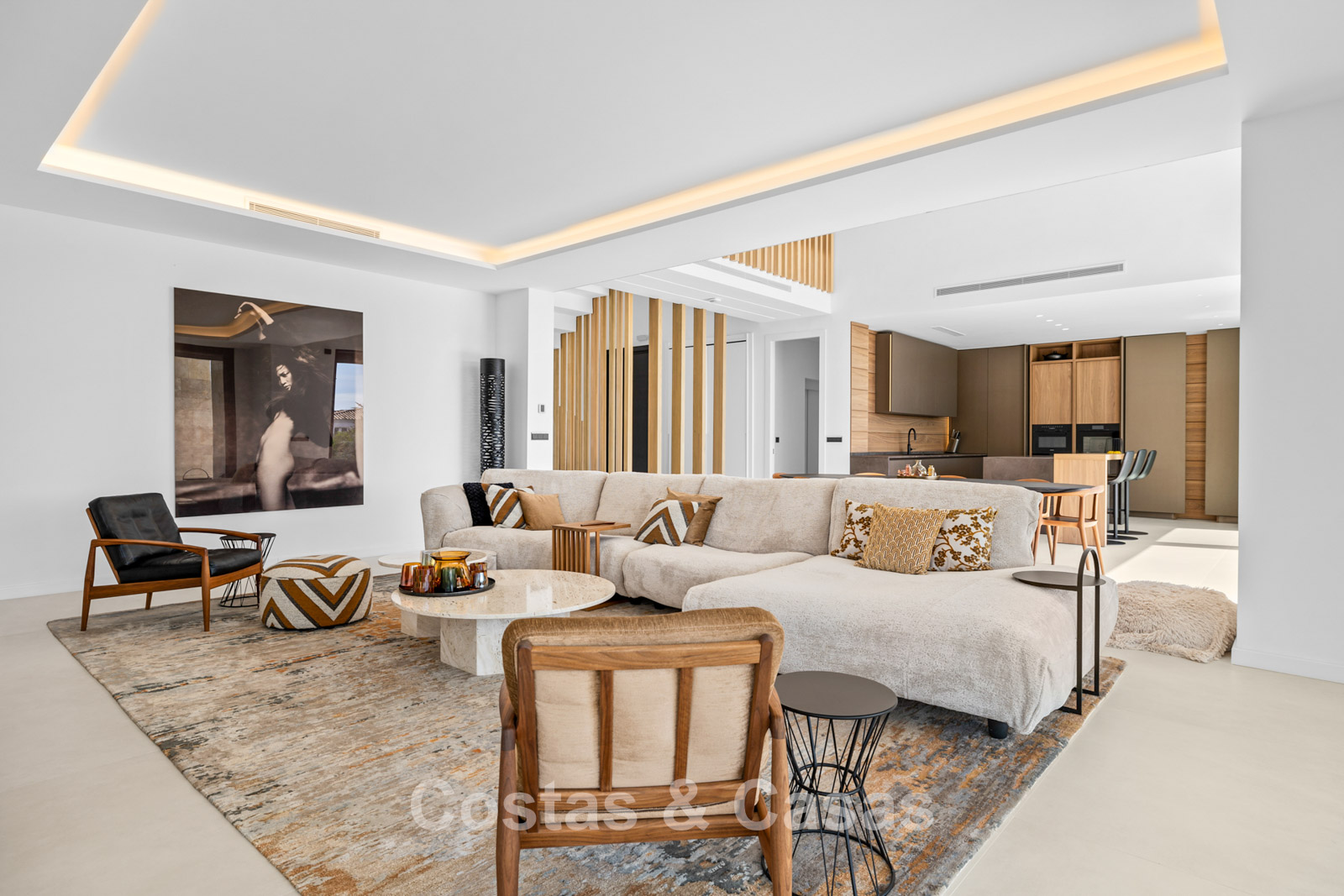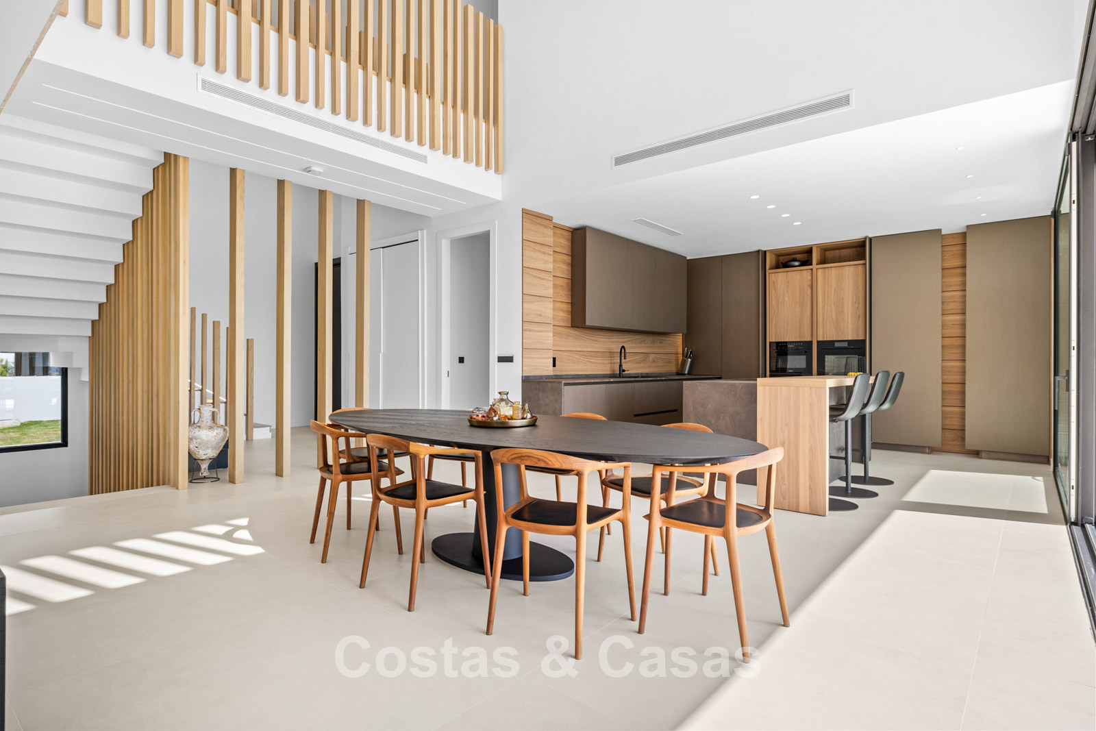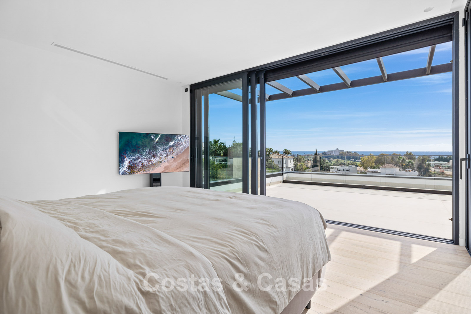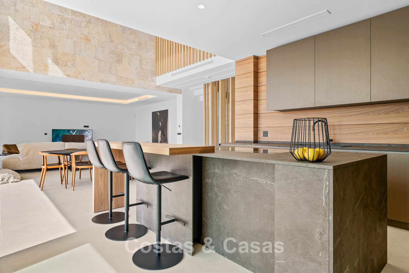 Villa independiente de lujo con una arquitectura moderna y minimalista con líneas limpias y un diseño abierto que combina perfectamente con el entorno mediterráneo. Terminada en 2024 según los más altos estándares de calidad. Entrada, hall, amplio living y comedor con techos altos. Grandes ventanales de planta a techo y barandillas de vidrio maximizan la luz y brindan una conexión perfecta entre el interior y el exterior. Una cocina abierta y totalmente equipada con electrodomésticos Miele y barra de desayuno. Comedor integrado. 4 dormitorios, 4 baños y aseo independiente. El dormitorio principal en suite dispone de vestidor. En la planta inferior hay una gran sala polivalente que se puede configurar libremente. Suelos de piedra natural de gran formato en color crema. Lavandería, equipada con espacio de almacenaje y máquinas Miele. Trastero. Garaje interior para 2 coches. Al lado del garaje hay una cochera cubierta para 2 coches.