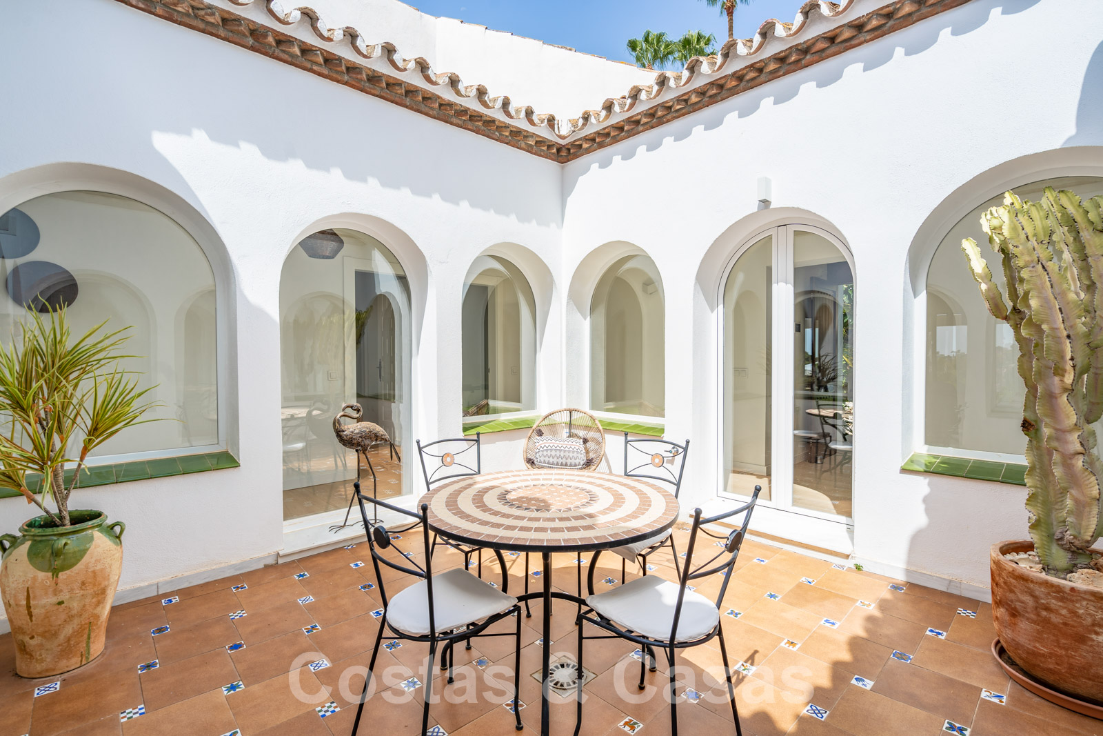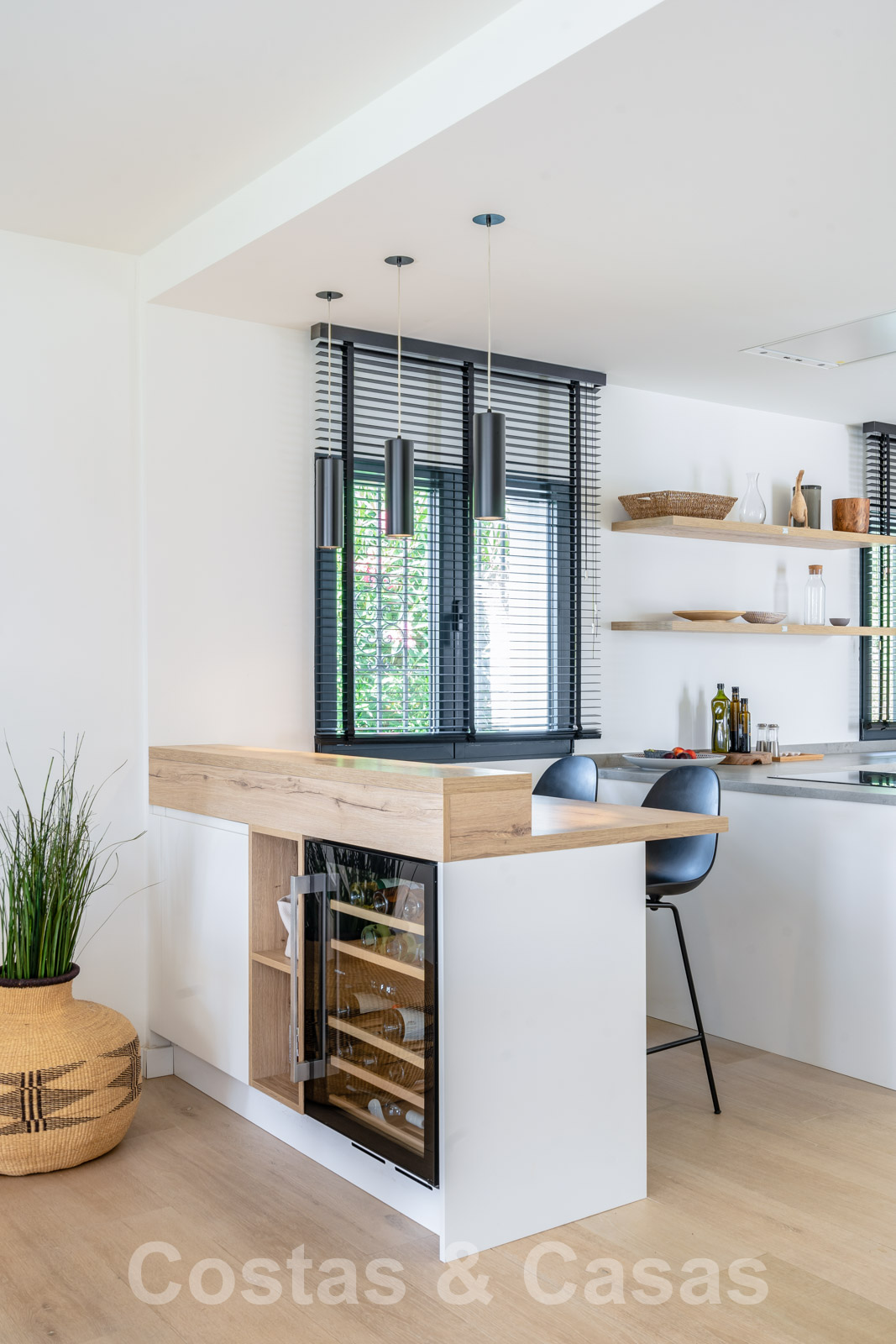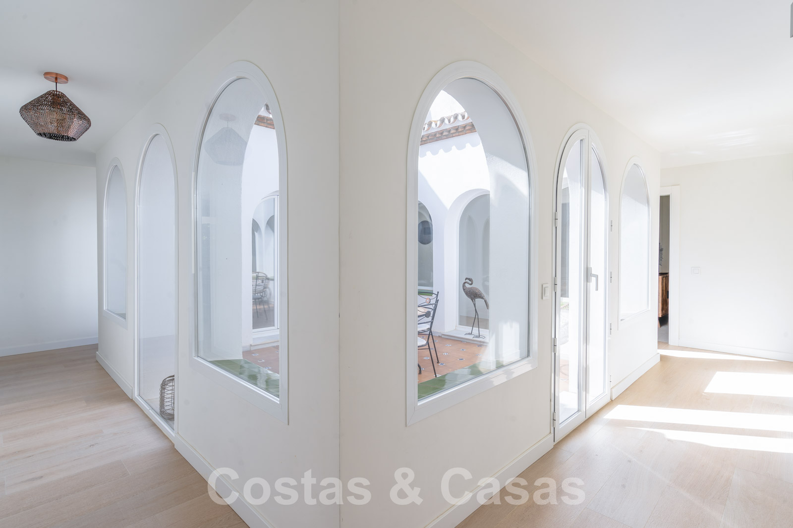 Villa de una sola planta con un estilo arquitectónico tradicional español. Renovado en 2020 a un alto nivel. Interior muy luminoso y ventilado gracias a la distribución abierta, ventanas altas y un patio central. Amplio salón de TV equipado con chimenea. Cocina abierta totalmente equipada con nevera para vinos y barra de desayuno. Comedor integrado. 4 dormitorios, 3 baños. Suelos de parque de calidad. Garaje privado cerrado e independiente.