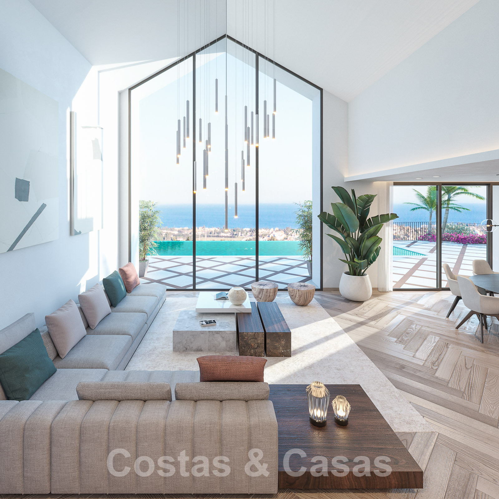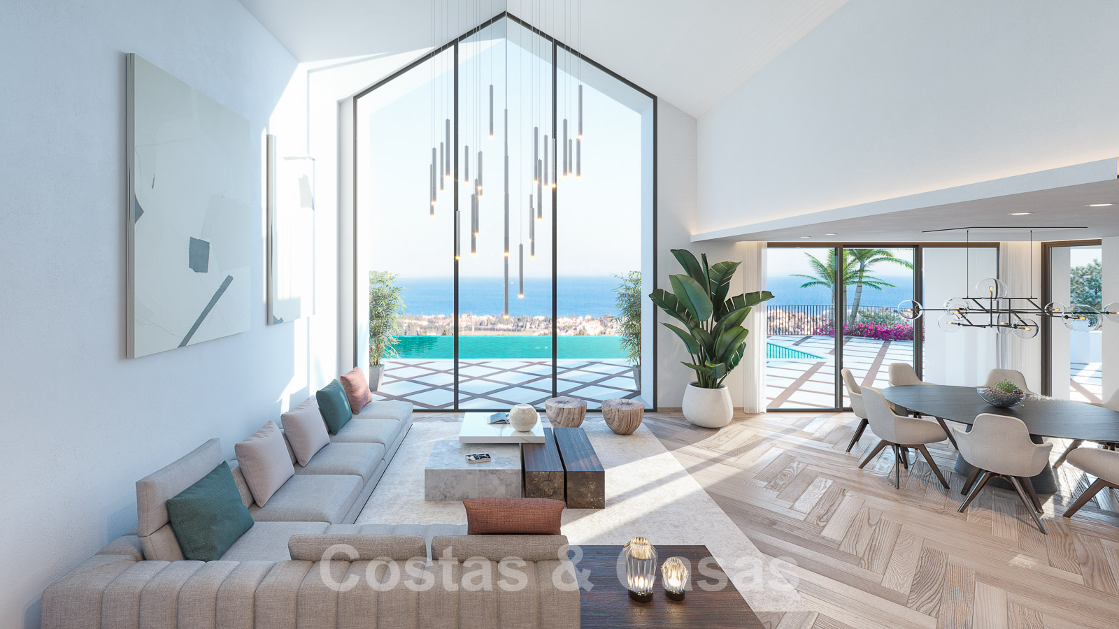 Las ventanas correderas de suelo a techo en toda la villa crean espacios luminosos.