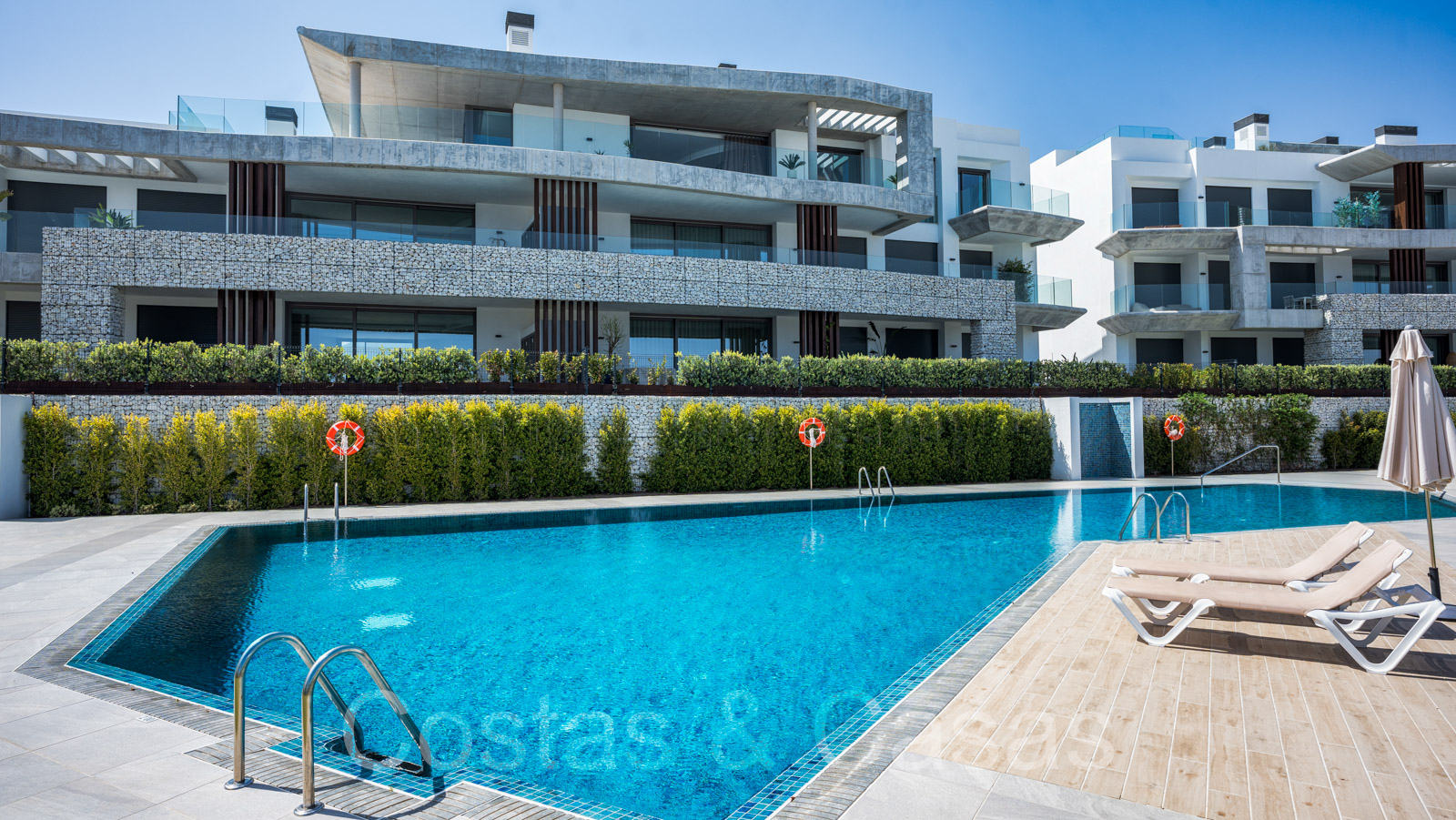 Ático modernista en complejo boutique. Utilizando equipos de calidad y materiales de primera. Orientación sur. Vistas panorámicas al lago, al paisaje de montaña, al campo de golf y al mar Mediterráneo. La terraza extra espaciosa está equipada con una piscina privada y mucho espacio para relajarse y entretenerse. Las ventanas corredizas totalmente retráctiles de suelo a techo con perfiles empotrados brindan una transición perfecta entre el interior y el exterior. Sala de estar luminosa con diseño abierto. Cocina abierta de alta calidad con electrodomésticos Siemens e isla de cocina. Comedor integrado. 4 dormitorios, 3 baños y aseo independiente. Suelos de gres de piedra natural de gran formato. Trastero. 3 plazas de aparcamiento interiores incluidas.
