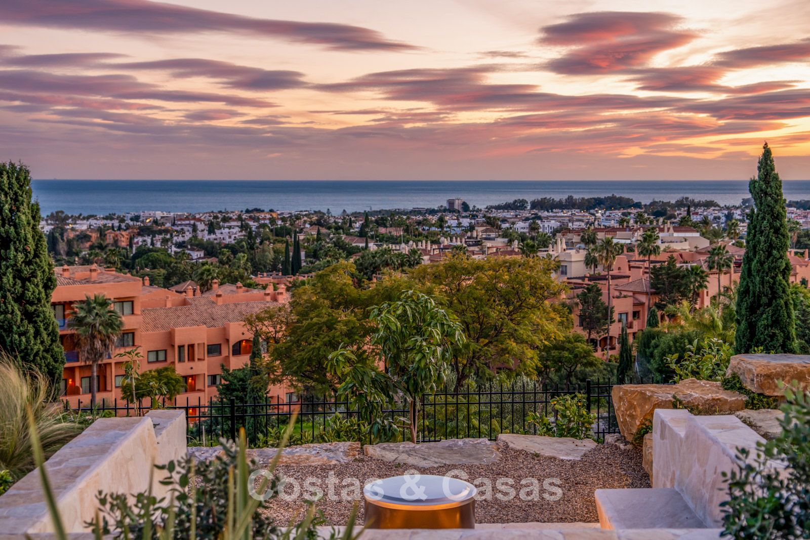 Situada en un entorno tranquilo dentro de una exclusiva comunidad de resort y golf de 5 estrellas en Benahavís. En el centro del resort se encuentra un impresionante hotel de cinco estrellas con amplias instalaciones de bienestar, restaurantes de alta cocina, campo de golf, gimnasio, pistas de tenis, un beach club exclusivo y campos de cricket. Hermosas playas, beach clubs de moda y varios supermercados se encuentran a pocos minutos en coche. San Pedro, Puerto Banús y el centro de Estepona están a solo 10–15 minutos. El aeropuerto de Málaga se alcanza en 45–50 minutos por la AP-7, con un tiempo similar hasta el aeropuerto de Gibraltar.