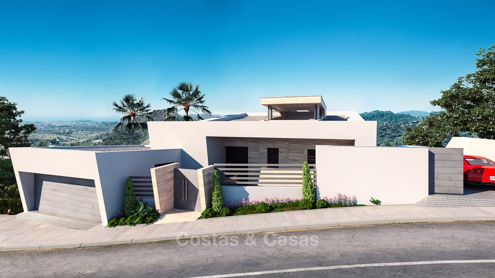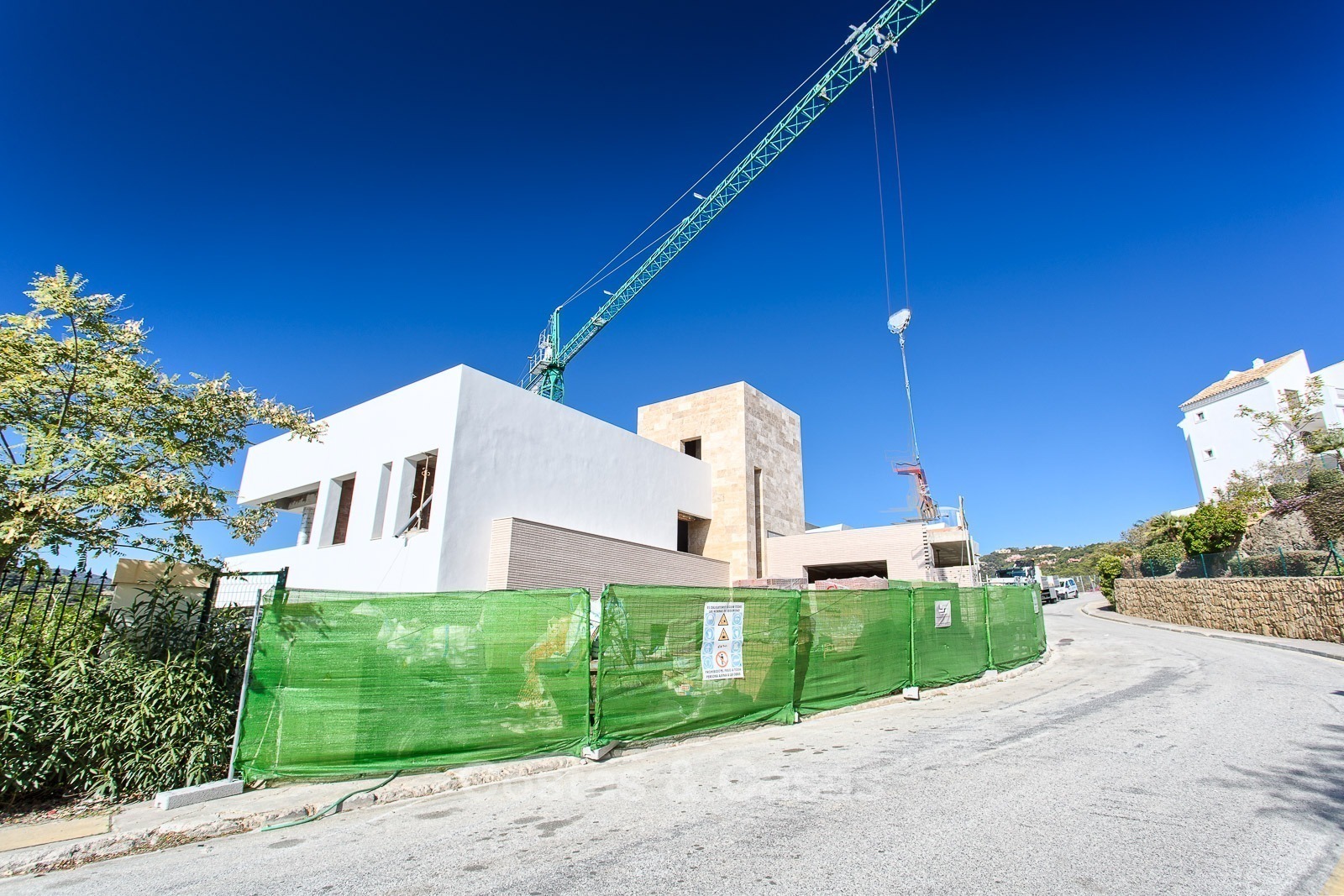 Villa muy moderna con orientación oeste Año de construcción: 2017 / 2018 Garaje: 2 coches + aparcamiento para 2 coches 3 niveles Alarma Ascensor y escaleras Calefacción por suelo radiante A/A con calefacción Pavimento de mármol
