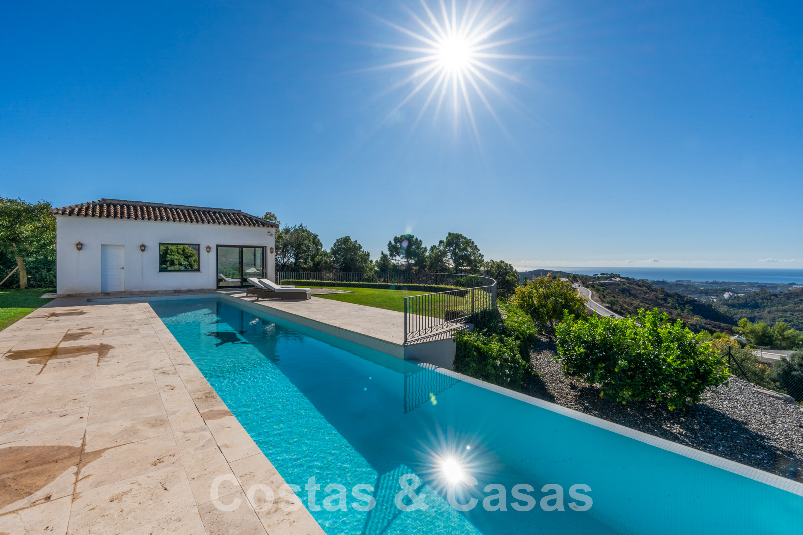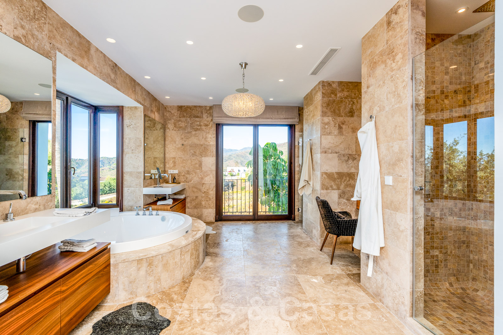 Situada en un entorno tranquilo y natural en las colinas del municipio de Benahavis. Urbanización cerrada con seguridad 24 horas. A 15 minutos en coche de la playa y de todos los servicios. Se puede llegar a varios campos de golf en sólo 10 minutos en coche. Vistas panorámicas del valle con las montañas y el mar.