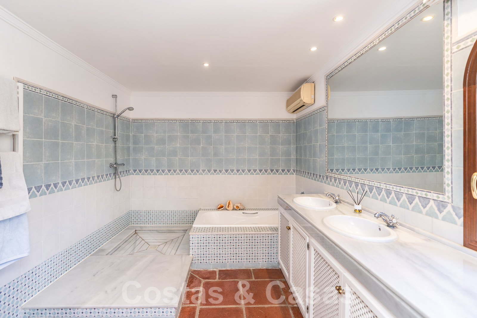 Clásica villa de lujo en venta con un estilo arquitectónico tradicional y vistas panorámicas al mar situada en Marbella - Benahavis