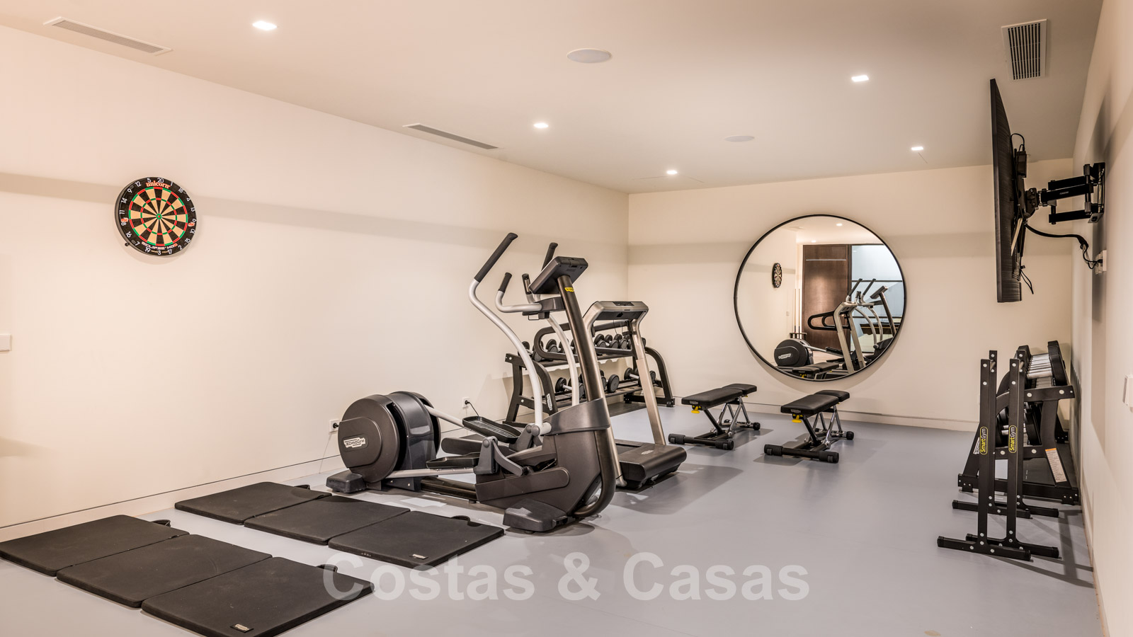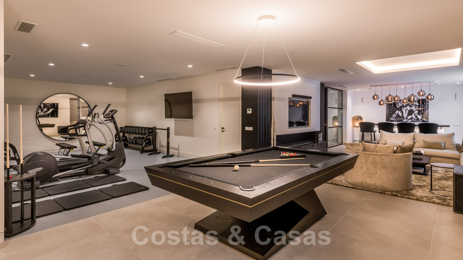 El sótano está diseñado como un espacio de relax con una zona de estar integrada con chimenea eléctrica, bar, billar y un gimnasio completamente equipado. También hay dos dormitorios de invitados en suite, un lavadero y un trastero adicional.