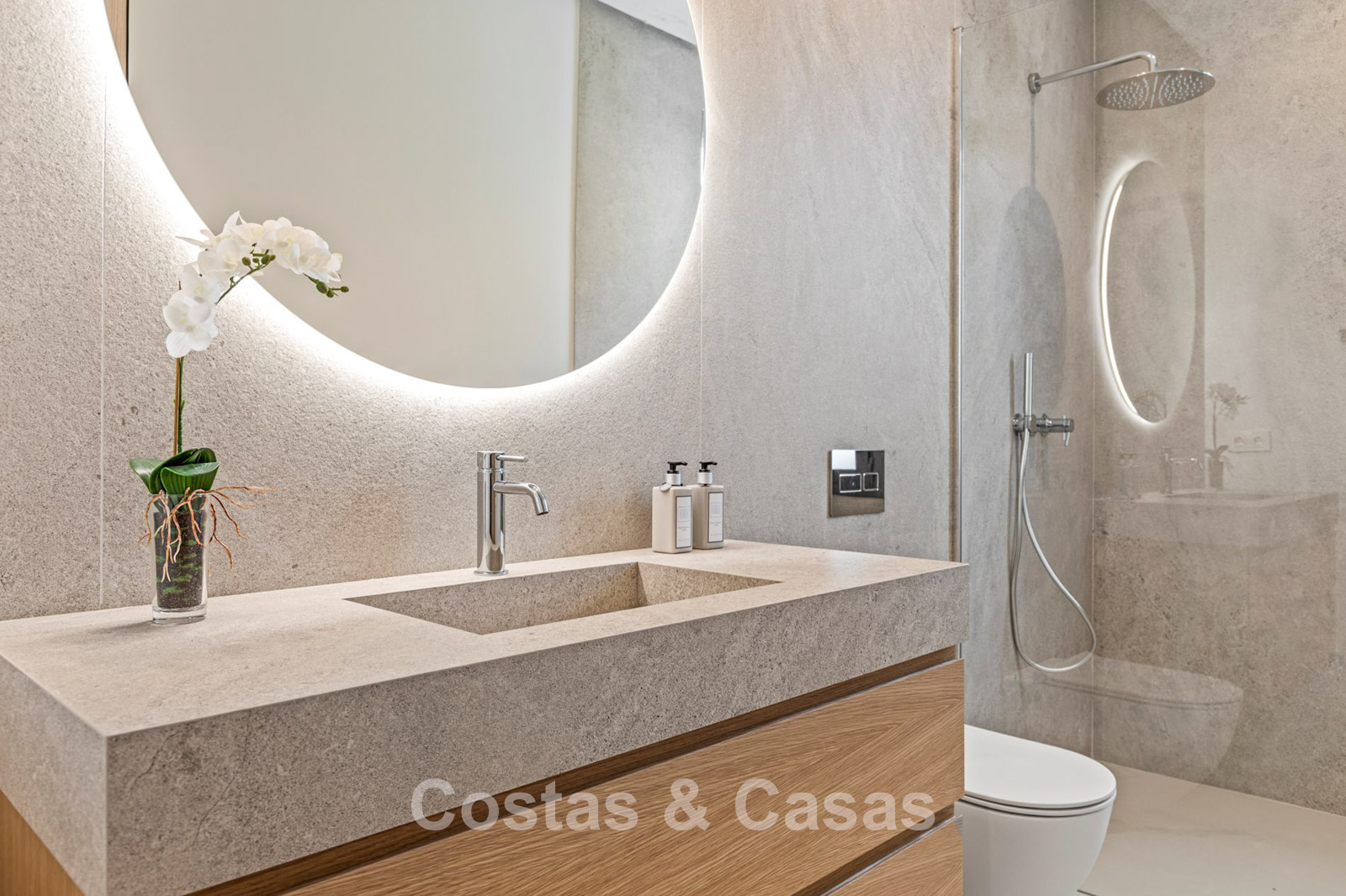Elegante villa independiente con una armoniosa combinación de arquitectura moderna y minimalista. Diseñada con excelente artesanía, materiales sostenibles y un diseño italiano a medida. Los altos ventanales crean una transición fluida entre el interior y el exterior, permitiendo la entrada de abundante luz natural. El interior, elegante y moderno, irradia un diseño chic y lujoso, con materiales refinados y detalles elegantes. Una amplia sala de estar combina una elegante sala de estar con un moderno comedor. La cocina, hecha a medida, está totalmente equipada con electrodomésticos AEG de alta calidad y cuenta con una elegante isla con mesa de comedor integrada. 6 dormitorios, 6 baños. Un espacioso sótano diáfano puede configurarse libremente como gimnasio, home cinema o espacio de entretenimiento. Espacio de oficina. Lavadero. Amplios suelos de cerámica. Cochera para 2 coches.