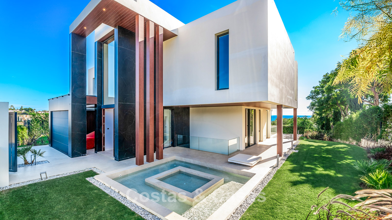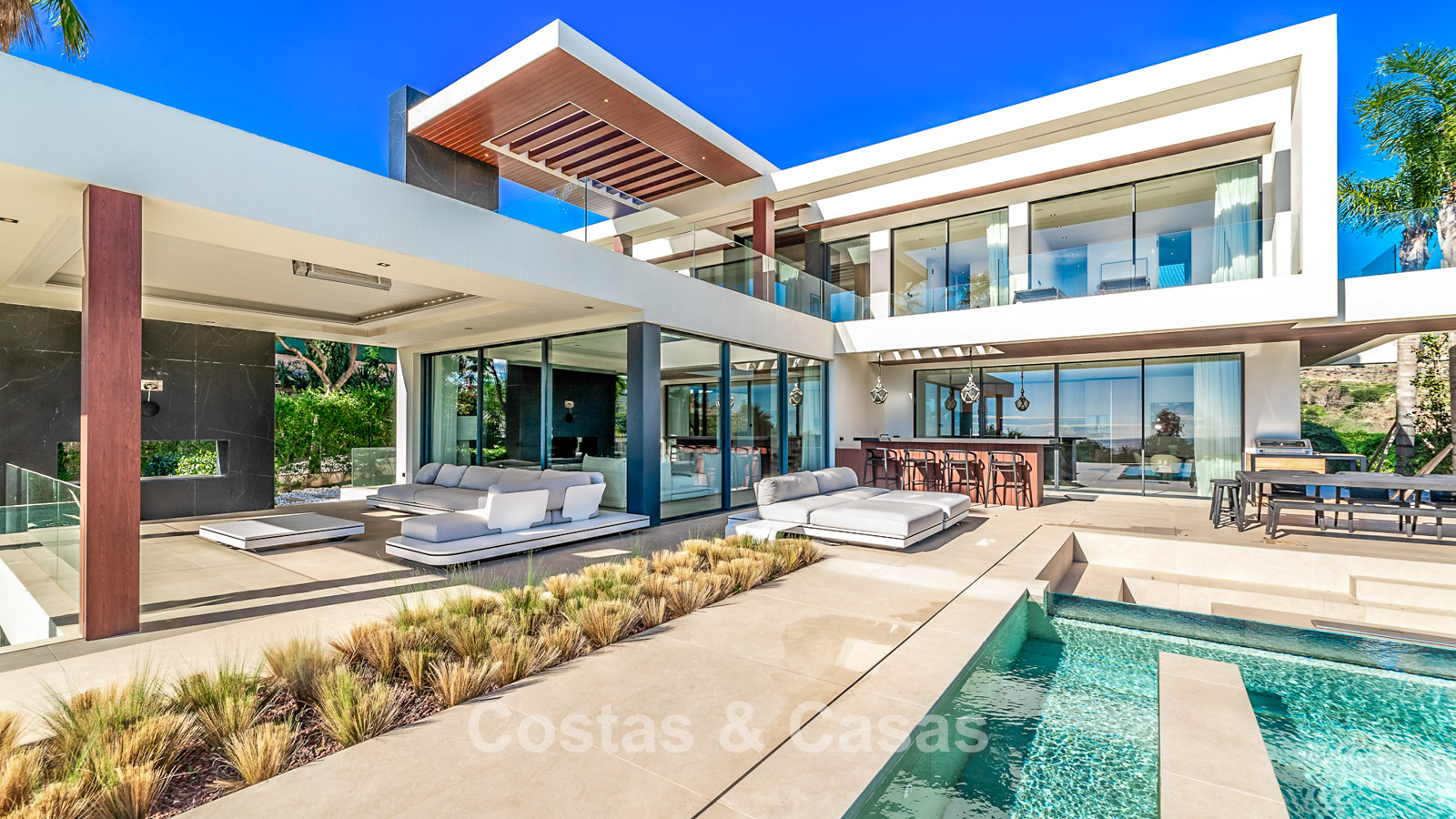 Villa de nueva construcción diseñada con una arquitectura contemporánea y moderna.