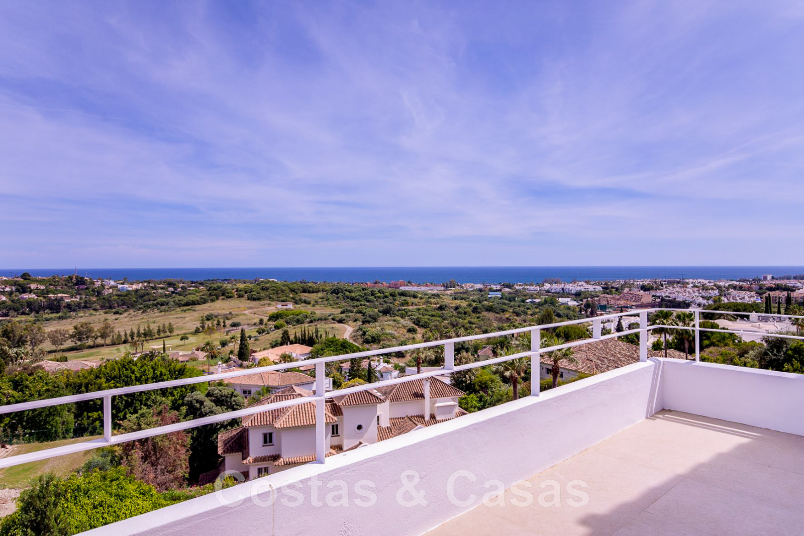 Vista panorámica del valle del golf y del mar Mediterráneo.