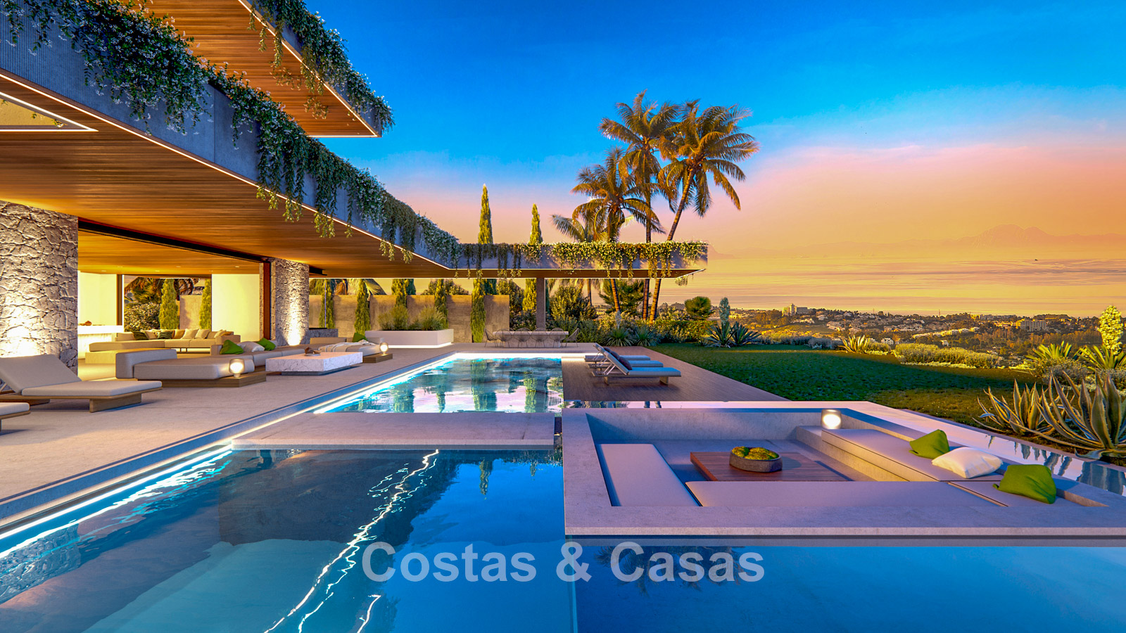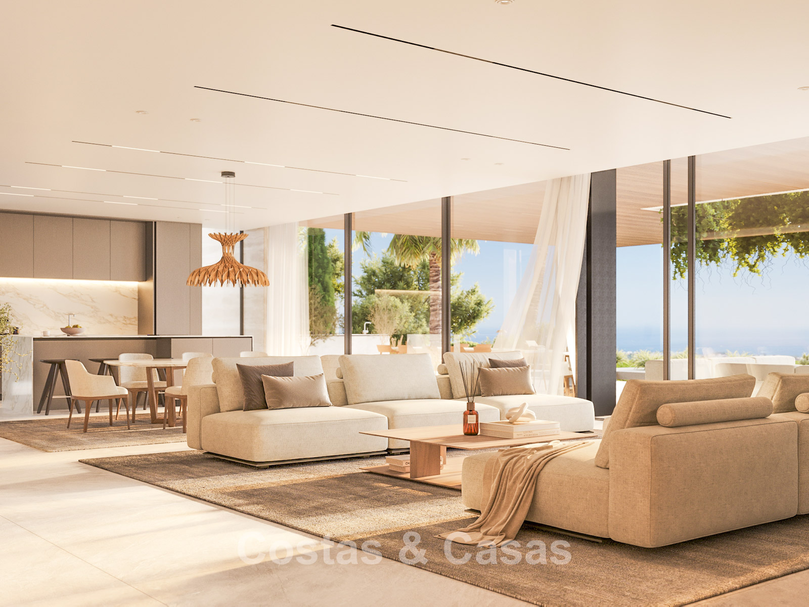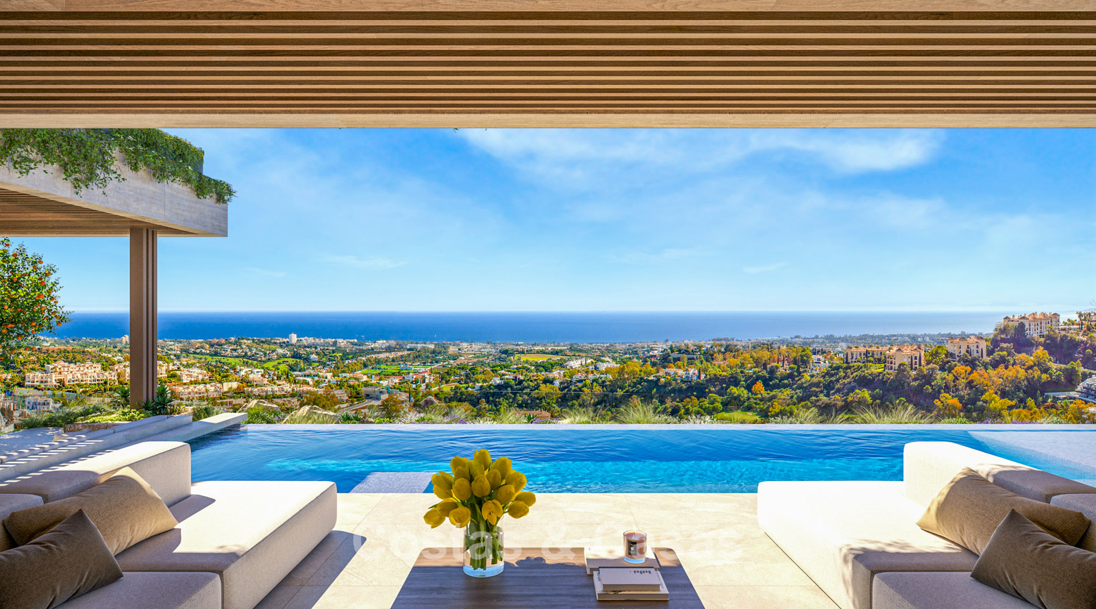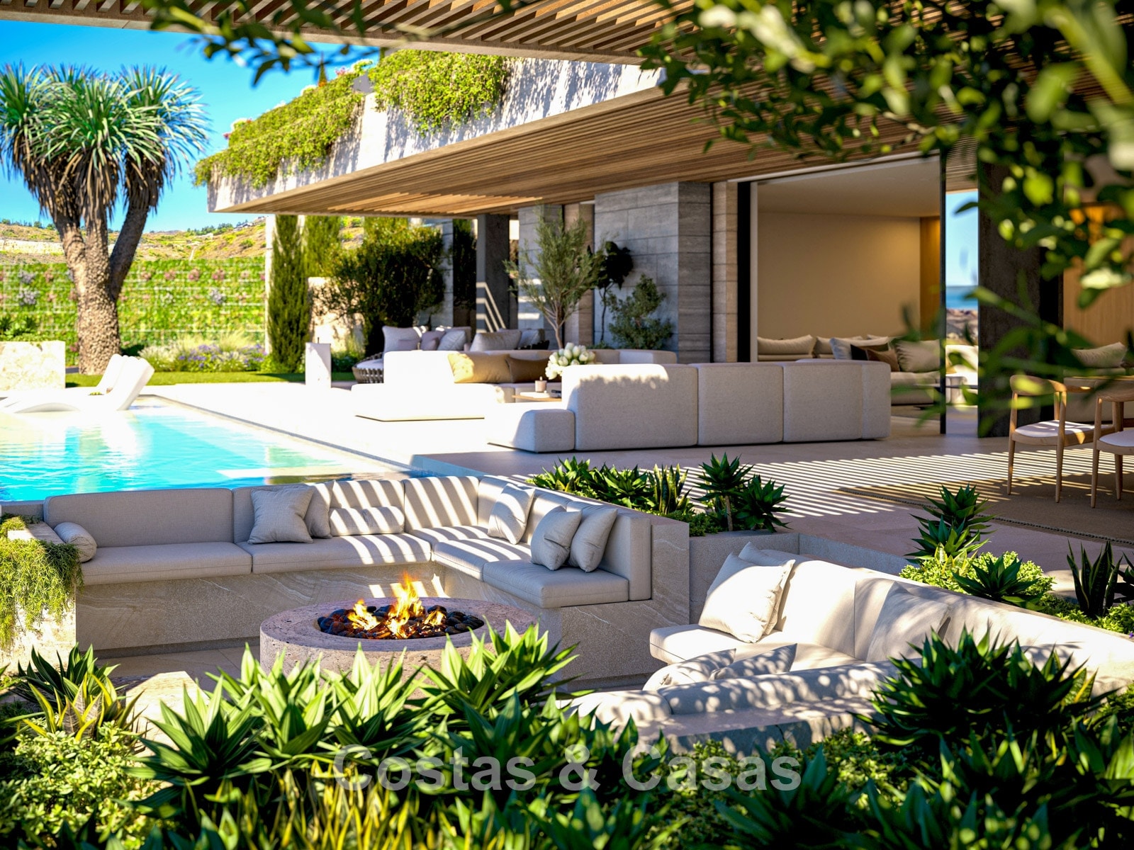 Lujosas villas de nueva construcción en venta, con vistas al mar, en una comunidad cerrada, a poca distancia de la playa, en la Milla de Oro de Marbella