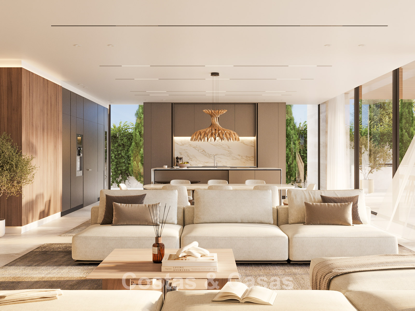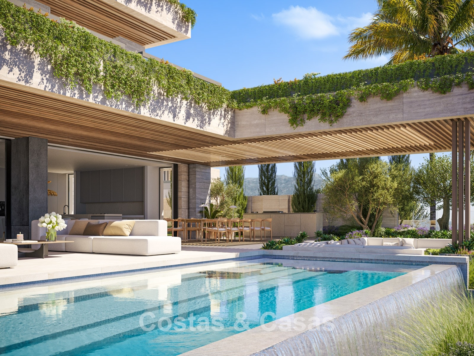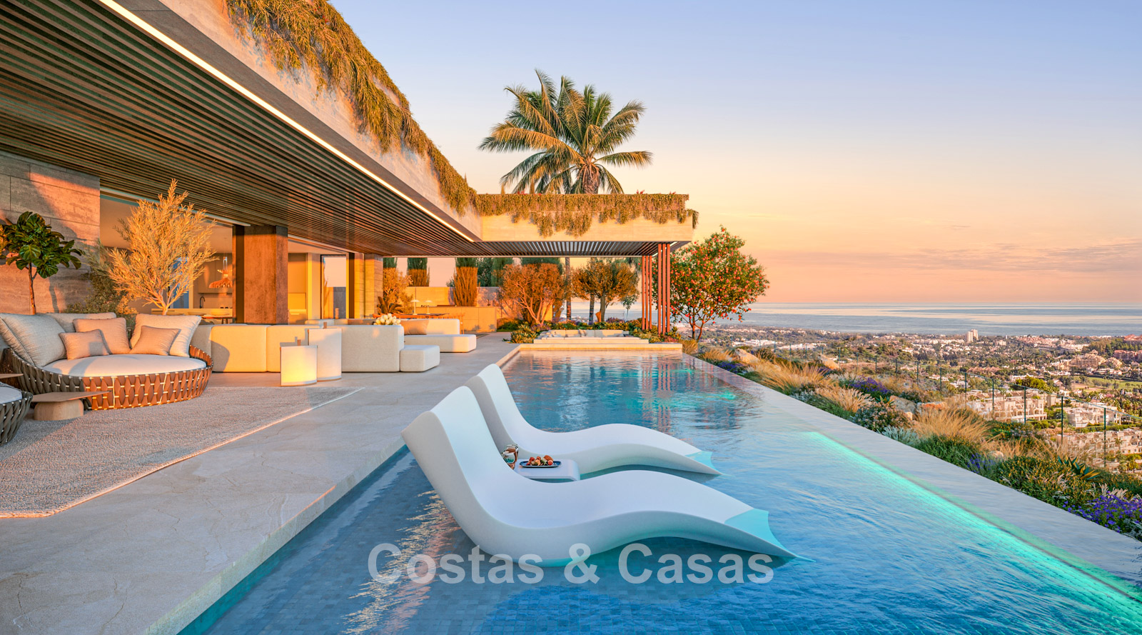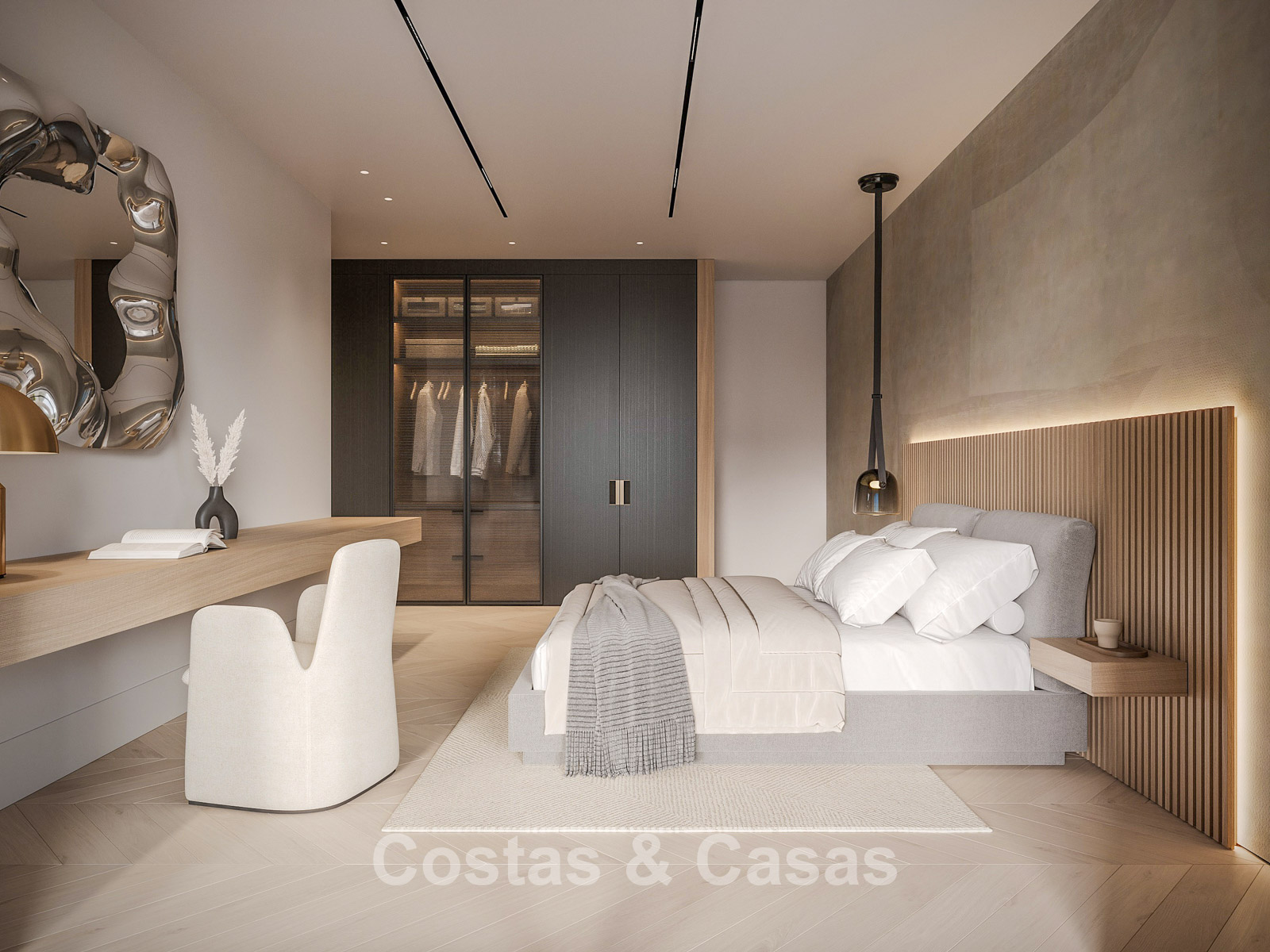 Lujosas villas de nueva construcción en venta, con vistas al mar, en una comunidad cerrada, a poca distancia de la playa, en la Milla de Oro de Marbella
