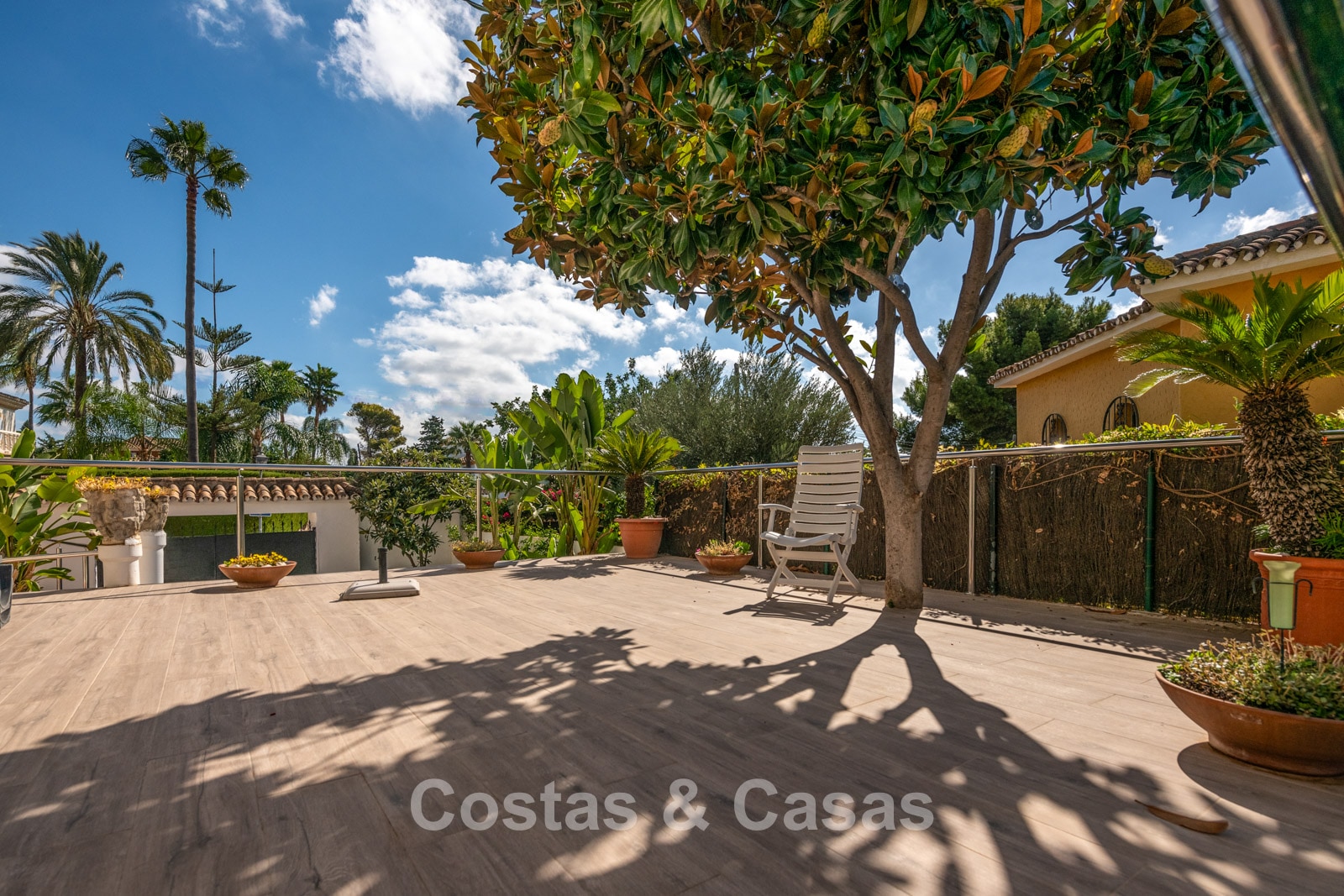 Parcela completamente vallada. Un precioso jardín con piscina privada, ideal para disfrutar del aire libre con tranquilidad. Varias terrazas rodean la casa, ideales para disfrutar del sol o la sombra a cualquier hora del día. Orientación suroeste. Vistas al cuidado jardín, parcialmente a la impresionante montaña de La Concha y, desde la planta superior, al mar Mediterráneo.