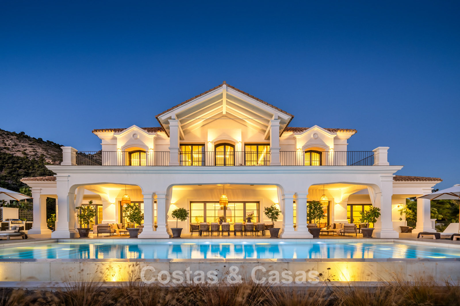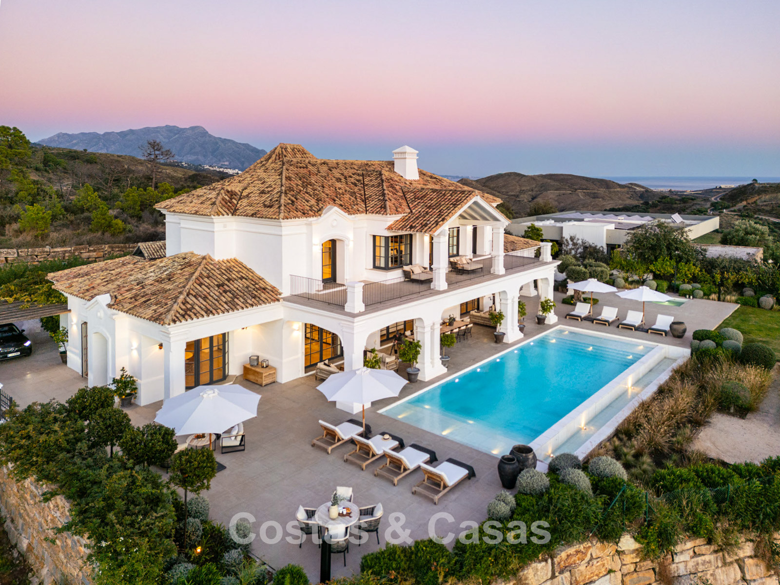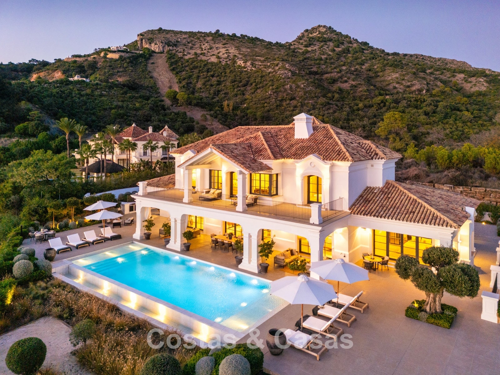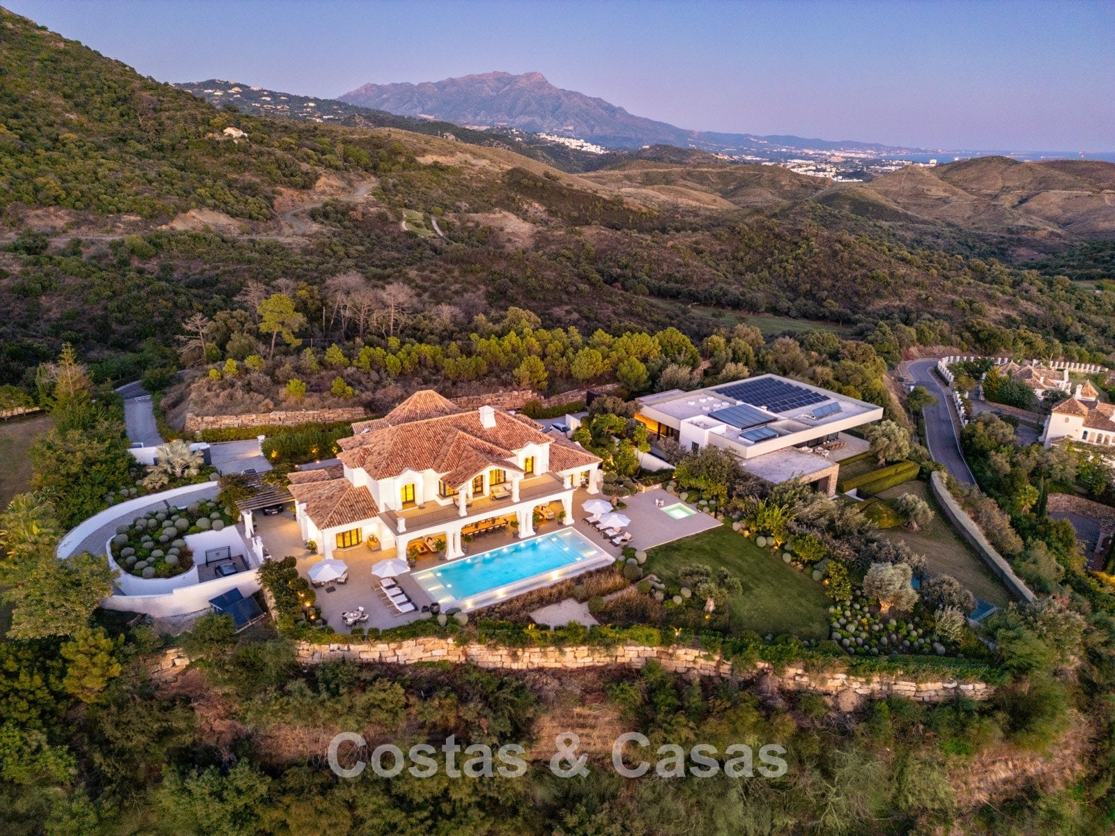 Villa independiente de estilo andaluz clásico combinada con lujo contemporáneo y simetría. Construida con materiales de alta calidad y detalles cuidadosamente pensados. Grandes ventanales que aportan abundante luz natural y una perfecta conexión entre interior y exterior, maximizando las vistas. El elegante interior desprende un diseño de lujo chic con materiales refinados y sutiles acentos. Amplio salón de TV contiguo al comedor. Cocina de concepto abierto con estética escandinava, equipada con electrodomésticos Gaggenau y una isla central. 7 dormitorios, 6 baños. En la planta inferior, zona chill-out con bar, junto a un gimnasio totalmente equipado y sauna. Cine en casa tipo loft con techo estrellado y sistema Bang & Olufsen. Lavadero equipado con electrodomésticos Miele. Suelos de baldosas de gran formato y alta calidad. Garaje cerrado para 2 coches. 2 cocheras cubiertas. Amplio espacio de aparcamiento para hasta 10 vehículos.