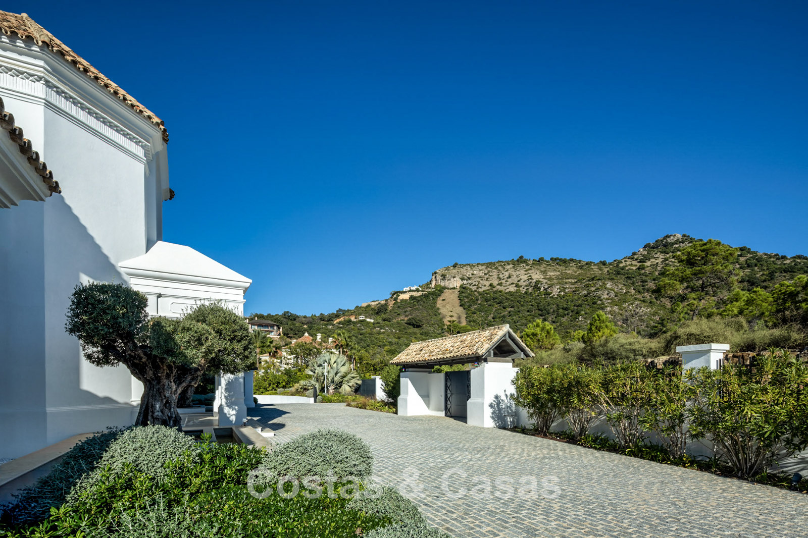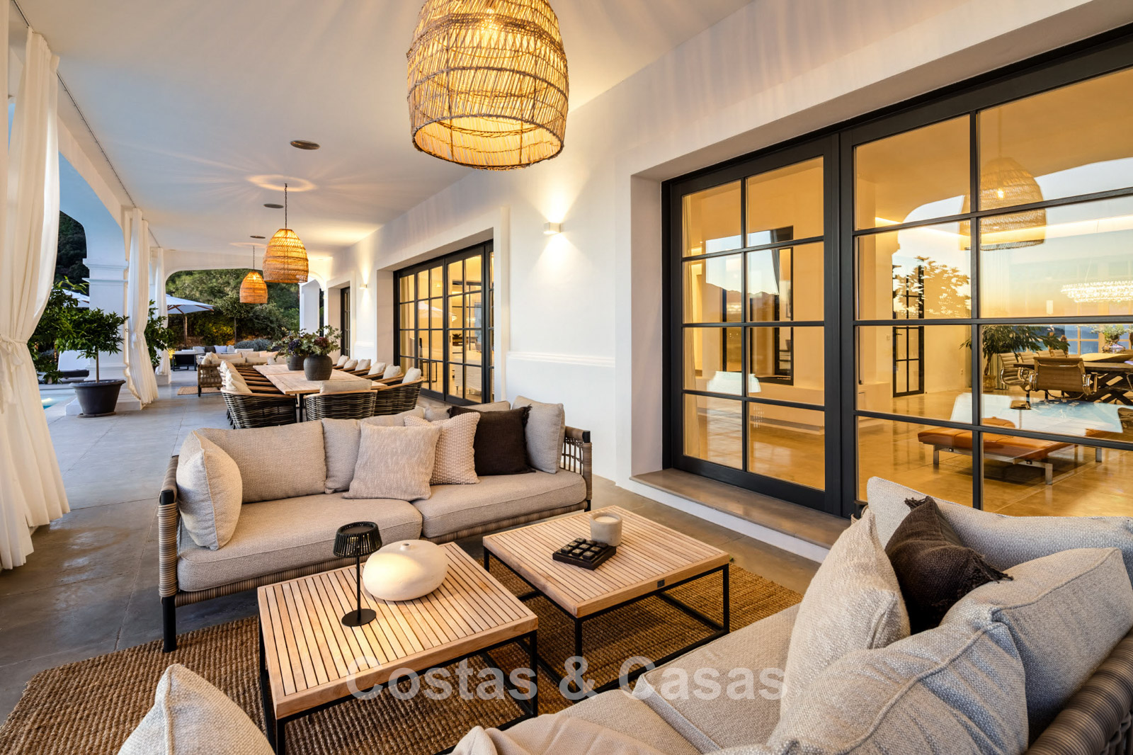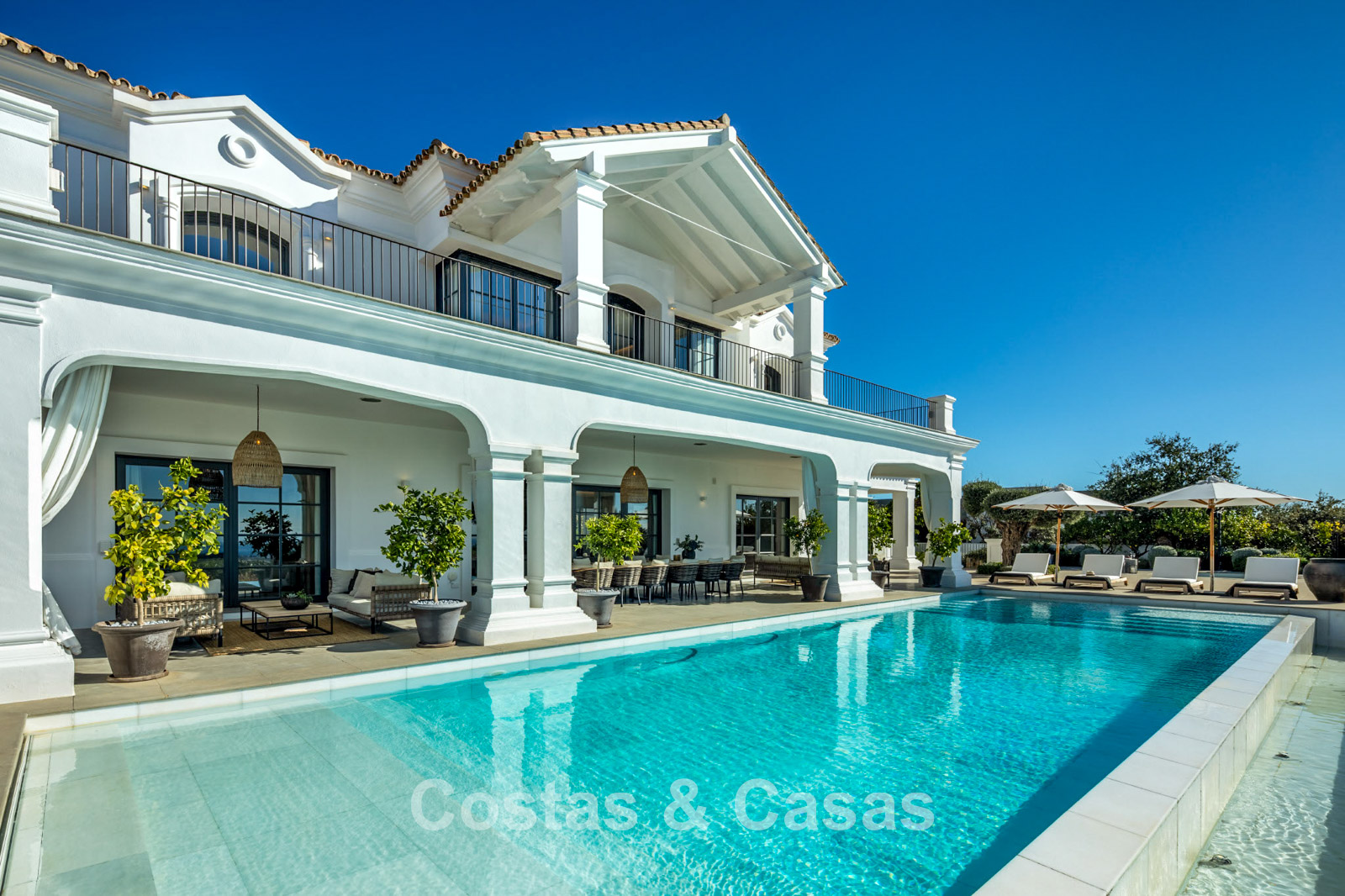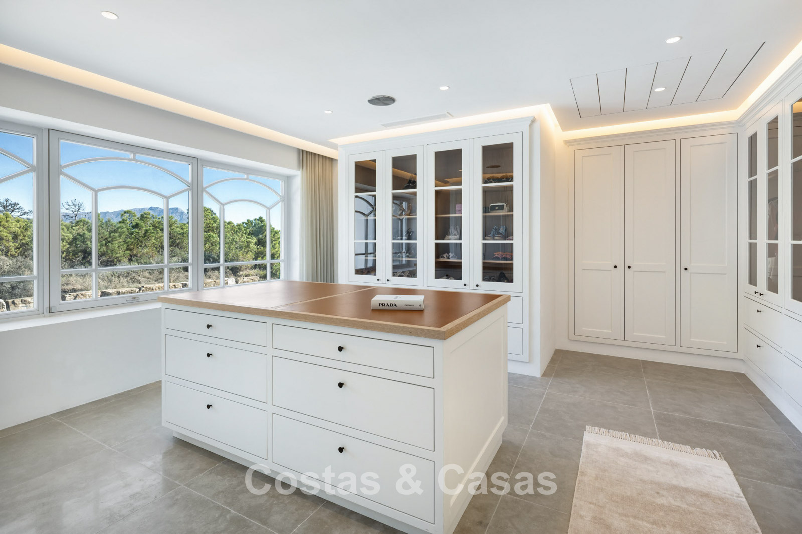 Villa independiente de estilo andaluz clásico combinada con lujo contemporáneo y simetría. Construida con materiales de alta calidad y detalles cuidadosamente pensados. Grandes ventanales que aportan abundante luz natural y una perfecta conexión entre interior y exterior, maximizando las vistas. El elegante interior desprende un diseño de lujo chic con materiales refinados y sutiles acentos. Amplio salón de TV contiguo al comedor. Cocina de concepto abierto con estética escandinava, equipada con electrodomésticos Gaggenau y una isla central. 7 dormitorios, 6 baños. En la planta inferior, zona chill-out con bar, junto a un gimnasio totalmente equipado y sauna. Cine en casa tipo loft con techo estrellado y sistema Bang & Olufsen. Lavadero equipado con electrodomésticos Miele. Suelos de baldosas de gran formato y alta calidad. Garaje cerrado para 2 coches. 2 cocheras cubiertas. Amplio espacio de aparcamiento para hasta 10 vehículos.