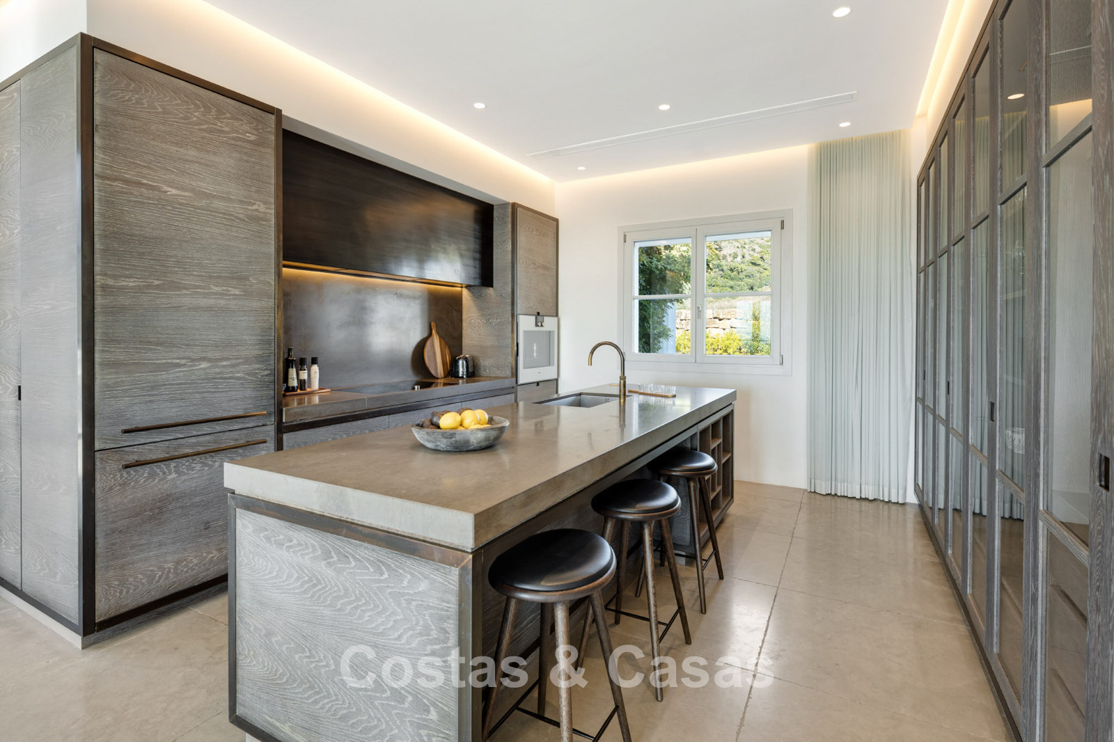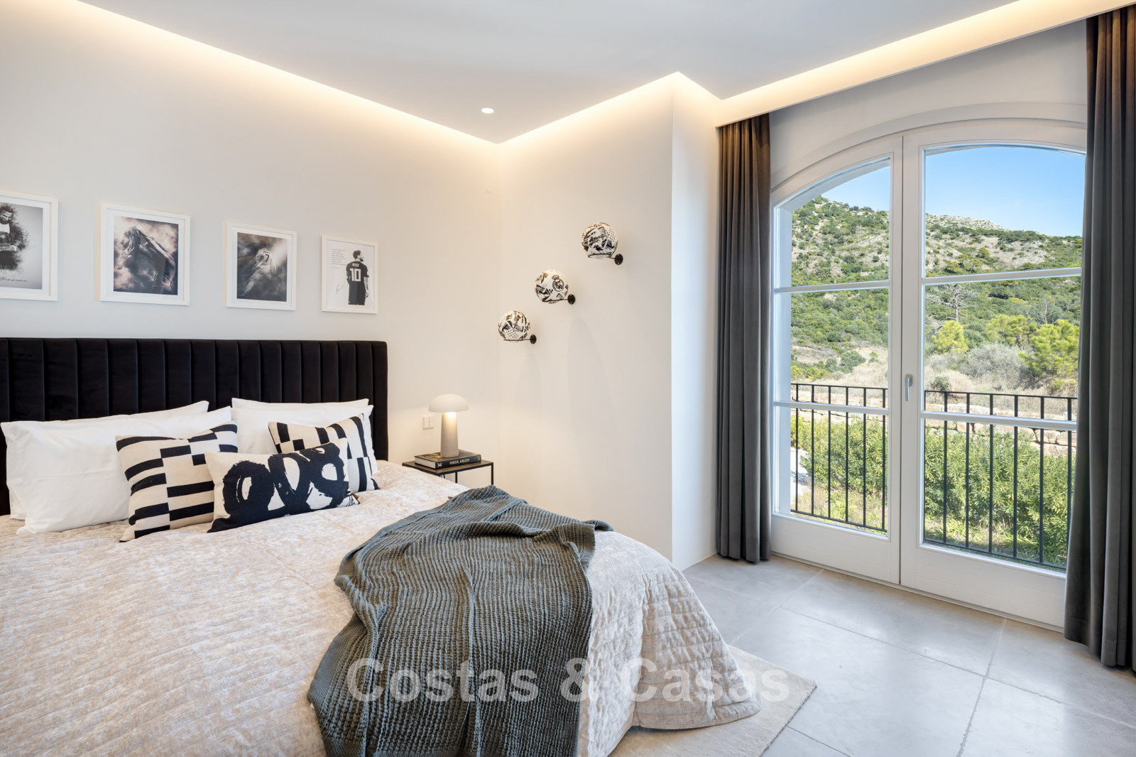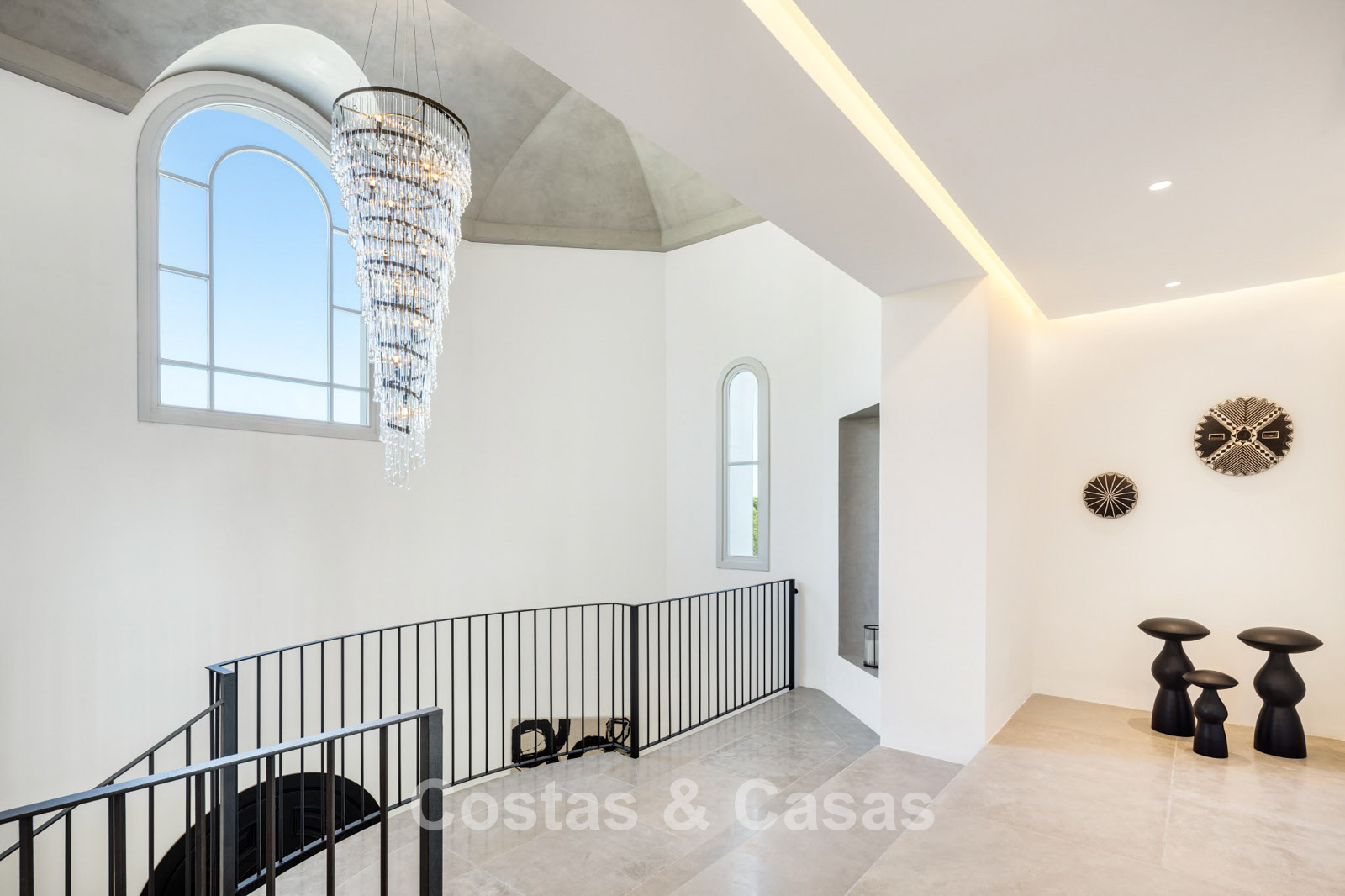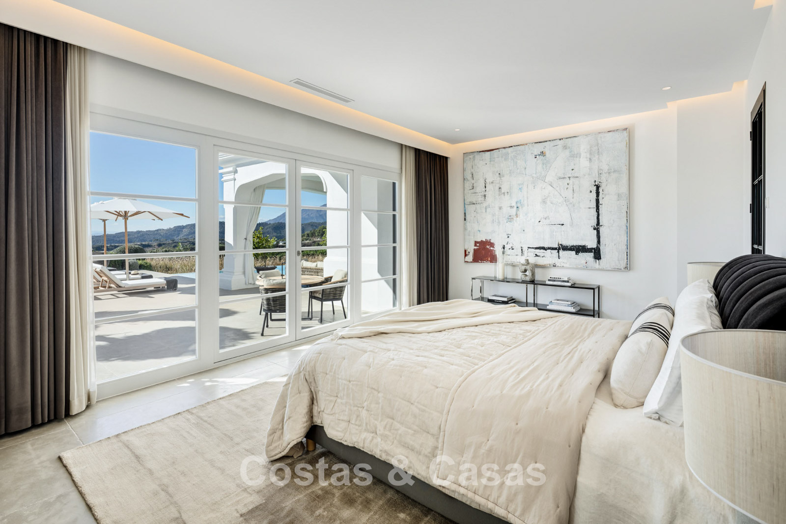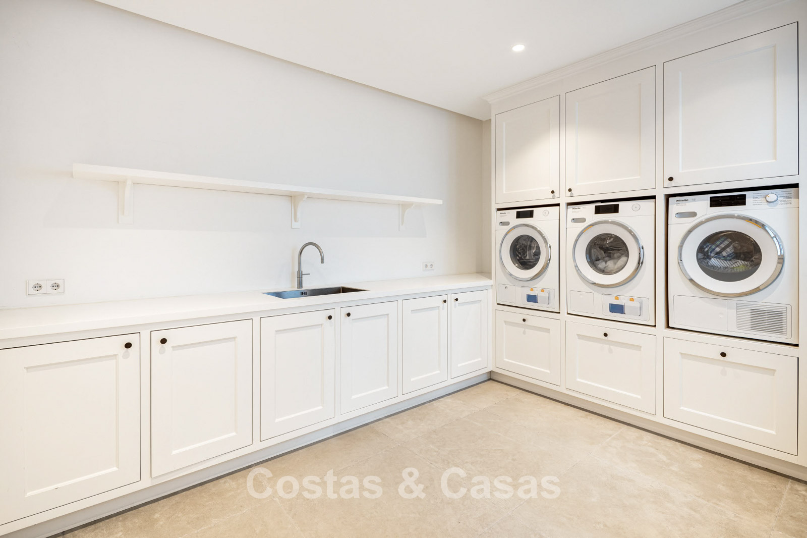 Villa independiente de estilo andaluz clásico combinada con lujo contemporáneo y simetría. Construida con materiales de alta calidad y detalles cuidadosamente pensados. Grandes ventanales que aportan abundante luz natural y una perfecta conexión entre interior y exterior, maximizando las vistas. El elegante interior desprende un diseño de lujo chic con materiales refinados y sutiles acentos. Amplio salón de TV contiguo al comedor. Cocina de concepto abierto con estética escandinava, equipada con electrodomésticos Gaggenau y una isla central. 7 dormitorios, 6 baños. En la planta inferior, zona chill-out con bar, junto a un gimnasio totalmente equipado y sauna. Cine en casa tipo loft con techo estrellado y sistema Bang & Olufsen. Lavadero equipado con electrodomésticos Miele. Suelos de baldosas de gran formato y alta calidad. Garaje cerrado para 2 coches. 2 cocheras cubiertas. Amplio espacio de aparcamiento para hasta 10 vehículos.