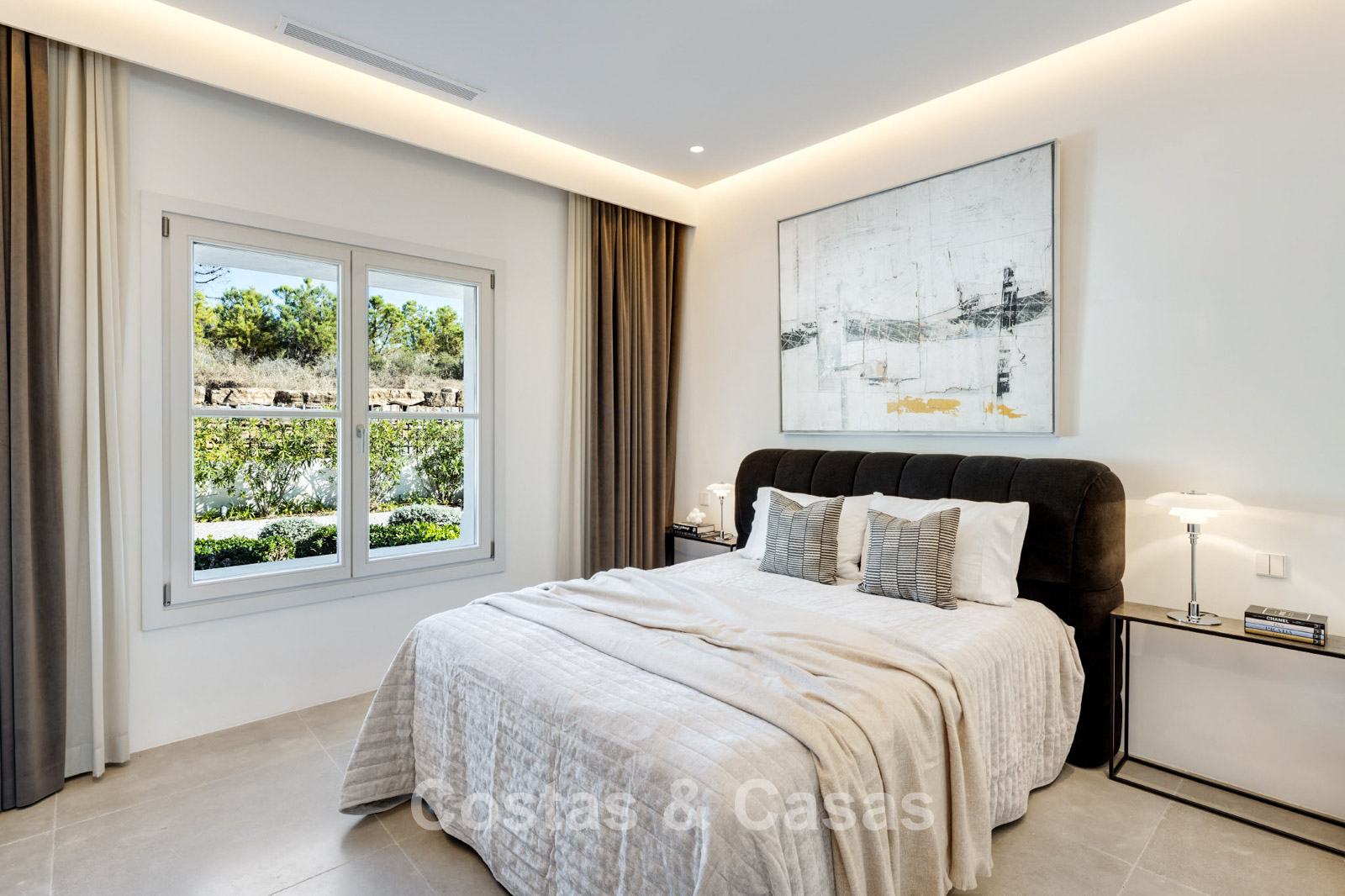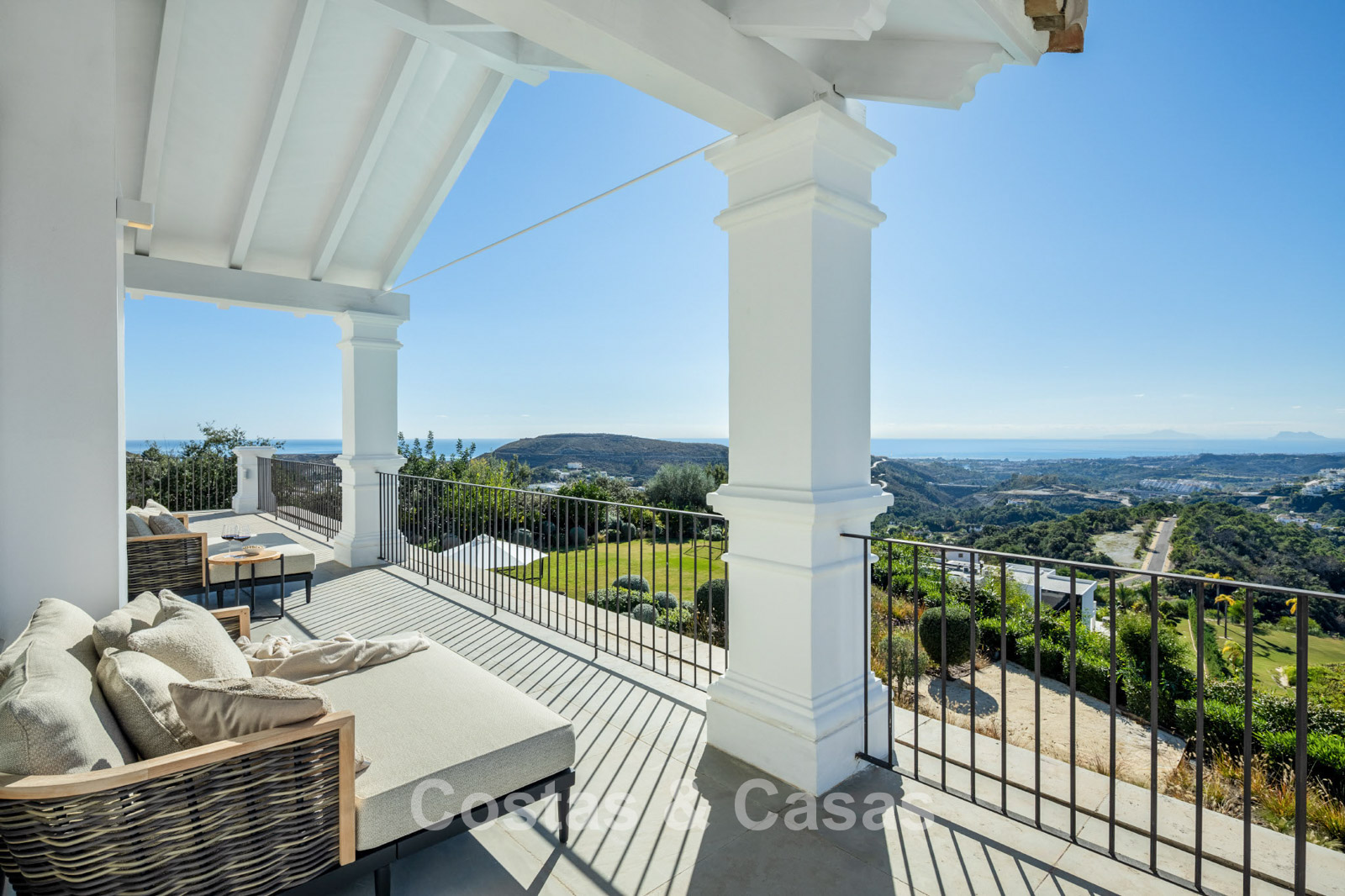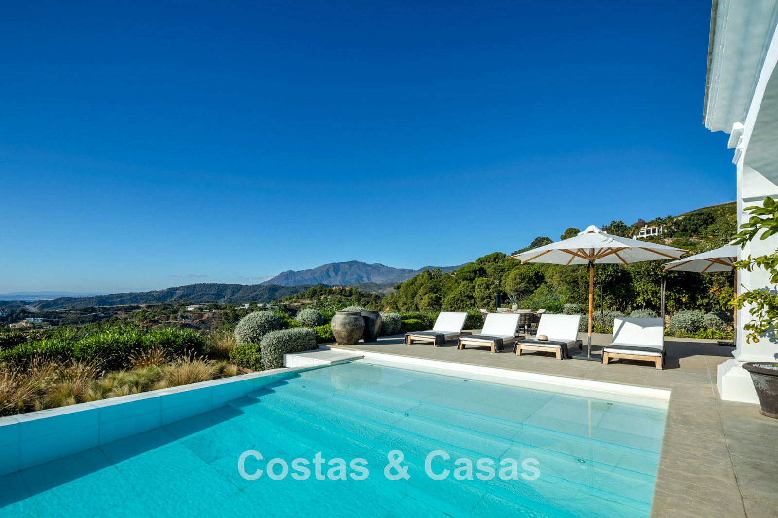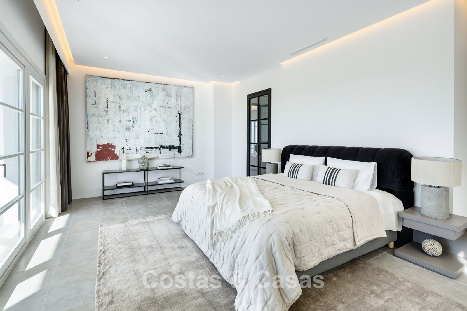 Villa independiente de estilo andaluz clásico combinada con lujo contemporáneo y simetría. Construida con materiales de alta calidad y detalles cuidadosamente pensados. Grandes ventanales que aportan abundante luz natural y una perfecta conexión entre interior y exterior, maximizando las vistas. El elegante interior desprende un diseño de lujo chic con materiales refinados y sutiles acentos. Amplio salón de TV contiguo al comedor. Cocina de concepto abierto con estética escandinava, equipada con electrodomésticos Gaggenau y una isla central. 7 dormitorios, 6 baños. En la planta inferior, zona chill-out con bar, junto a un gimnasio totalmente equipado y sauna. Cine en casa tipo loft con techo estrellado y sistema Bang & Olufsen. Lavadero equipado con electrodomésticos Miele. Suelos de baldosas de gran formato y alta calidad. Garaje cerrado para 2 coches. 2 cocheras cubiertas. Amplio espacio de aparcamiento para hasta 10 vehículos.