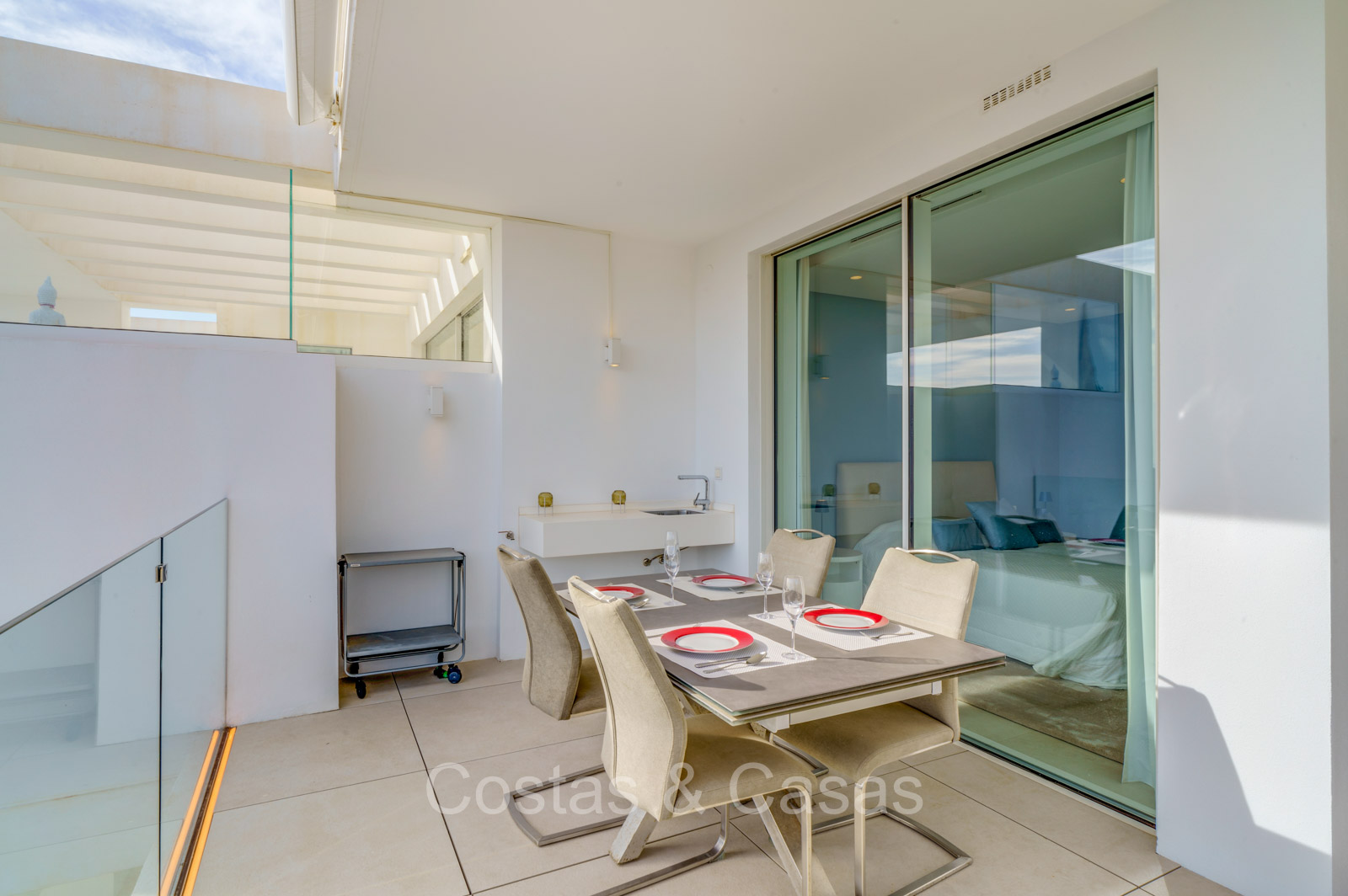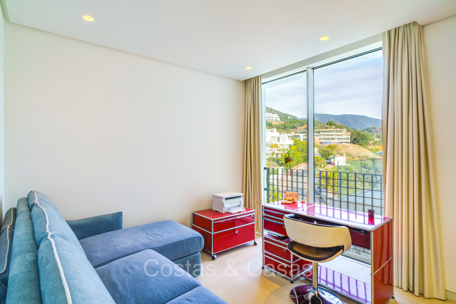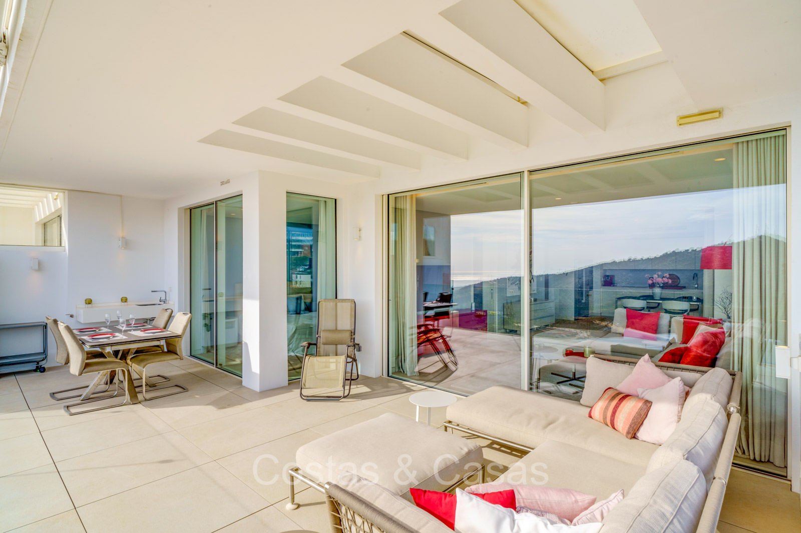 Otras características: Climatizador Airzone en todas las habitaciones. Calefacción por suelo radiante. Sistema de iluminación Lutrón. Sistema de sonido integrado Sonos. Cortinas opacas automáticas. Armarios empotrados. Barandillas de cristal. Toldos en la terraza.