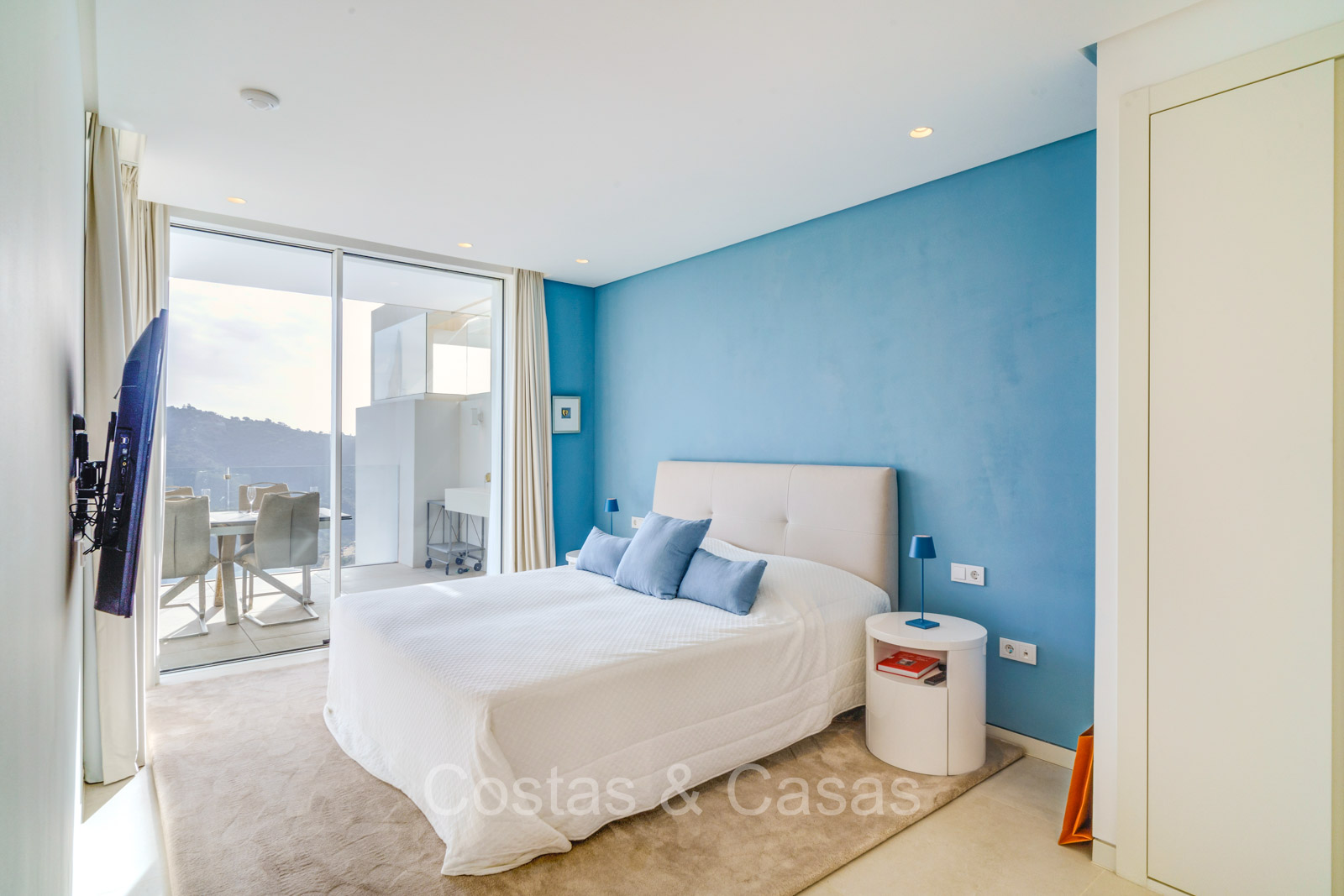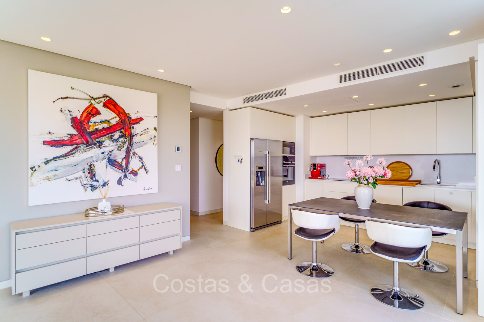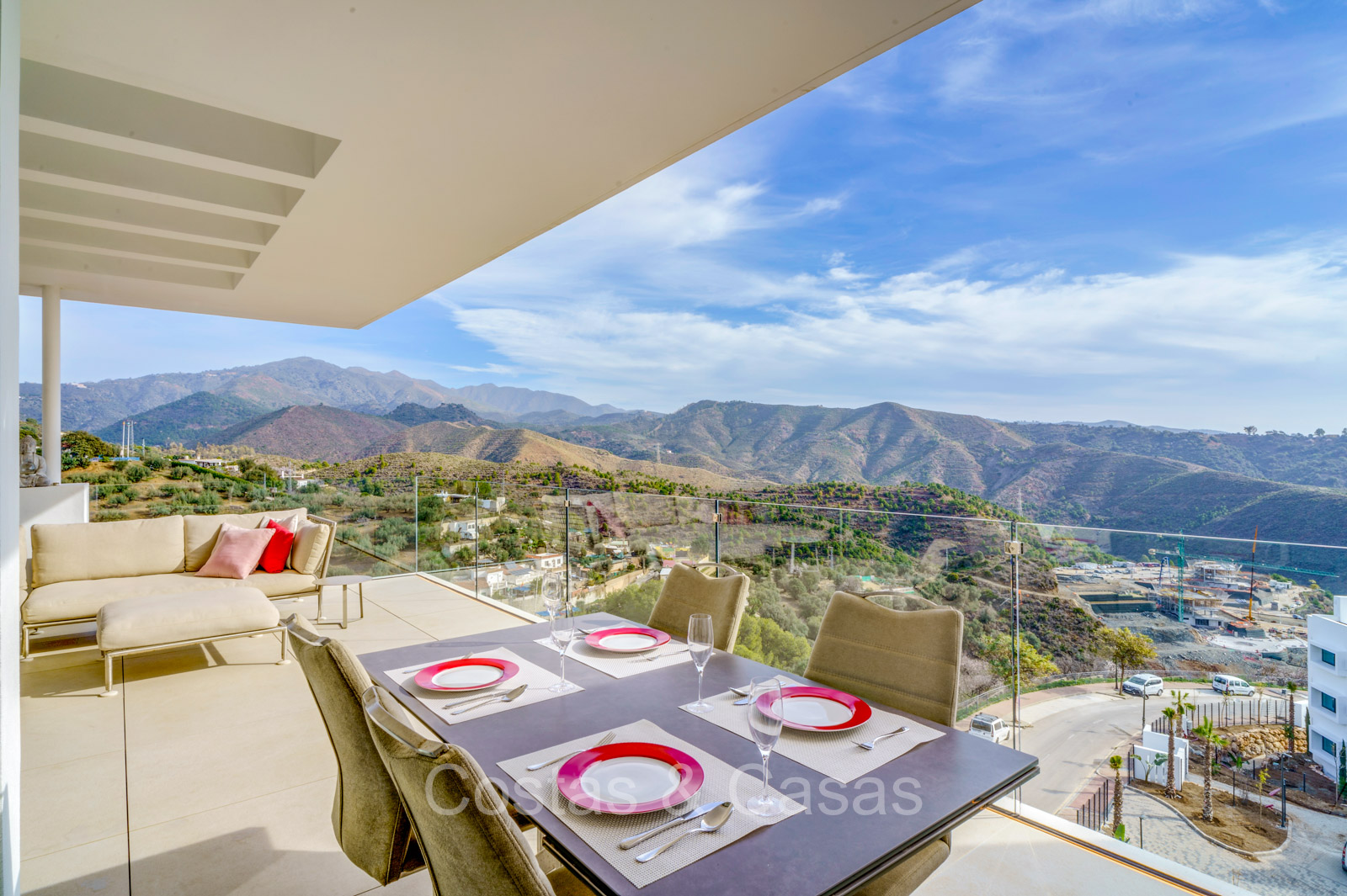 Amplio apartamento de estilo moderno y contemporáneo. Utilizando materiales de calidad. Ubicado al sureste. Impresionantes vistas al mar Mediterráneo y al paisaje de montaña. Las ventanas corredizas de suelo a techo con marcos empotrados brindan un flujo perfecto entre los espacios interiores y exteriores y también crean un interior aireado y muy luminoso. Espacio habitable de planta abierta. Cocina totalmente equipada con electrodomésticos Siemens de alta calidad. Lavadero independiente con lavadora y secadora. 3 dormitorios, 2 baños y aseo independiente. Suelos de baldosas color crema. 2 trasteros de 9m² cada uno. Garaje interior para 2 coches.