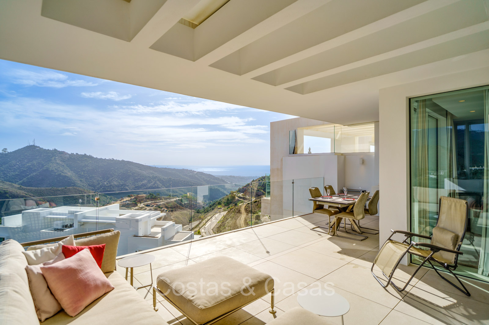 Vistas al paisaje de montaña y al mar.