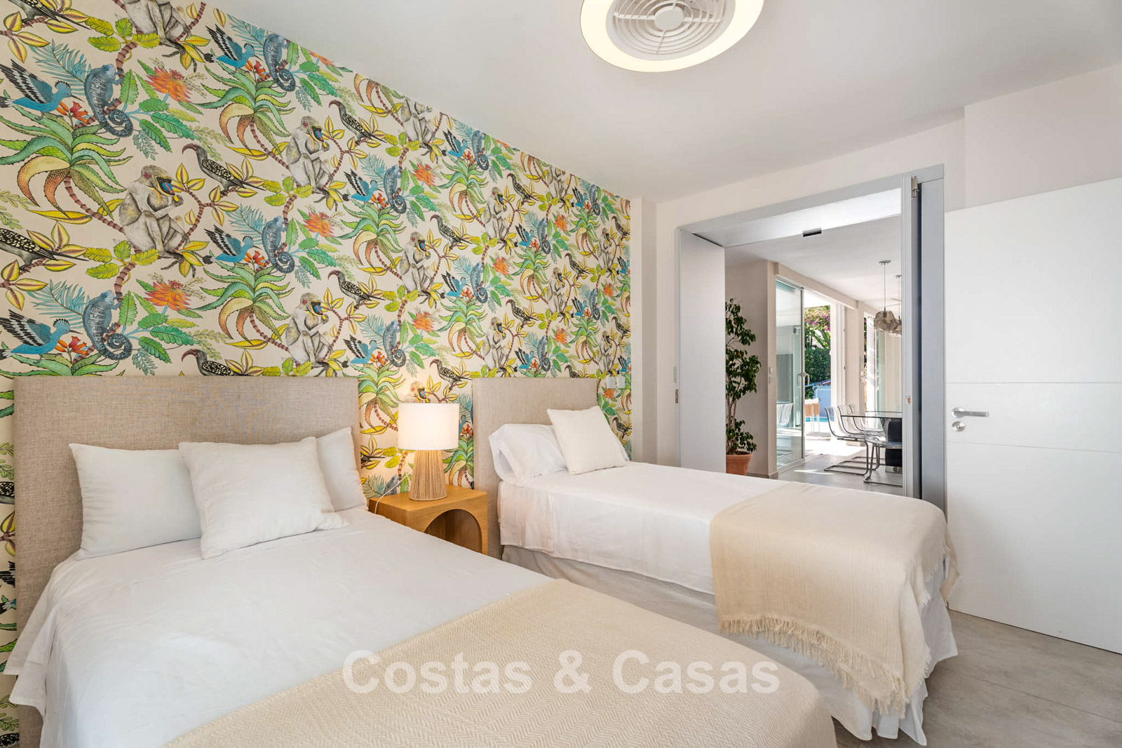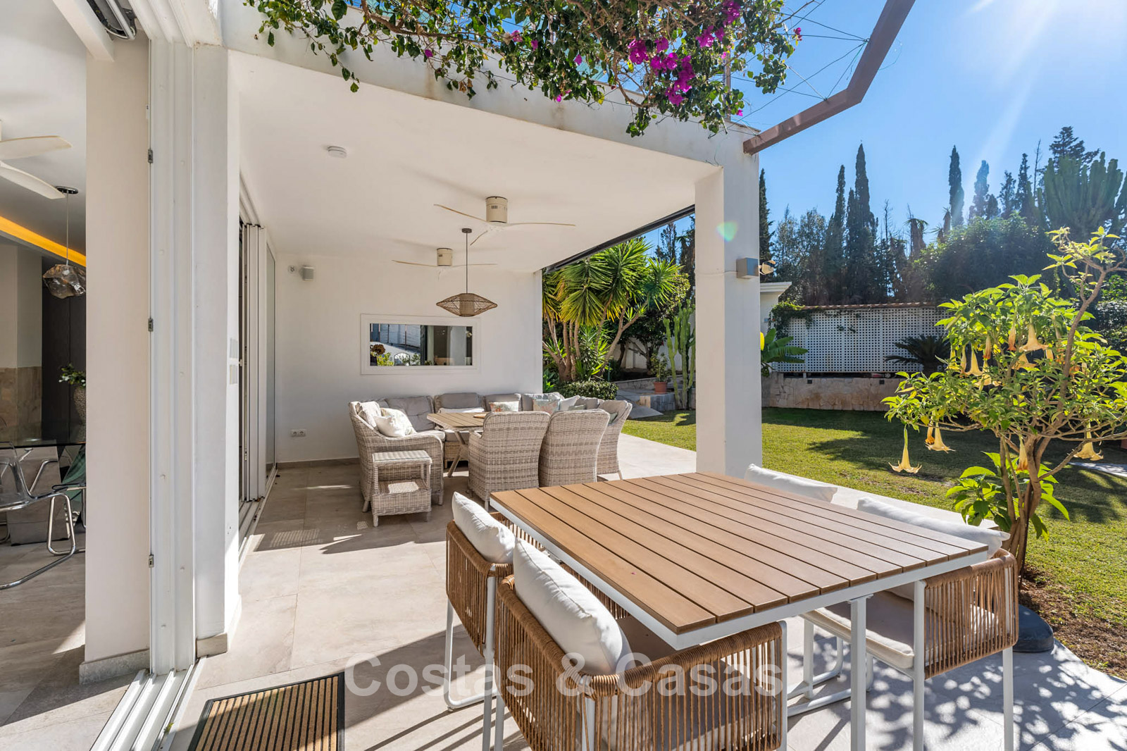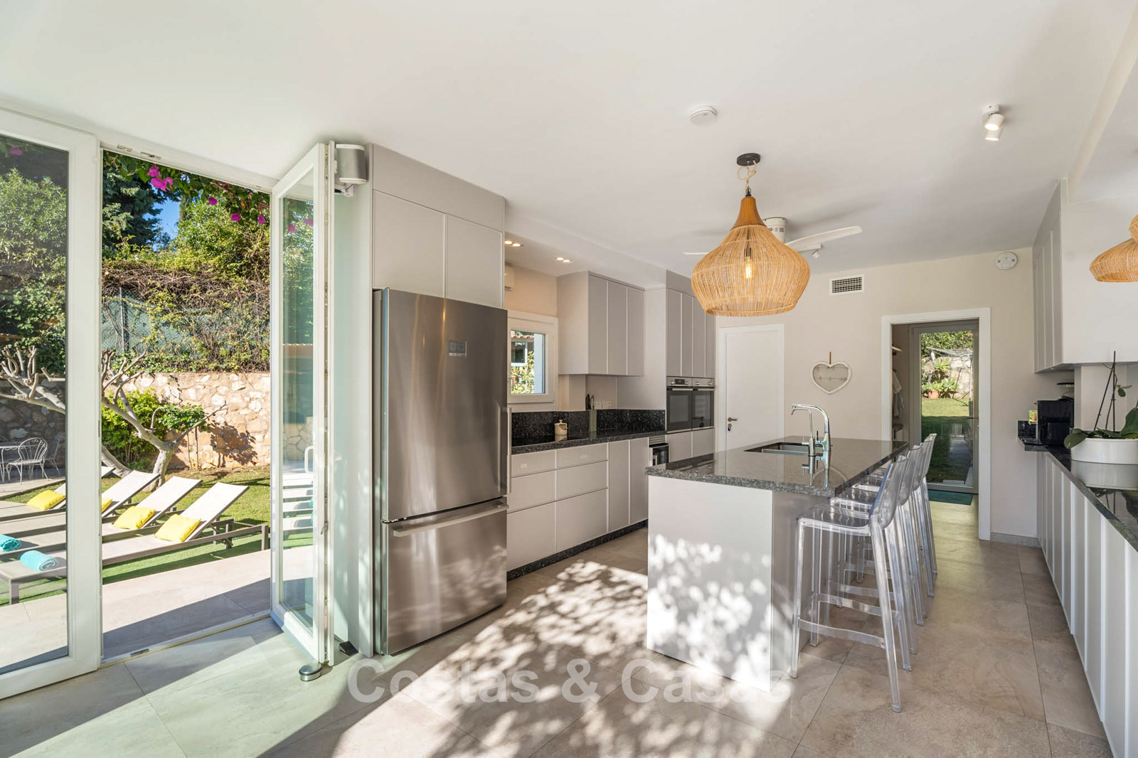 Villa mediterránea con el encanto clásico andaluz. Construida con materiales de alta calidad. Las grandes ventanas correderas del salón potencian la sensación de interior-exterior y proporcionan una luz natural excepcional. La zona de estar cuenta con un diseño de planta abierta. Las zonas de salón y comedor están perfectamente conectadas con la cocina moderna. Cocina abierta funcional equipada con electrodomésticos de alta calidad y una isla con zona de asiento. Lavadero independiente. La vivienda cuenta con cinco dormitorios y cuatro baños, complementados con una sala multifuncional adicional actualmente utilizada como oficina, que se puede convertir fácilmente en un sexto dormitorio si se desea. La suite principal dispone de vestidor, baño en suite y acceso directo a la terraza. En la planta inferior hay un espacio cerrado de 45 m², adecuado para almacenamiento o futura reforma. Cochera para varios vehículos.