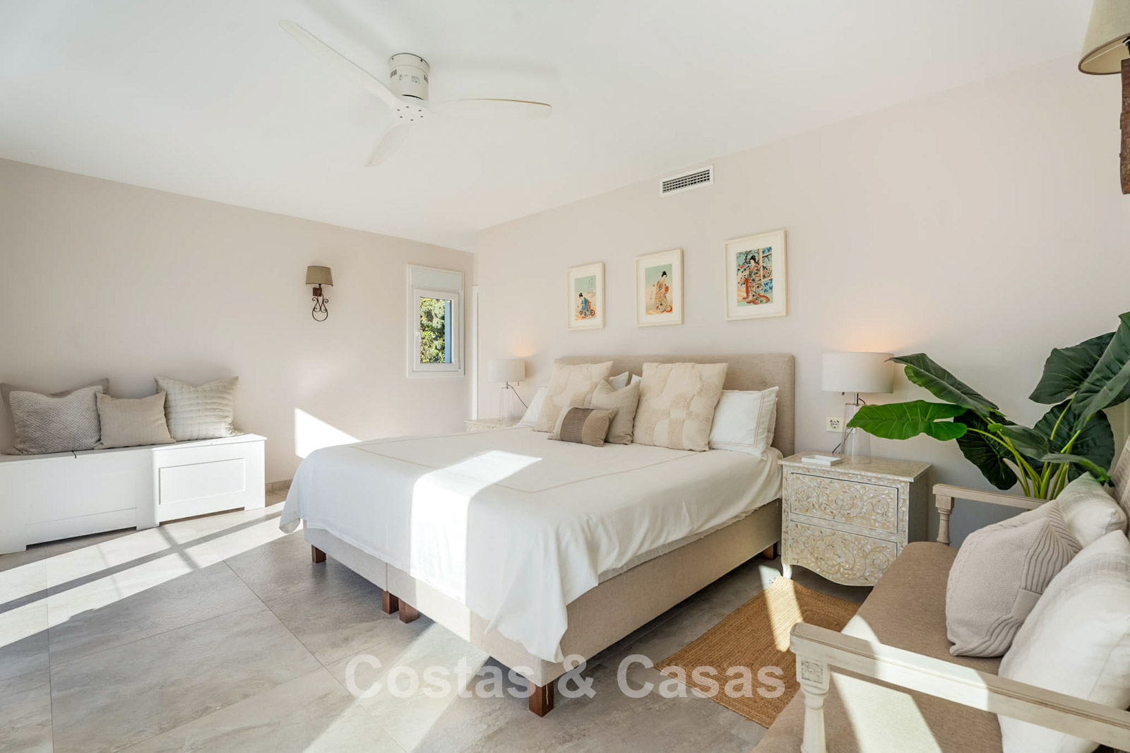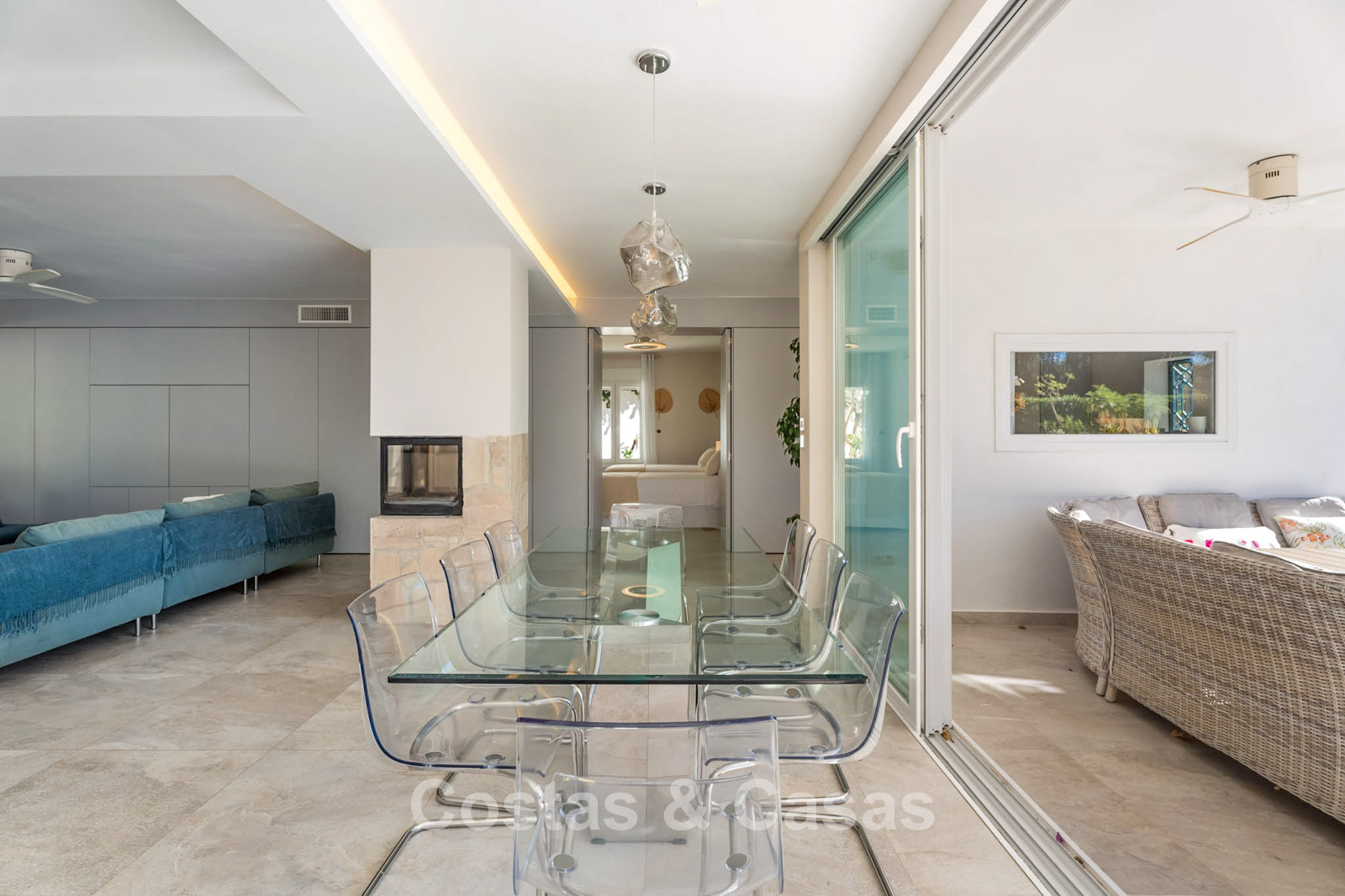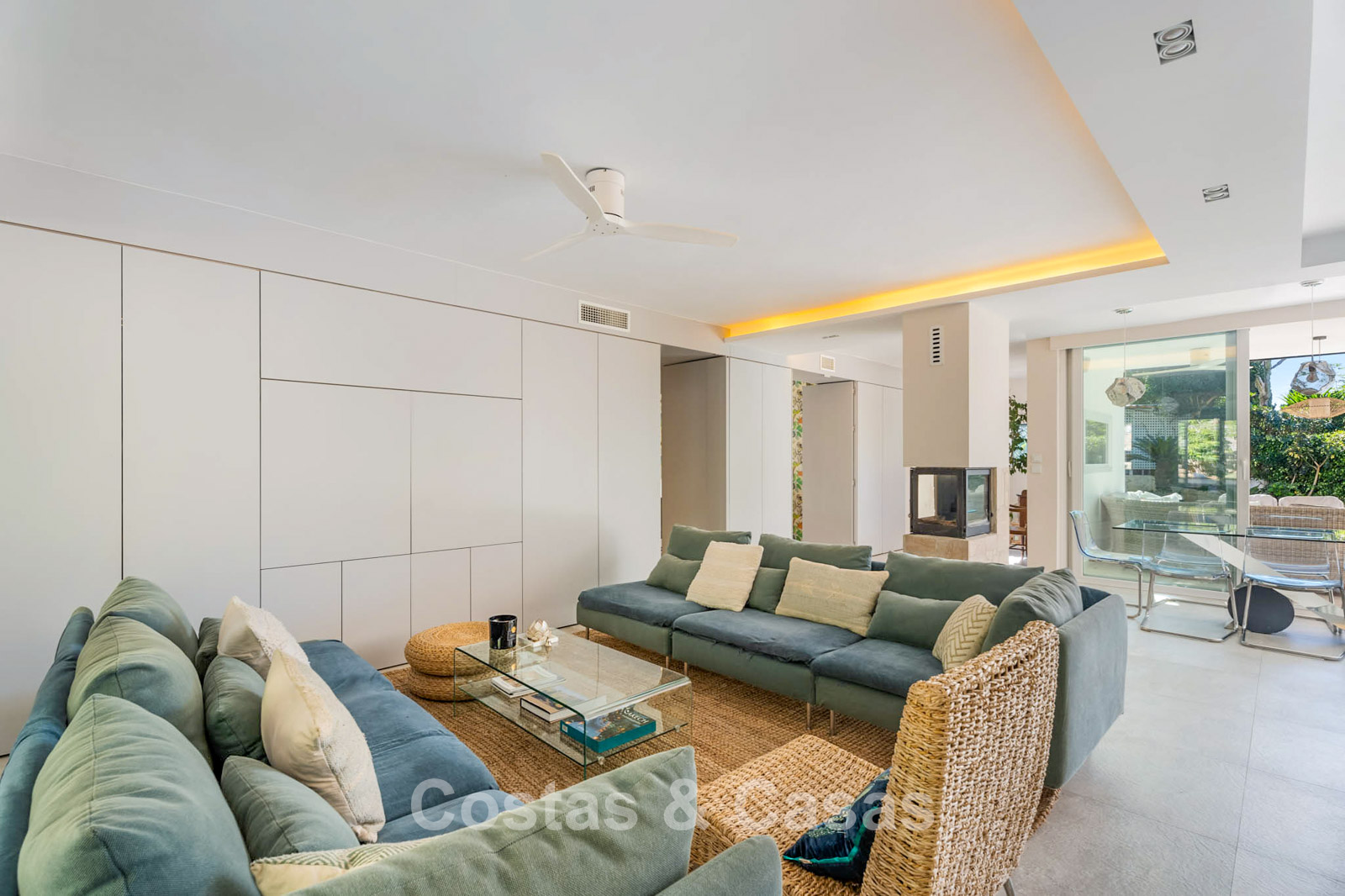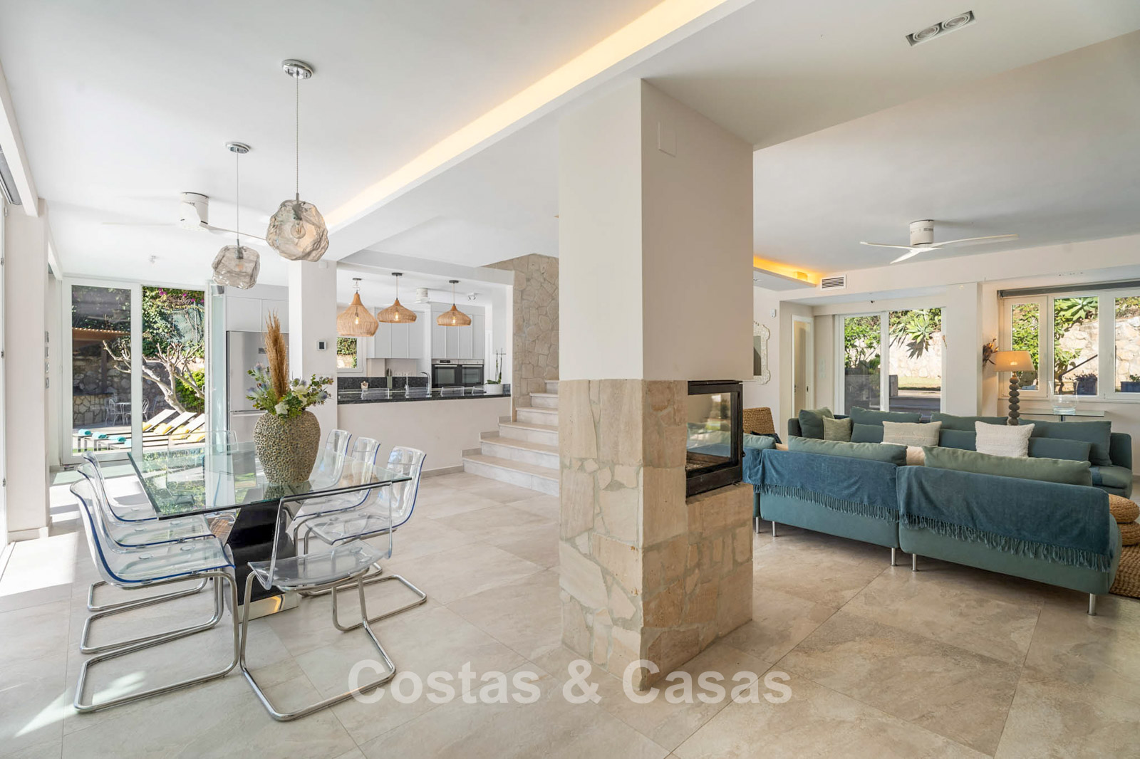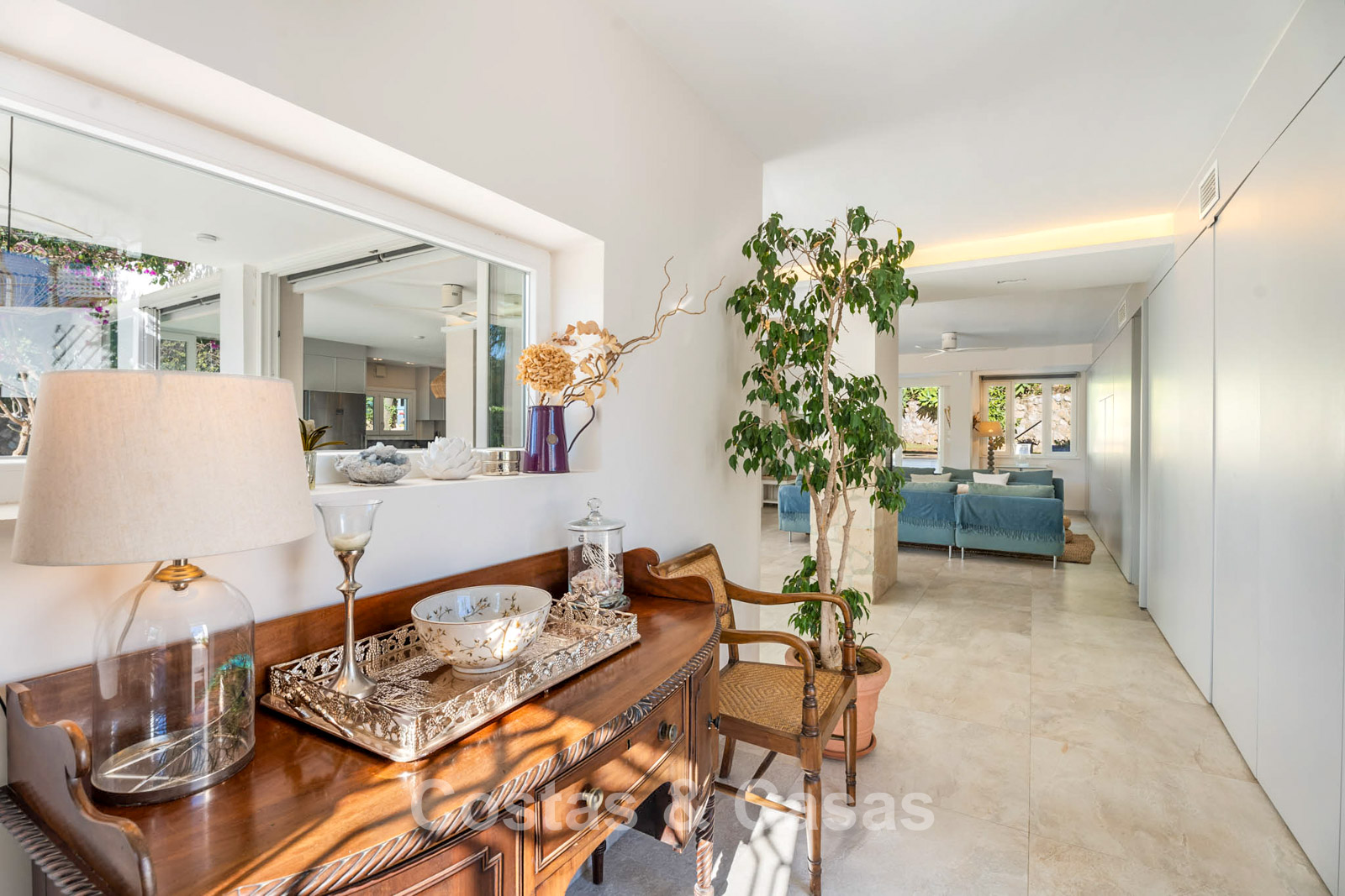 Villa mediterránea reformada con interior contemporáneo.
