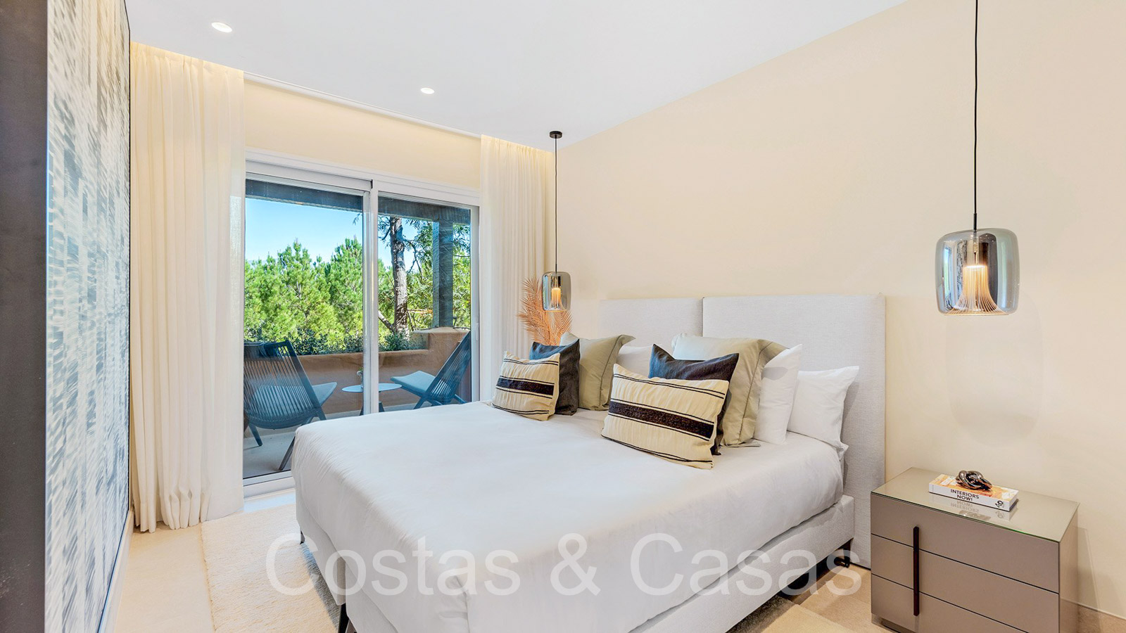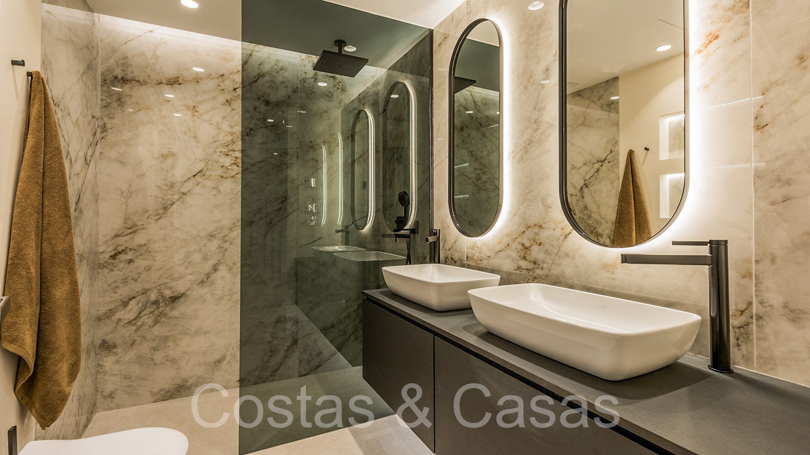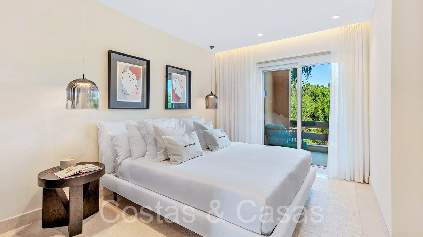 Sofisticado apartamento reformado. Utilizando materiales y acabados de alto nivel. Orientado al sur. Hermosas vistas a los jardines tropicales, piscinas y al mar Mediterráneo. Sala de estar diáfana con sala de TV y comedor integrado. Cocina/comedor abierta con isla de cocina y electrodomésticos Miele de alta calidad. Las altas ventanas correderas con perfiles empotrados proporcionan habitaciones luminosas y una transición perfecta hacia el exterior. Una amplia terraza cubierta ofrece espacio para un comedor al aire libre y cuenta con un lounge. Se puede acceder a la terraza desde el salón y desde la suite principal. Un total de 4 dormitorios y 3 baños. El dormitorio principal tiene baño en suite y su propia chimenea. Suelos de gres de calidad. Trastero y plaza de aparcamiento subterráneo incluidos.
