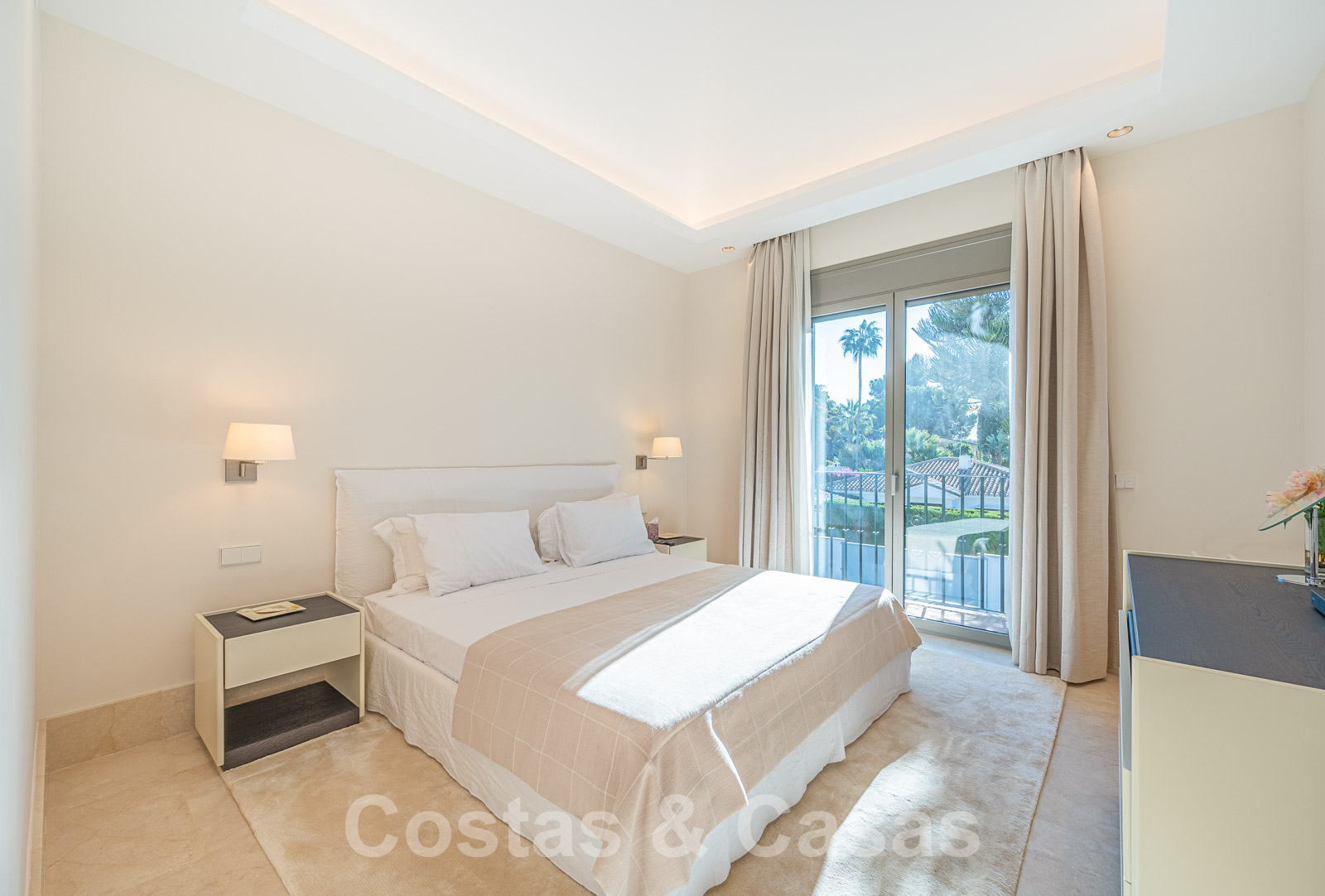 Villa independiente de estilo mediterráneo moderno. Utilización de materiales de alta calidad. Interior contemporáneo y luminoso. Al entrar, se accede al hall de entrada con una elegante escalera ornamental que conduce a la planta superior. Un amplio salón equipado con una chimenea tradicional se abre a un patio exterior que, además de luz natural adicional, proporciona ventilación extra. Cocina totalmente equipada con isla central, nevera para vinos y zona de desayuno. Comedor independiente. 6 dormitorios, 6 baños y un aseo independiente. La suite principal tiene un gran vestidor y acceso a un balcón privado con vistas al jardín. Suelos de mármol color crema. Trastero, lavadero. Garaje cubierto para 3 coches.