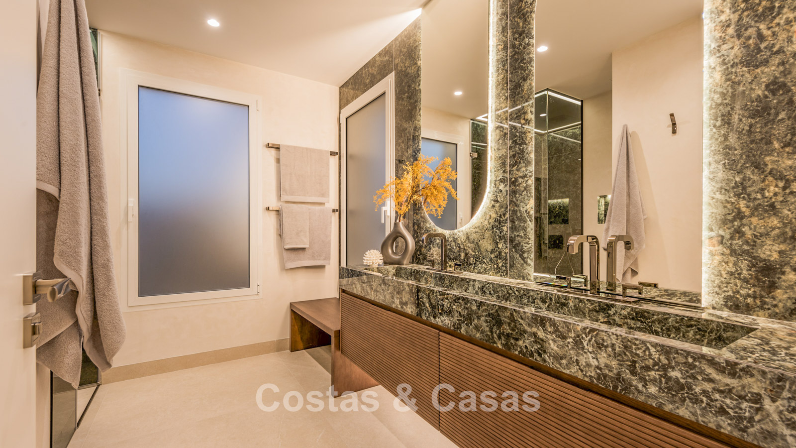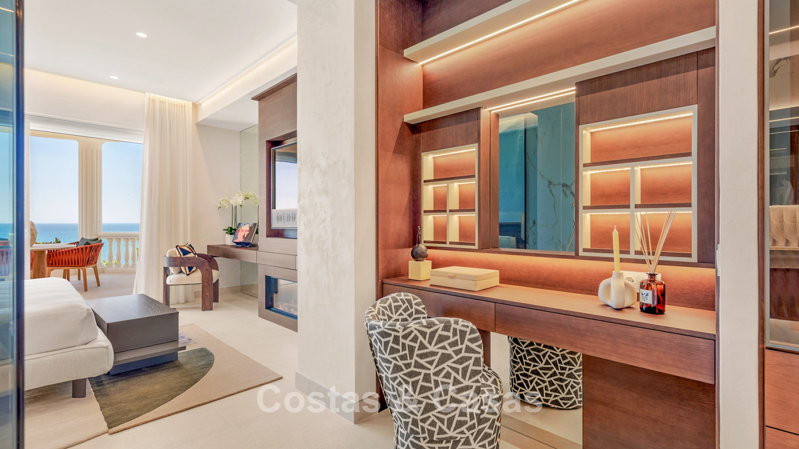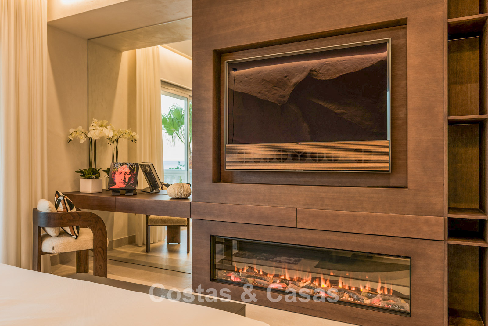 Otras características: Aire acondicionado. Calefacción por suelo radiante en todo el apartamento. Chimenea eléctrica. Sistema de sonido Bang&Olufson. Sistema domótico. Armarios empotrados