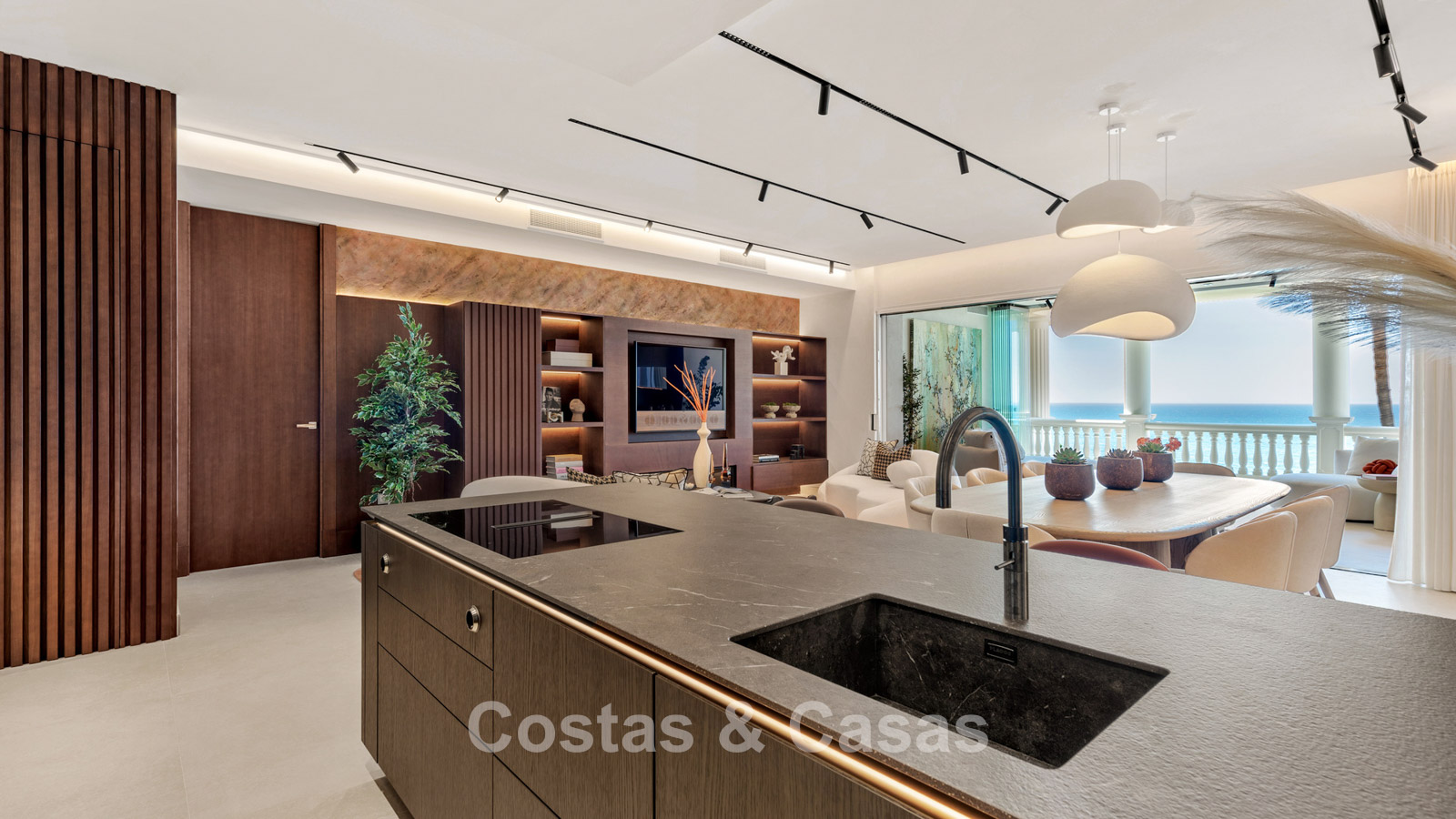 Apartamento de lujo, reformado con un alto nivel. El apartamento cuenta con su propia cabaña junto a la piscina. Esta cabaña privada tiene zona de cocina, aseo y sala de relax. Orientación sur. Disfrutará de una vista frontal y panorámica del mar Mediterráneo. Sala de estar de planta abierta con sala de TV y comedor integrado. Las altas ventanas corredizas se abren al espacio exterior y dejan entrar mucha luz natural. Cocina abierta de diseño con equipamiento Siematic y Gaggenau. Lavadero. 3 dormitorios y 2 baños. Aseo de invitados. Preciosa suite principal con vestidor y acceso a la terraza orientada al sur. Cuarto de lavado. Trastero y garaje interior para 1 coche incluidos.
