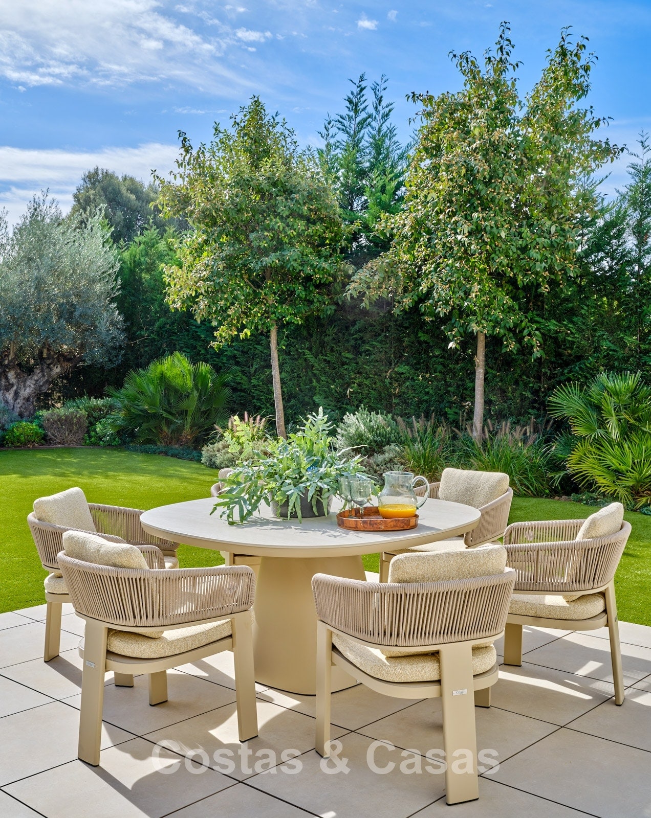 Ubicada en una parcela llana, rodeada de vegetación alta que garantiza privacidad. Una villa ideal para disfrutar de un estilo de vida interior–exterior fluido. Jardín paisajístico cuidado con césped y una piscina privada integrada. Orientación sureste. Vistas tranquilas a la piscina y al jardín.