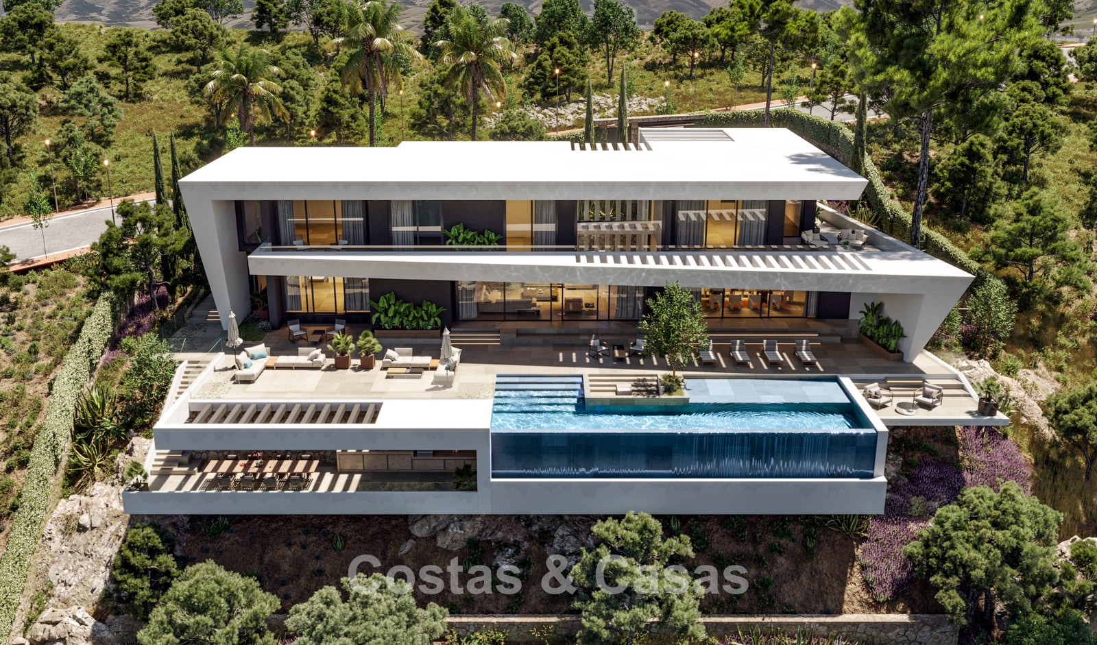 Colección exclusiva compuesta por 6 villas independientes con un concepto de vida innovador. Cada villa está diseñada teniendo en cuenta la armonía con el medio ambiente, respetando e integrando las formas naturales del paisaje en el diseño. Disfrute de la mejor vida al aire libre gracias a varias amplias terrazas, tanto cubiertas como soleadas, complementadas con una atractiva zona de barbacoa, perfecta para relajarse y disfrutar con familiares y amigos. Impresionantes vistas del mar Mediterráneo con Gibraltar y la costa africana en el horizonte. El interior combina elegancia con estética moderna. La presencia de ventanas correderas de suelo a techo en toda la villa proporciona espacios muy luminosos. El diseño de planta abierta conecta a la perfección la elegante sala de estar con la moderna cocina y el comedor, mientras que los detalles refinados, desde la iluminación de diseño hasta la decoración sutil, le dan al conjunto un aspecto refinado. La moderna cocina está equipada con electrodomésticos de calidad. Cine en casa propio. Las villas ofrecen una distribución flexible con 3 a 9 habitaciones, cada una con su propio baño de lujo para máxima comodidad y privacidad.