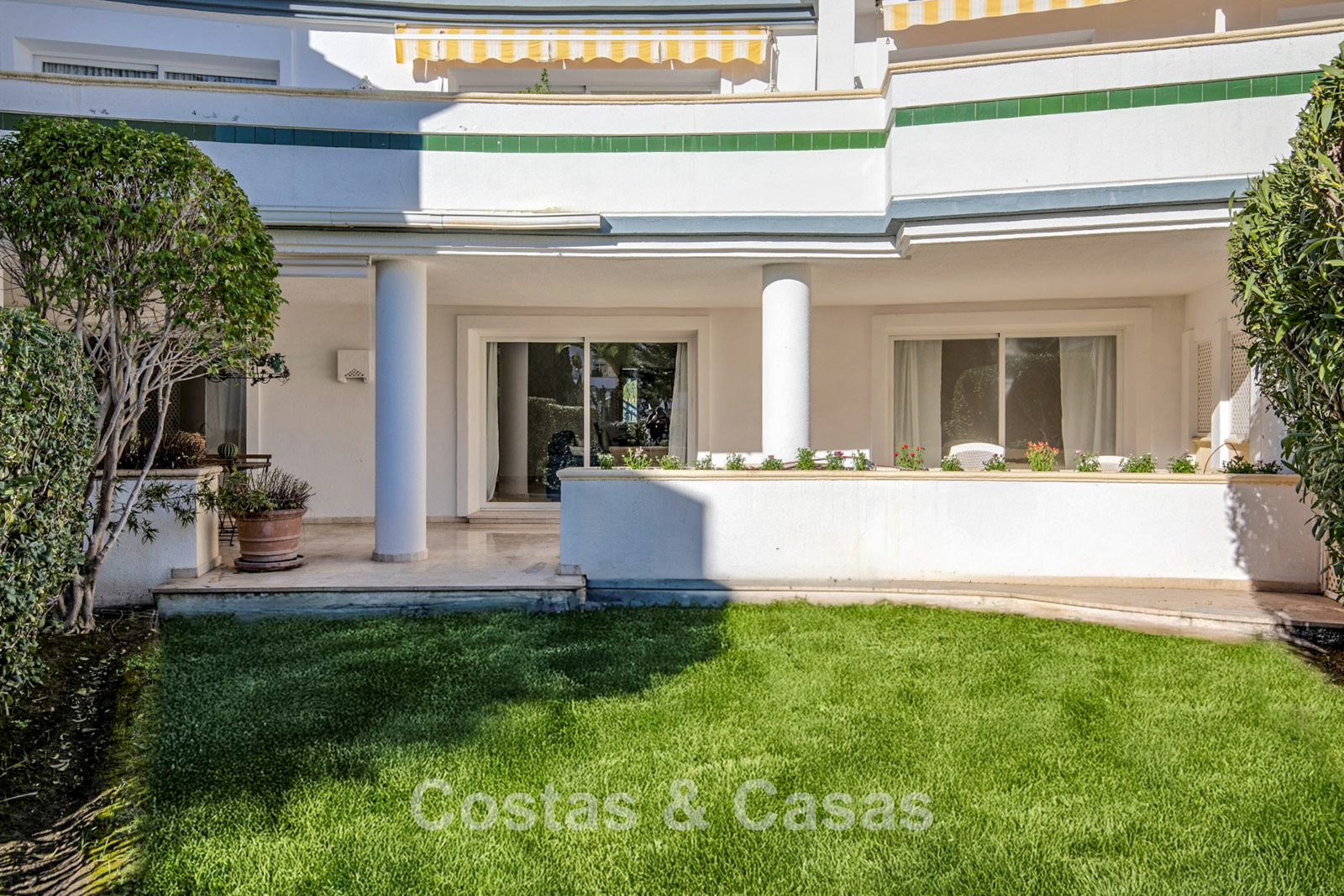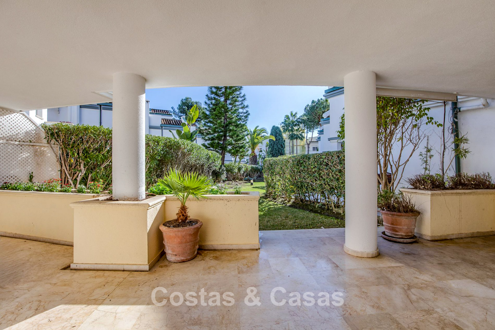Amplio apartamento en planta baja ubicado en un popular complejo frente al mar. La vivienda ofrece excelentes posibilidades de modernización, permitiendo adaptarla a los estándares actuales de diseño y confort y aumentar considerablemente su valor. Orientación sur. Luminoso salón con zona de TV y comedor integrado. El interior se abre de forma fluida a una amplia terraza y a un jardín de uso privado, creando una conexión natural entre los espacios interiores y exteriores. Cocina independiente totalmente equipada con ventana abierta al salón. 3 dormitorios, 3 baños completos y un aseo de cortesía.