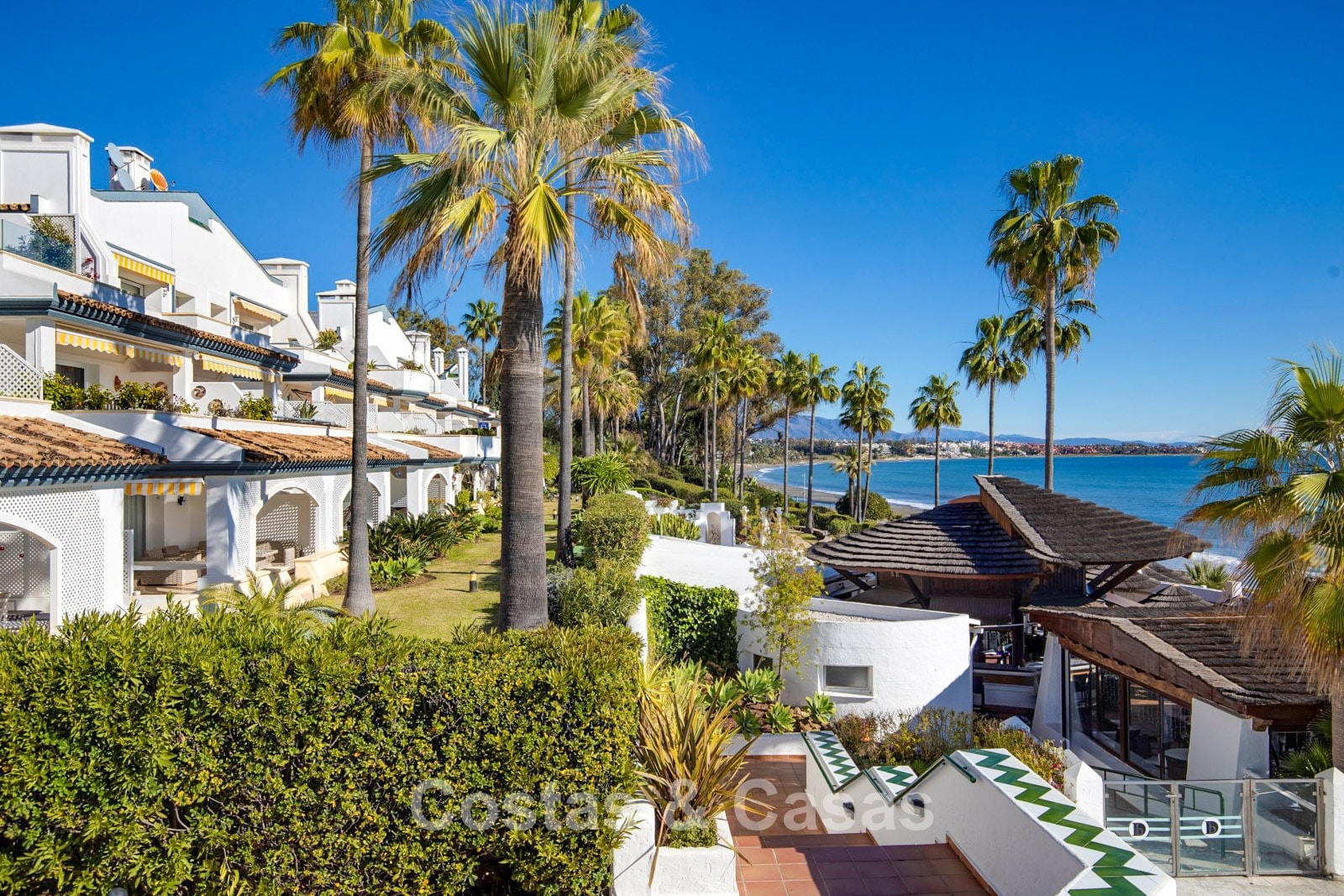 Estratégicamente situado frente al mar, el complejo ofrece acceso directo al paseo marítimo y a la playa, con numerosos y encantadores chiringuitos a poca distancia a pie. A tan solo unos minutos en coche de todos los servicios. El complejo destaca por su carácter andaluz único, con jardines tropicales, coloridos parterres, senderos peatonales y una piscina frente al mar. Los residentes disfrutan de tres piscinas exteriores, piscina infantil, instalaciones de spa con servicio de masajes, terraza comunitaria en la playa, chiringuito de verano, restaurante privado, gimnasio totalmente equipado y mucho más.