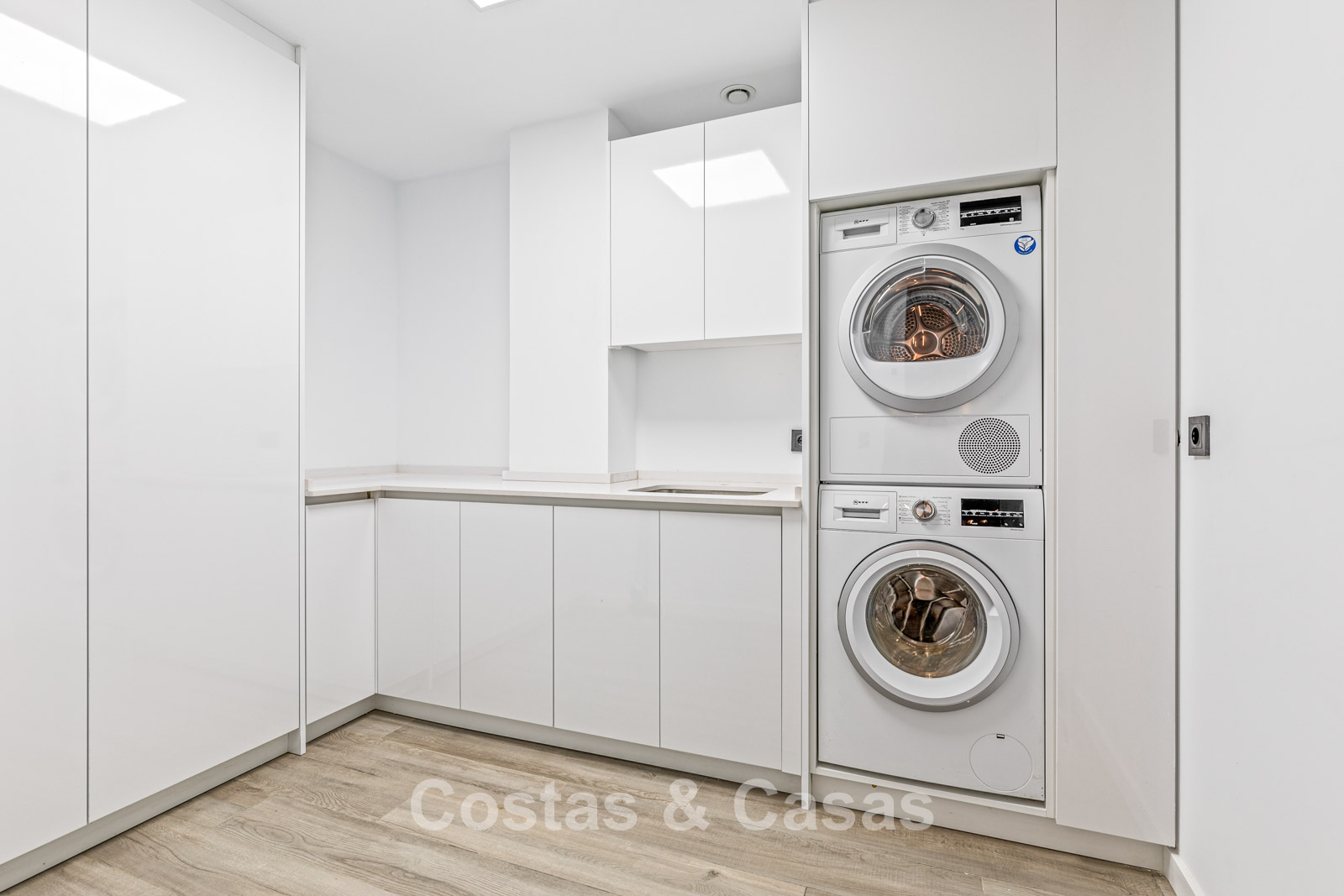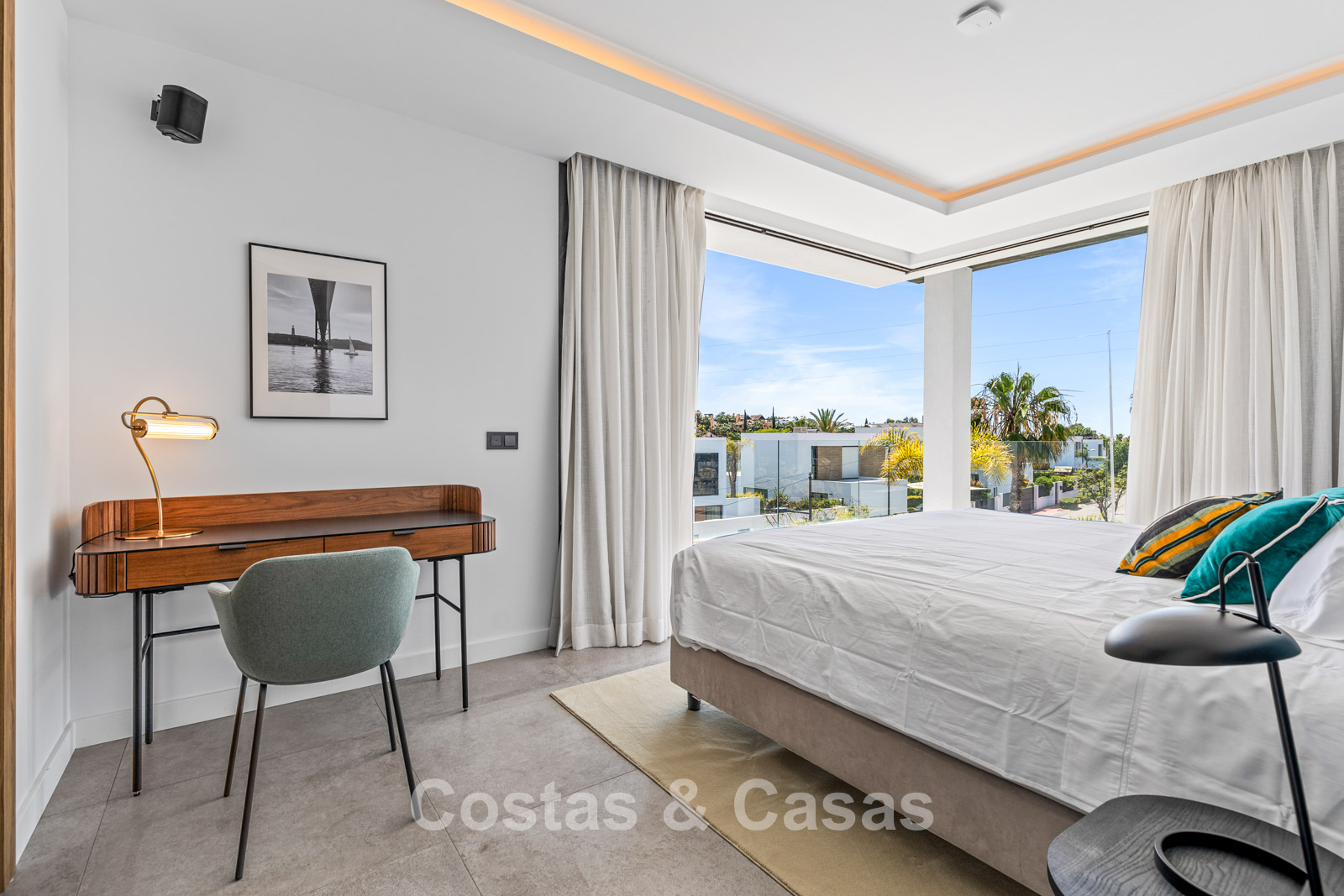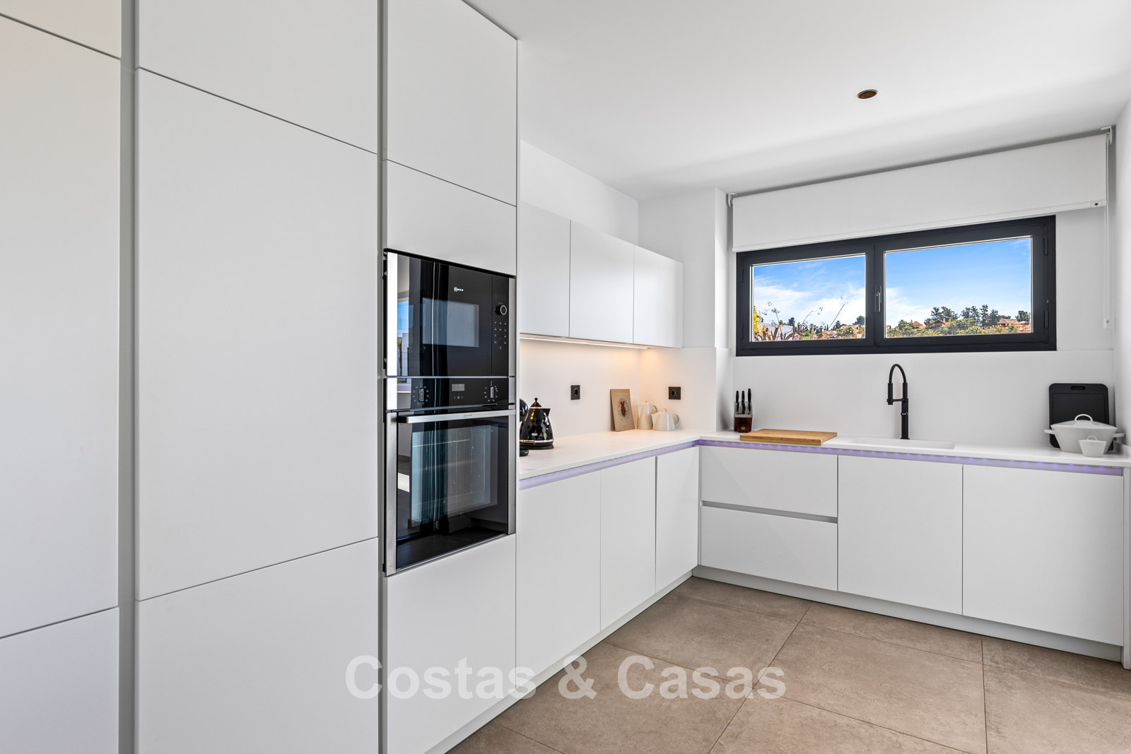 La villa presenta un diseño minimalista con líneas limpias que crean una atmósfera impactante y contemporánea. Finalizada en 2022, la villa se construyó con materiales y artesanía de la más alta calidad, lo que se traduce en un alto nivel de confort. Los ventanales de suelo a techo que se integran completamente en las paredes crean una transición fluida entre el interior y el exterior, permitiendo la entrada de abundante luz natural. El interior, elegante y moderno, irradia un diseño chic y lujoso, con materiales refinados y toques elegantes. Una amplia sala de estar combina una elegante sala de estar con un comedor. La cocina, hecha a medida, está totalmente equipada con electrodomésticos Neff y cuenta con una isla de desayuno. Hay cuatro dormitorios, cuatro baños y un aseo de invitados. La planta sótano cuenta con una zona de relax con zona chill-out, cocina americana y bar. Un hammam. Un lavadero equipado. Suelos de baldosas de alta calidad. Un garaje para dos coches.