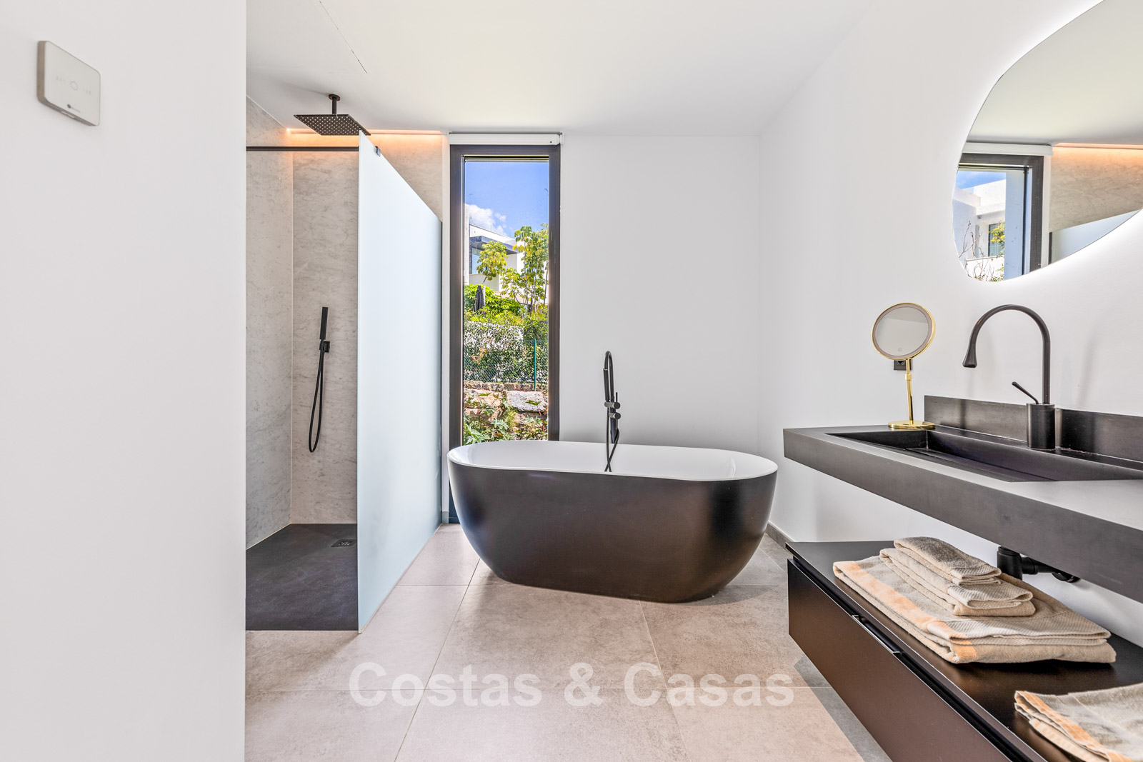 Otras características: Aire acondicionado frio/calor. Calefacción por suelo radiante en toda la primera planta. Chimenea moderna. Doble acristalamiento. Barandillas de cristal alrededor de las terrazas. Escalera flotante. Armarios empotrados a medida. Sistema domótico para iluminación, climatización y seguridad. Sistema de CCTV y videoportero. Iluminación LED interior y exterior. Paneles solares para una mayor eficiencia energética. Ducha exterior. Sistema de riego automático. Totalmente amueblada.