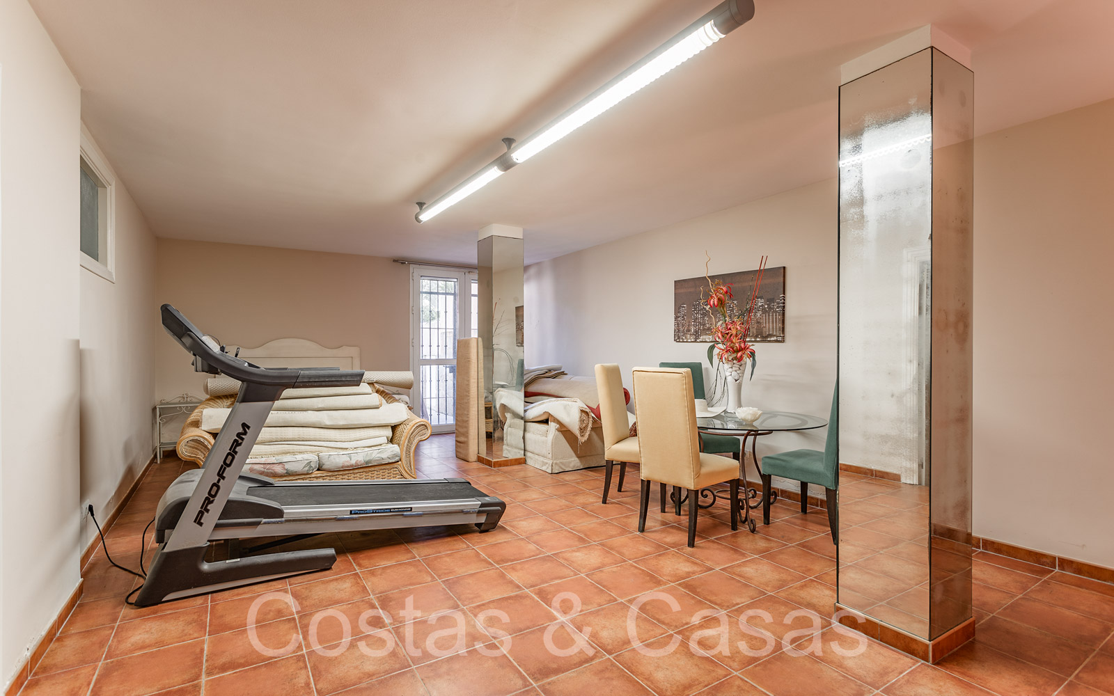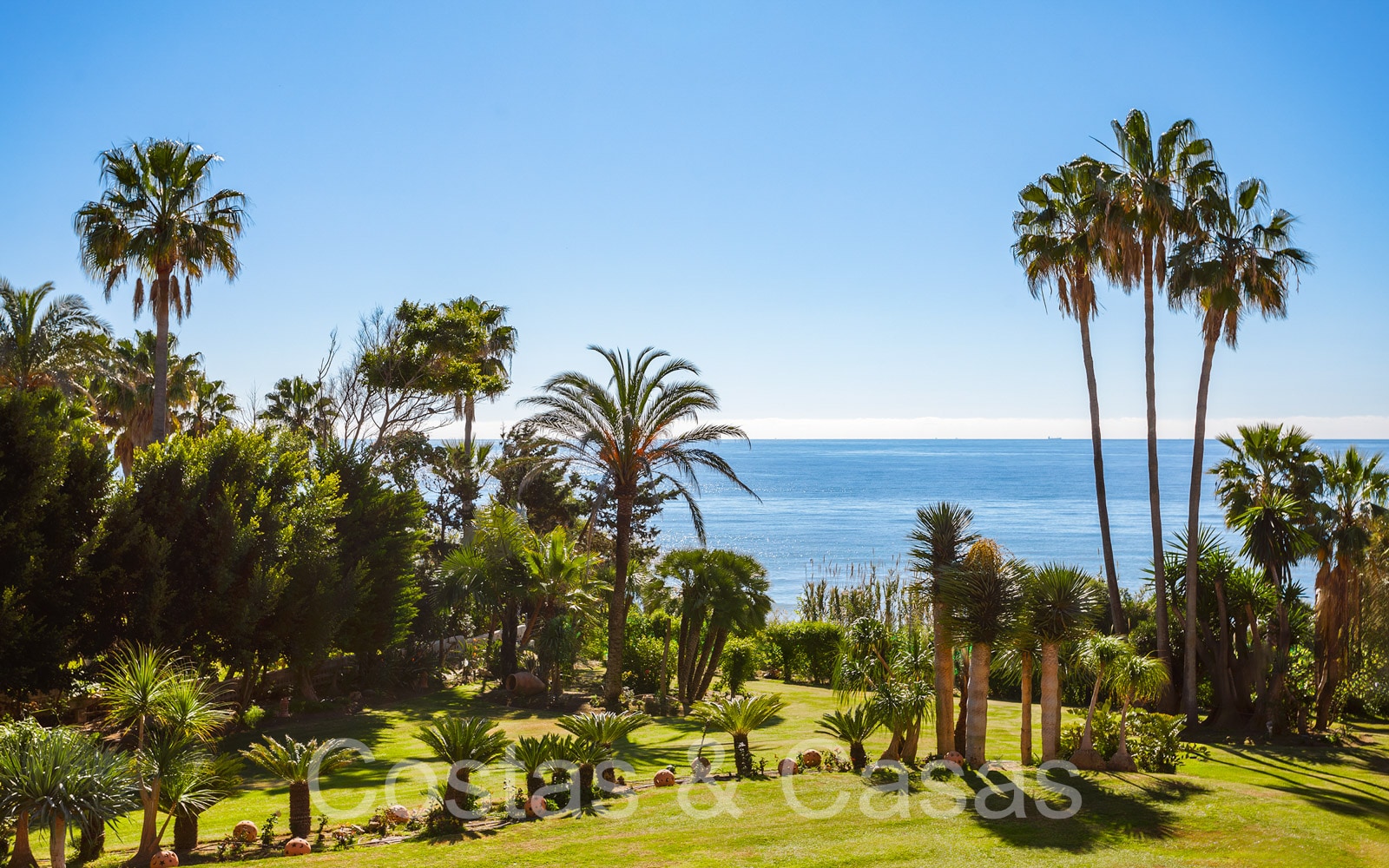 Amplia parcela de nada menos que 5,039m², colindante con la playa. Jardín paisajístico bien cuidado con mucho césped y zonas verdes, que proporciona la valla y la privacidad necesarias. Gran piscina privada con solárium adyacente con tumbonas. Un pool house junto a la piscina dispone de bar, cocina al aire librecon zona de barbacoa y comedor al aire libre. Múltiples terrazas abiertas y cubiertas equipadas con instalaciones de salón. Orientación sur. Vista pintoresca del jardín con el mar Mediterráneo al fondo.