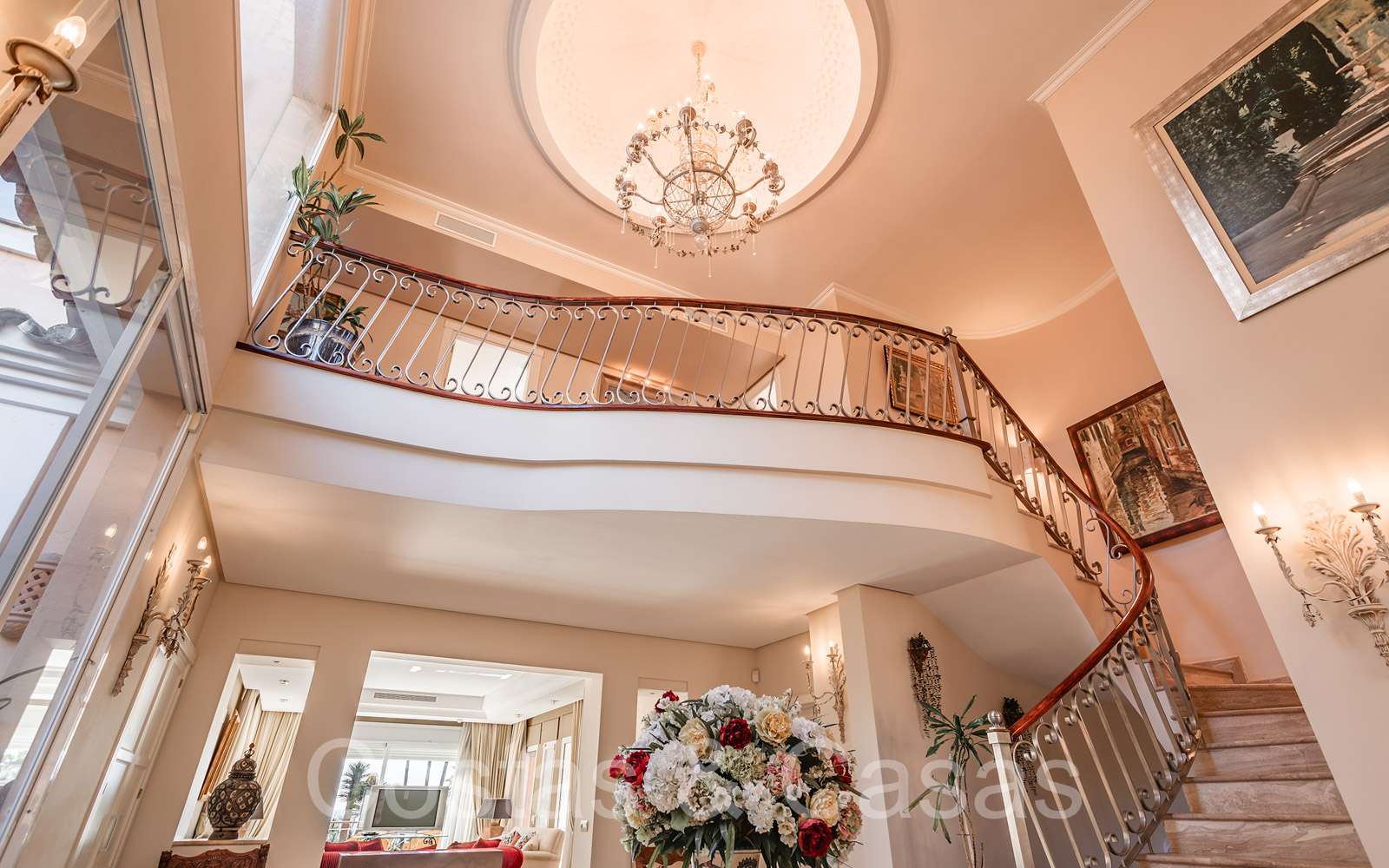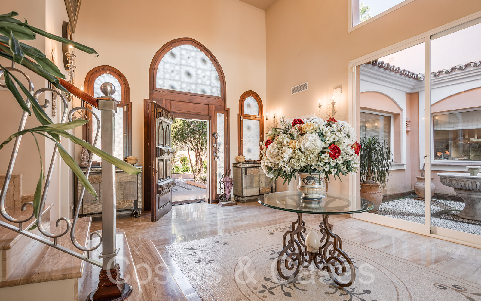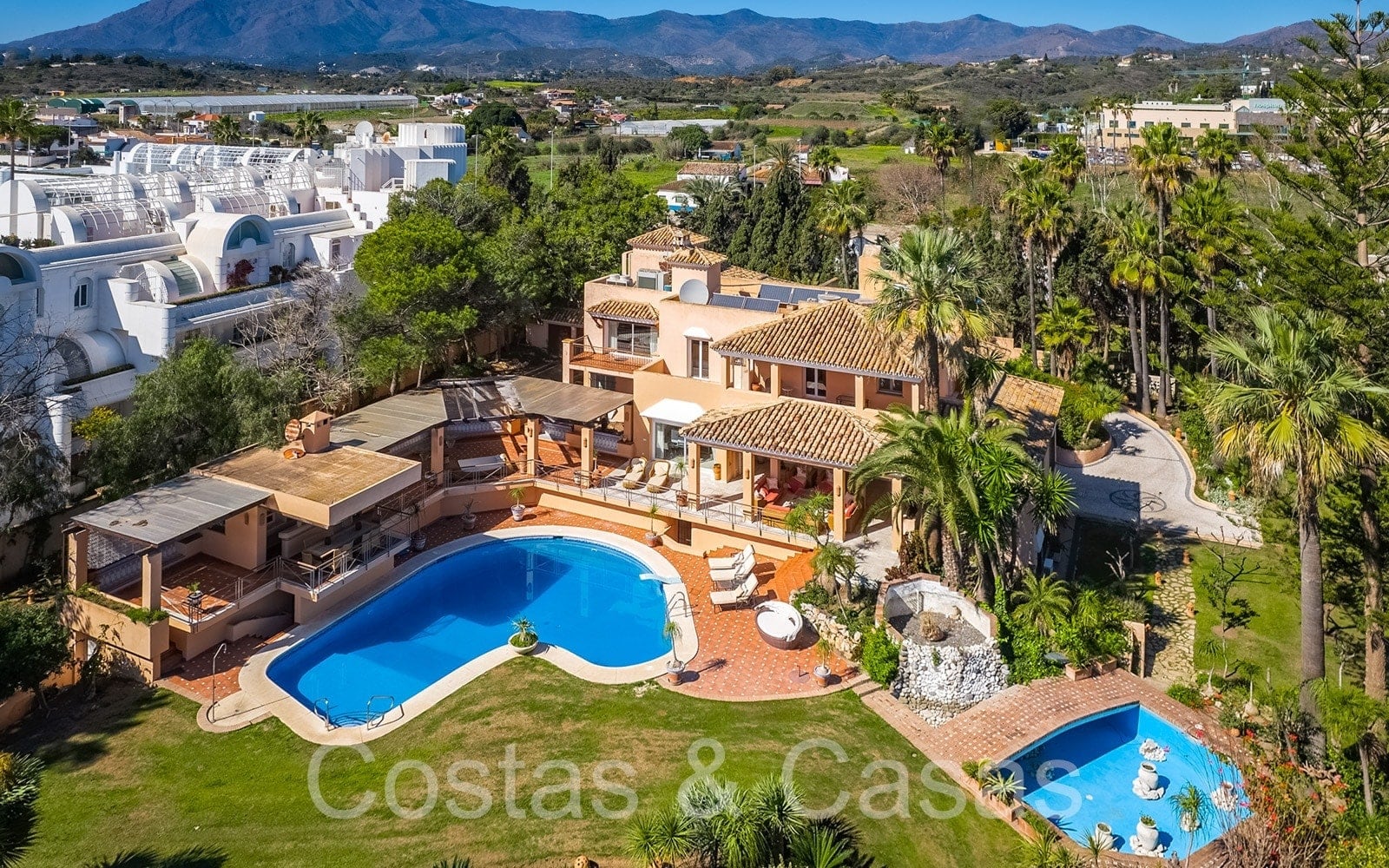 Finca independiente de lujo de estilo arquitectónico andaluz con auténticas influencias moriscas. Utilizando materiales de construcción de alta calidad. Entras a un impresionante vestíbulo de entrada con techo de doble altura y una escalera decorativa ascendente. El interior es un conjunto de elementos naturales y un diseño interior cálido y con carácter. Un camino espacioso le lleva a la entrada de la villa y también ofrece aparcamiento para varios coches. Varias salas de estar, incluida una acogedora sala de televisión, ofrecen mucho espacio para relajarse y entretenerse. Amplia cocina comedor, totalmente equipada con electrodomésticos de primera línea. 8 dormitorios, 10 baños, 8 de los cuales son en suite. 2 de estos dormitorios se encuentran en la planta inferior y cada uno tiene su propio salón, cocina y baño. Un alojamiento de invitados independiente está equipada con su propia cocina y baño y se encuentra debajo del pool house. Suelos de mármol en las zonas de estar y de madera en los dormitorios. Garaje interior para 2 coches.