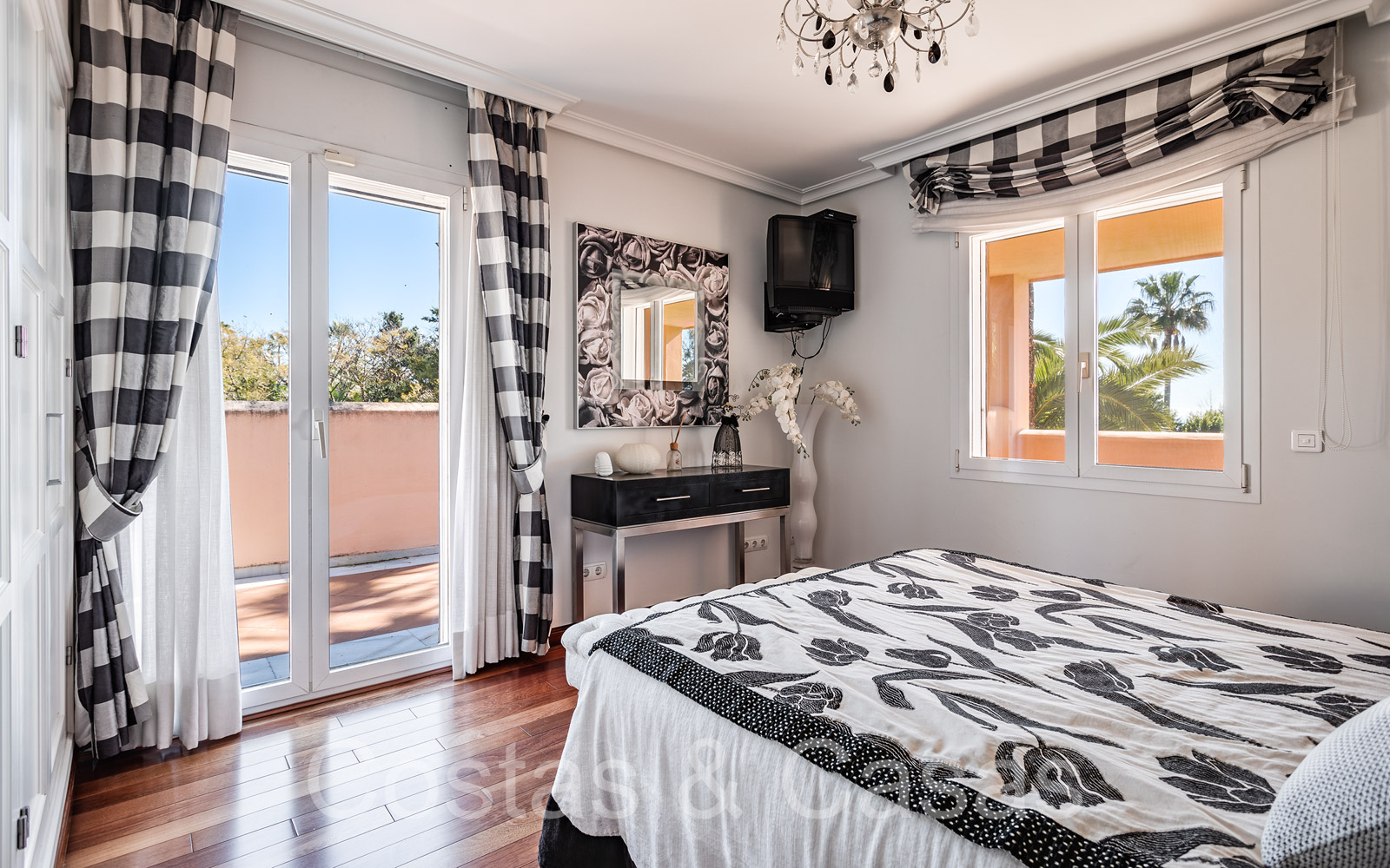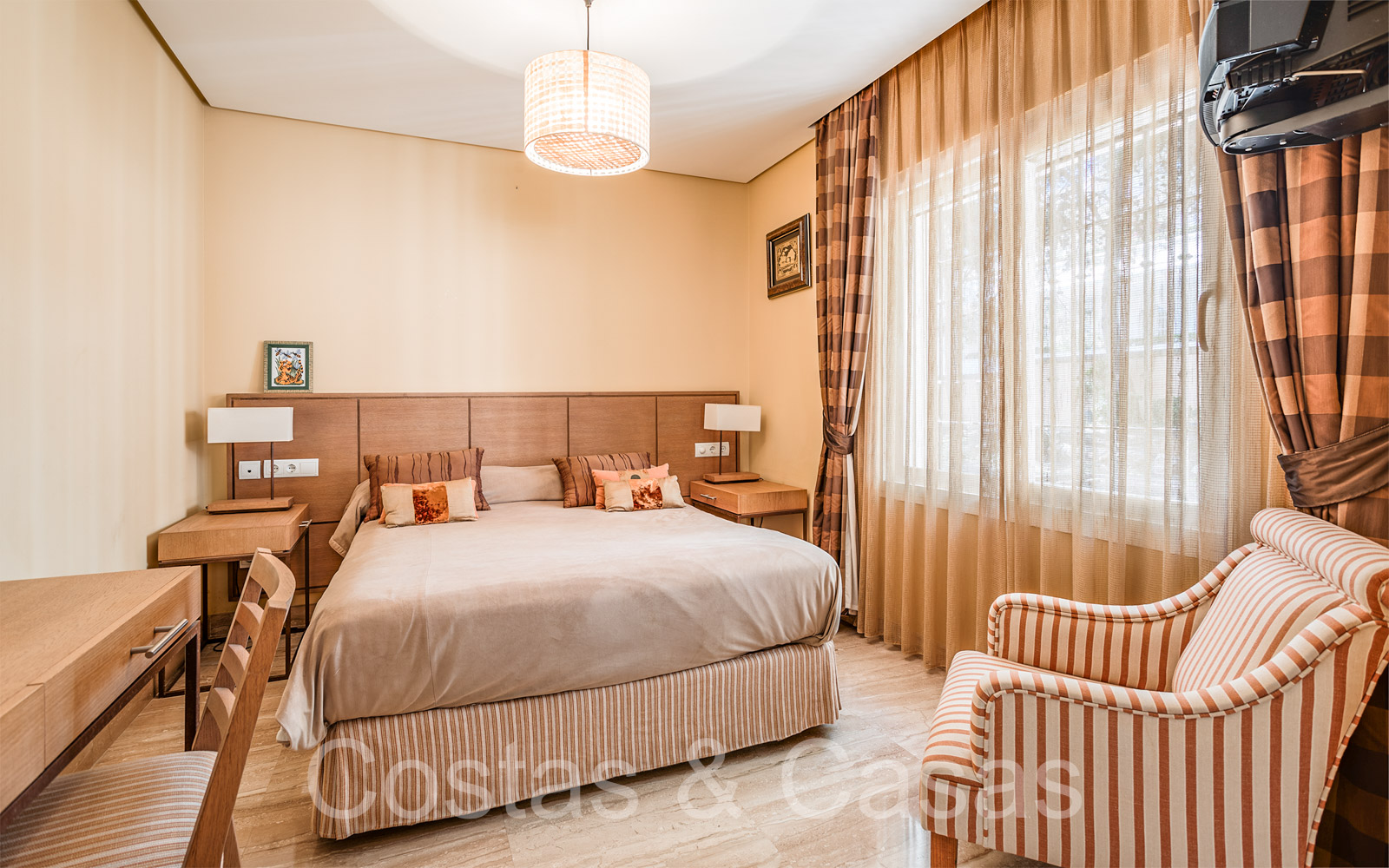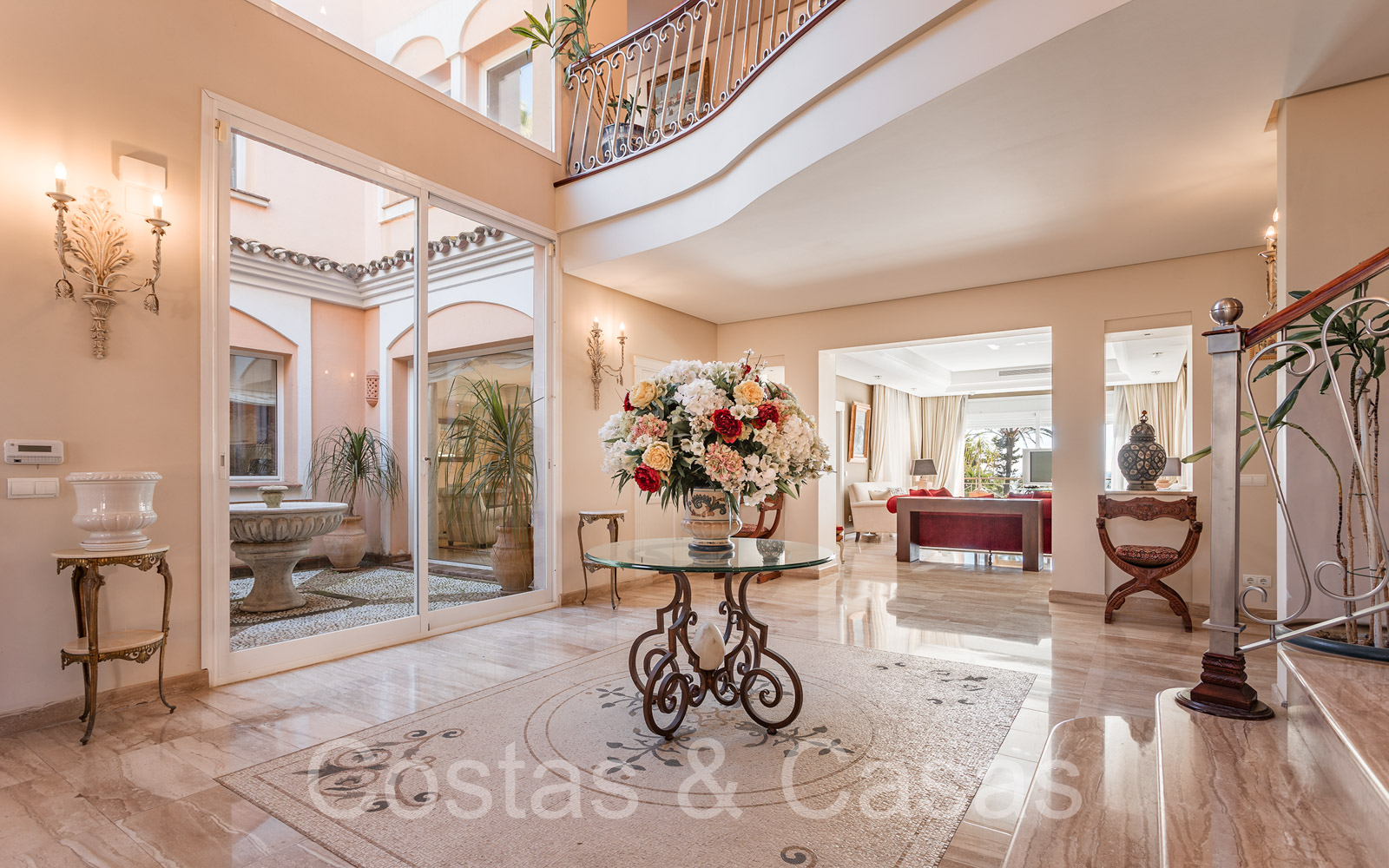 Finca independiente de lujo de estilo arquitectónico andaluz con auténticas influencias moriscas. Utilizando materiales de construcción de alta calidad. Entras a un impresionante vestíbulo de entrada con techo de doble altura y una escalera decorativa ascendente. El interior es un conjunto de elementos naturales y un diseño interior cálido y con carácter. Un camino espacioso le lleva a la entrada de la villa y también ofrece aparcamiento para varios coches. Varias salas de estar, incluida una acogedora sala de televisión, ofrecen mucho espacio para relajarse y entretenerse. Amplia cocina comedor, totalmente equipada con electrodomésticos de primera línea. 8 dormitorios, 10 baños, 8 de los cuales son en suite. 2 de estos dormitorios se encuentran en la planta inferior y cada uno tiene su propio salón, cocina y baño. Un alojamiento de invitados independiente está equipada con su propia cocina y baño y se encuentra debajo del pool house. Suelos de mármol en las zonas de estar y de madera en los dormitorios. Garaje interior para 2 coches.