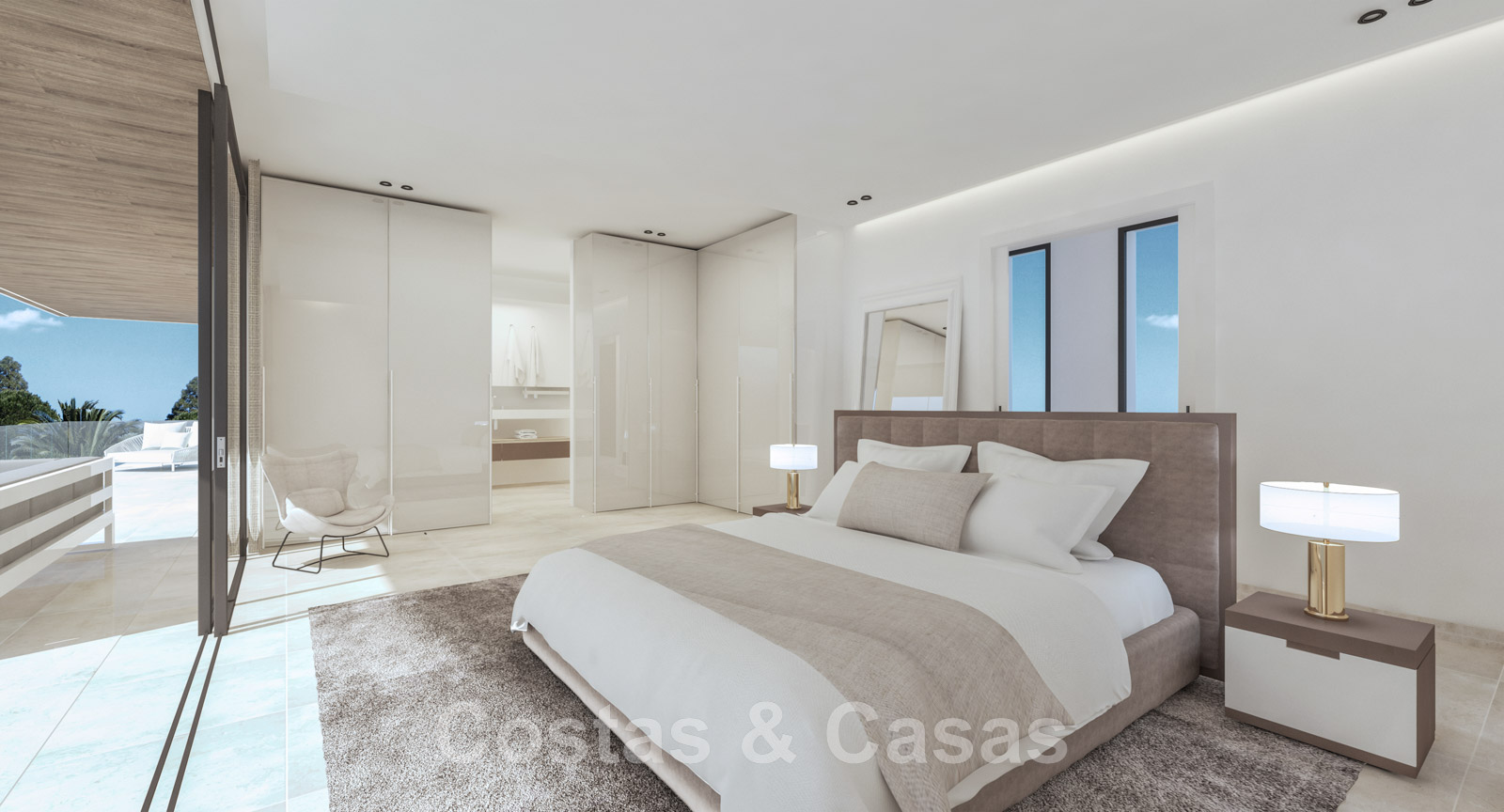 Une chambre à coucher avec salle de bain et dressing.