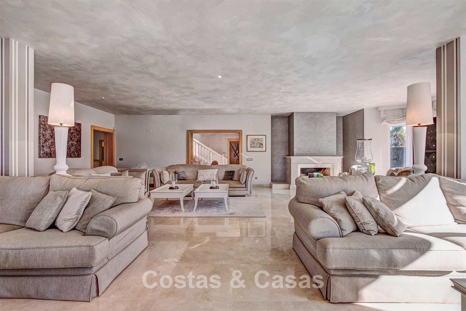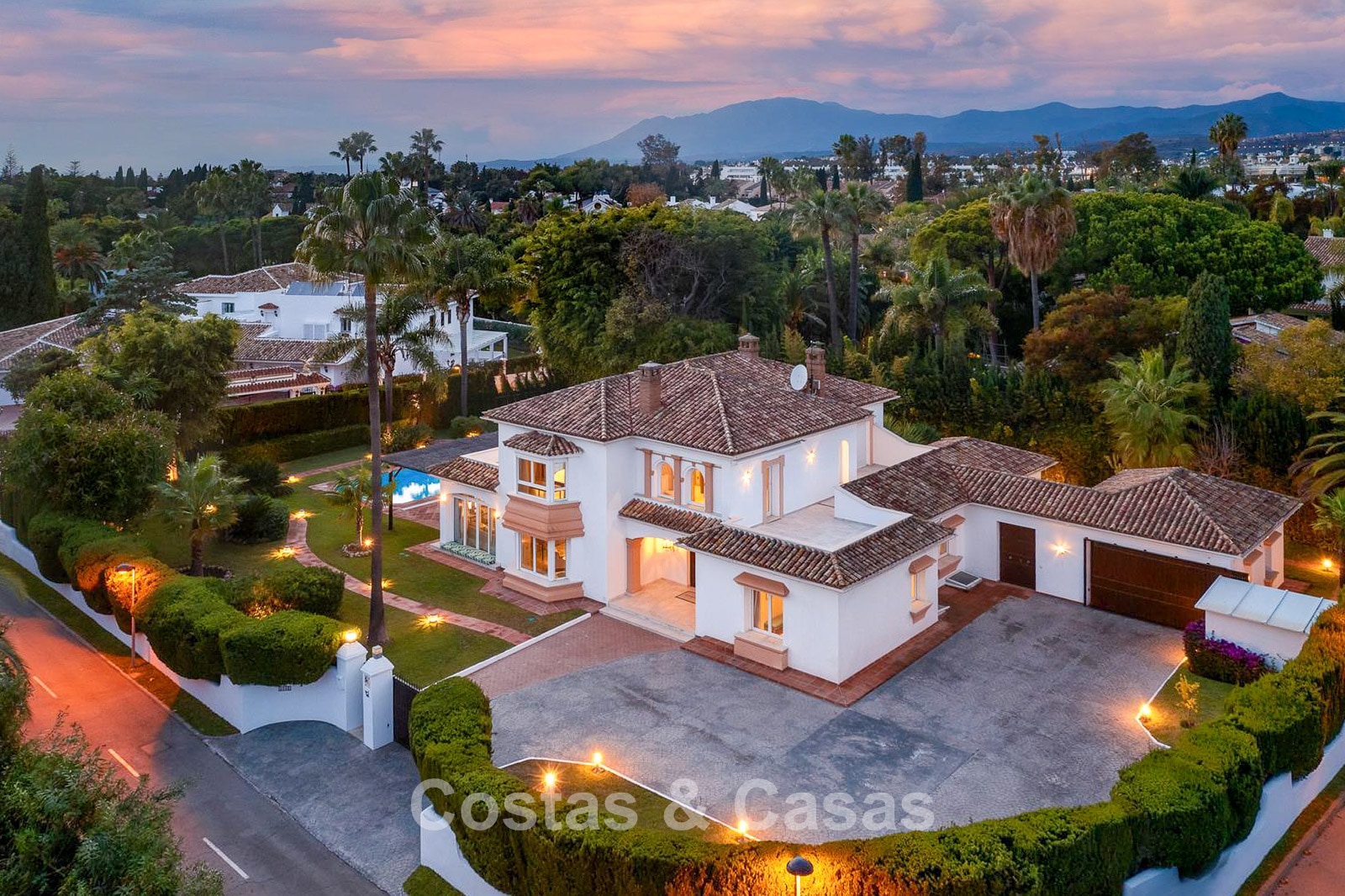 Villa independiente, construida con un estilo arquitectónico tradicional español. Los materiales y acabados son de alta calidad. Al entrar, se accede al recibidor de doble altura que da paso a la espaciosa sala de estar. Amplio salón con varias zonas de estar. Los altos ventanales se abren al exterior y proporcionan abundante luz natural. Cocina independiente, totalmente equipada con electrodomésticos de alta gama y mesa de comedor. 6 dormitorios, cada uno con su propio baño. Lavadero totalmente equipado con electrodomésticos Bosch. Espacio de oficina. Segundo salón de TV en la planta inferior. Suelos de mármol. Garaje integrado para 2 coches. Amplio aparcamiento privado en la propiedad.