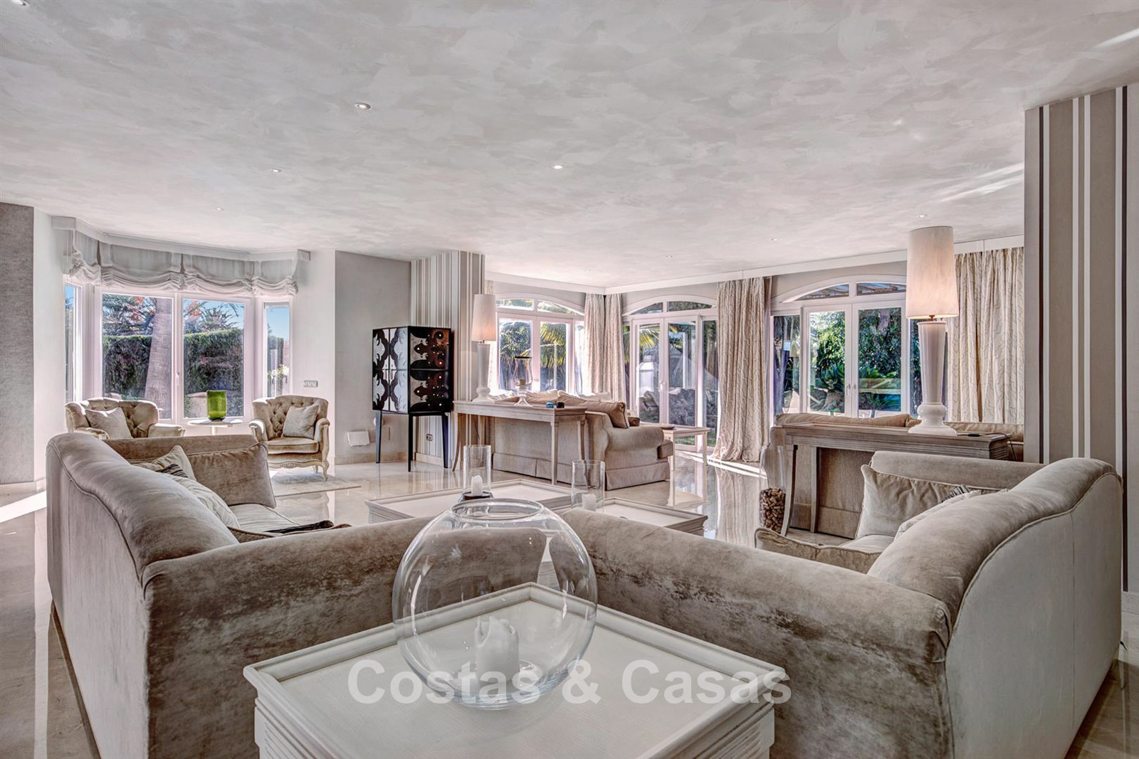 Situada en una exclusiva, tranquila y verde zona residencial de Marbella, a un paso de la playa. Todos los servicios diarios, como colegios internacionales, clubes de golf, supermercados, bancos, restaurantes y bares, están a poca distancia. Gracias al acceso directo a la carretera costera A7, la accesibilidad es excelente.