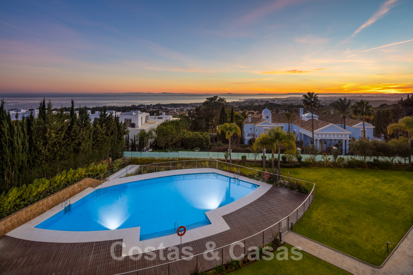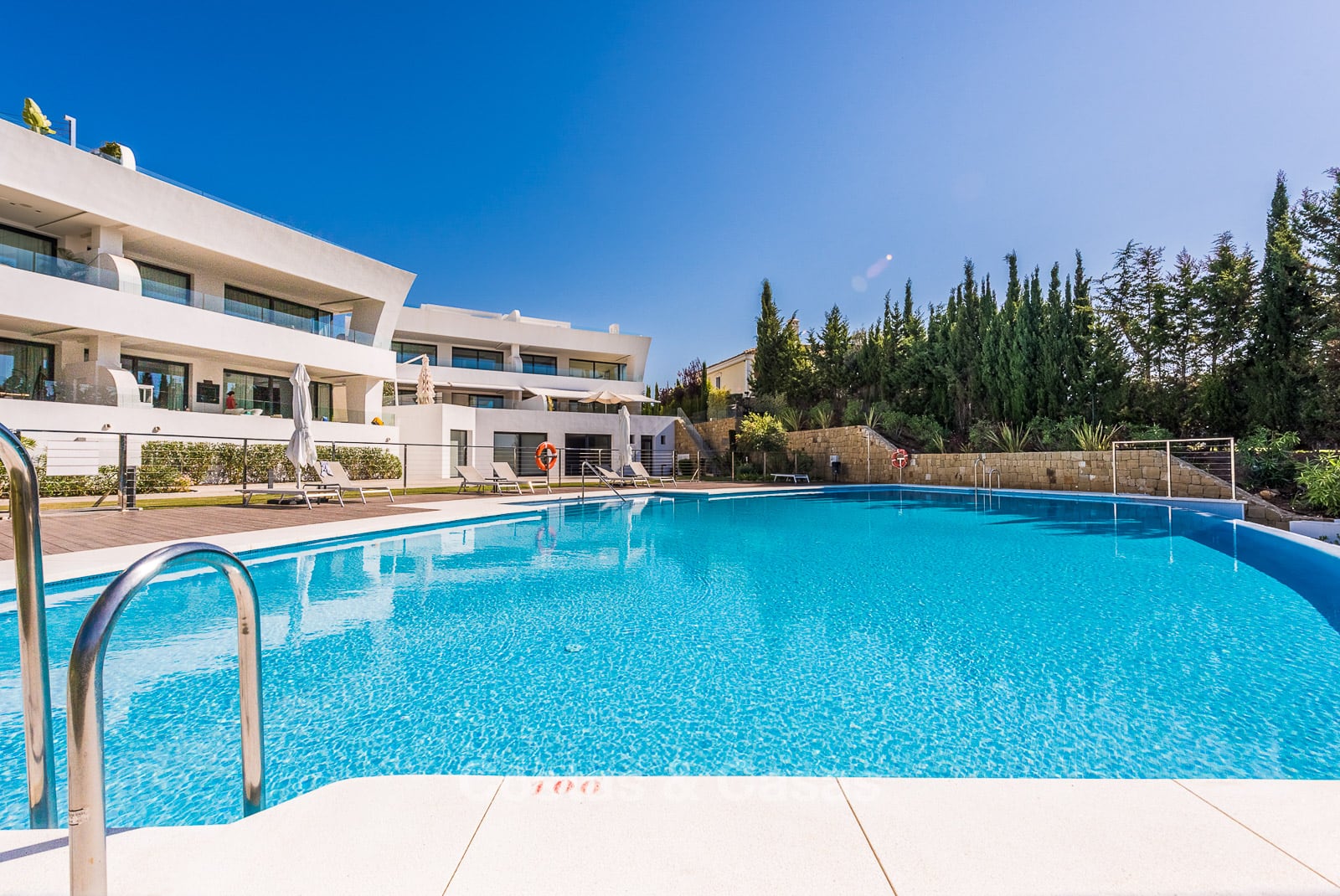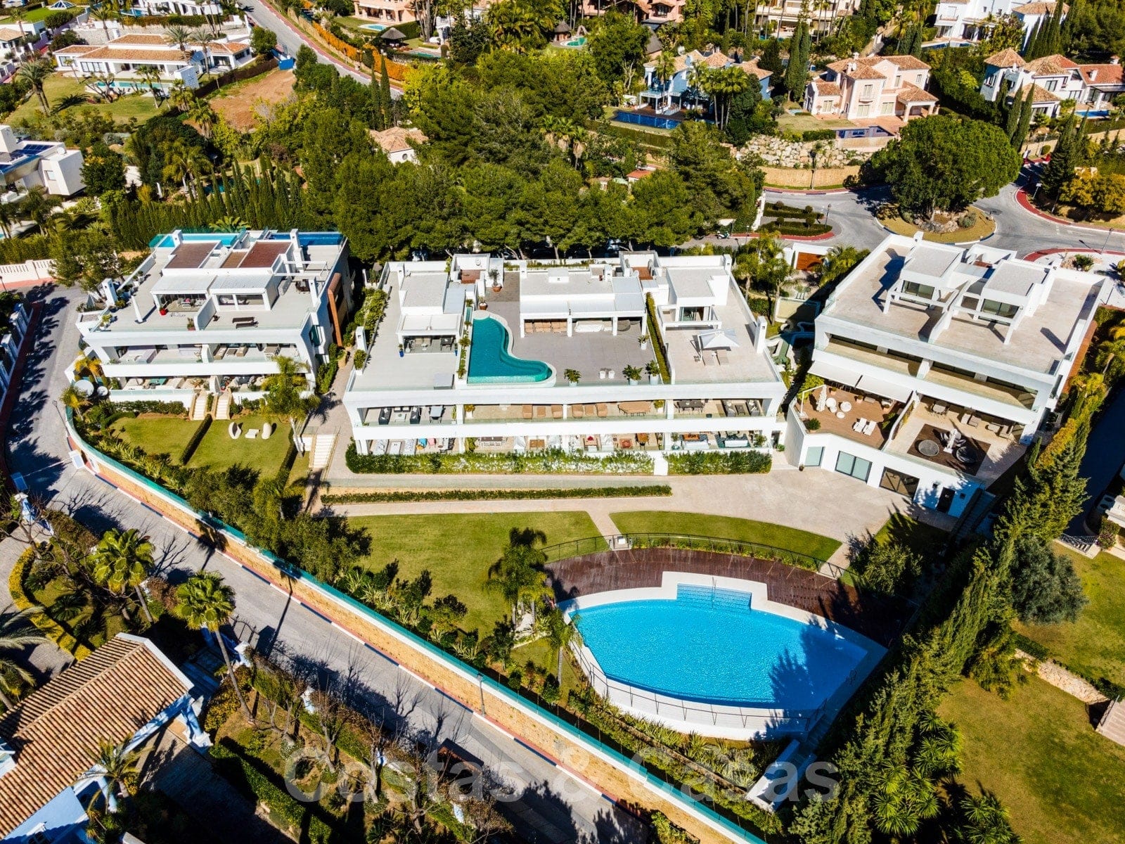 Los apartamentos de la planta baja son dúplex con el espacio habitable en el nivel superior y un sótano con luz natural como espacio habitable adicional. Estos apartamentos tienen acceso directo al jardín. Los áticos tienen un espacio habitable en un nivel con una terraza en la azotea con un espacio adicional. Este espacio adicional en la azotea generalmente se convierte en un cuarto dormitorio y, a menudo, se amplía con una terraza. Algunos áticos tienen una cocina al aire libre y una gran piscina privada. Amplio salón con doble techo a doble altura y aseo de cortesía. Sala de estar y comedor de planta abierta amplia y luminosa con una chimenea moderna. Cocina moderna de planta abierta con isla de cocina y electrodomésticos de alta calidad. Los áticos tienen una amplia terraza cubierta con vistas a la piscina y al mar. 3 dormitorios en suite, de los cuales el dormitorio principal da a la terraza. Enorme azotea con espacio adicional y una pérgola adjunta. Vistas panorámicas al mar hasta el Estrecho de Gibraltar y la majestuosa montaña de La Concha. Orientación sur.