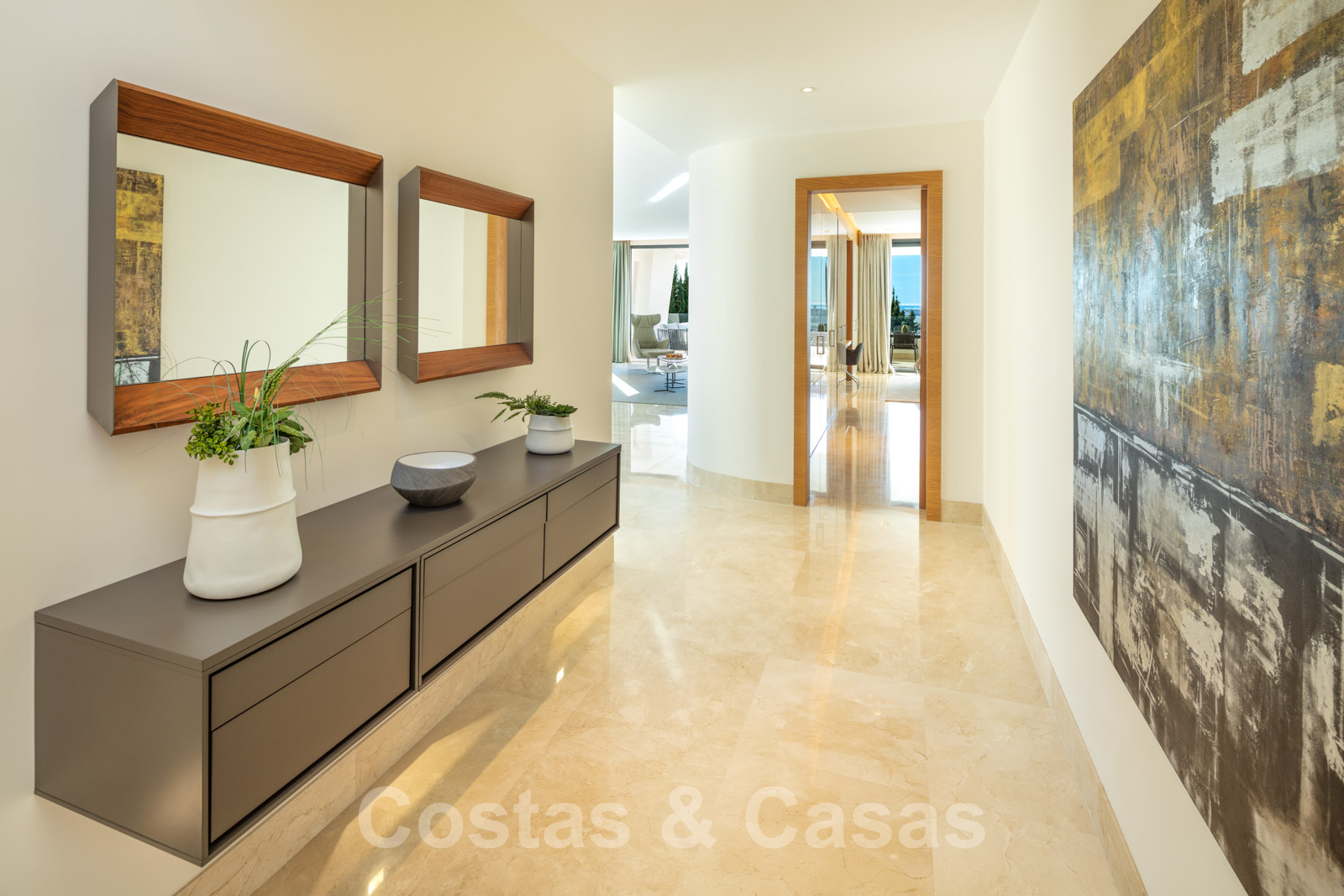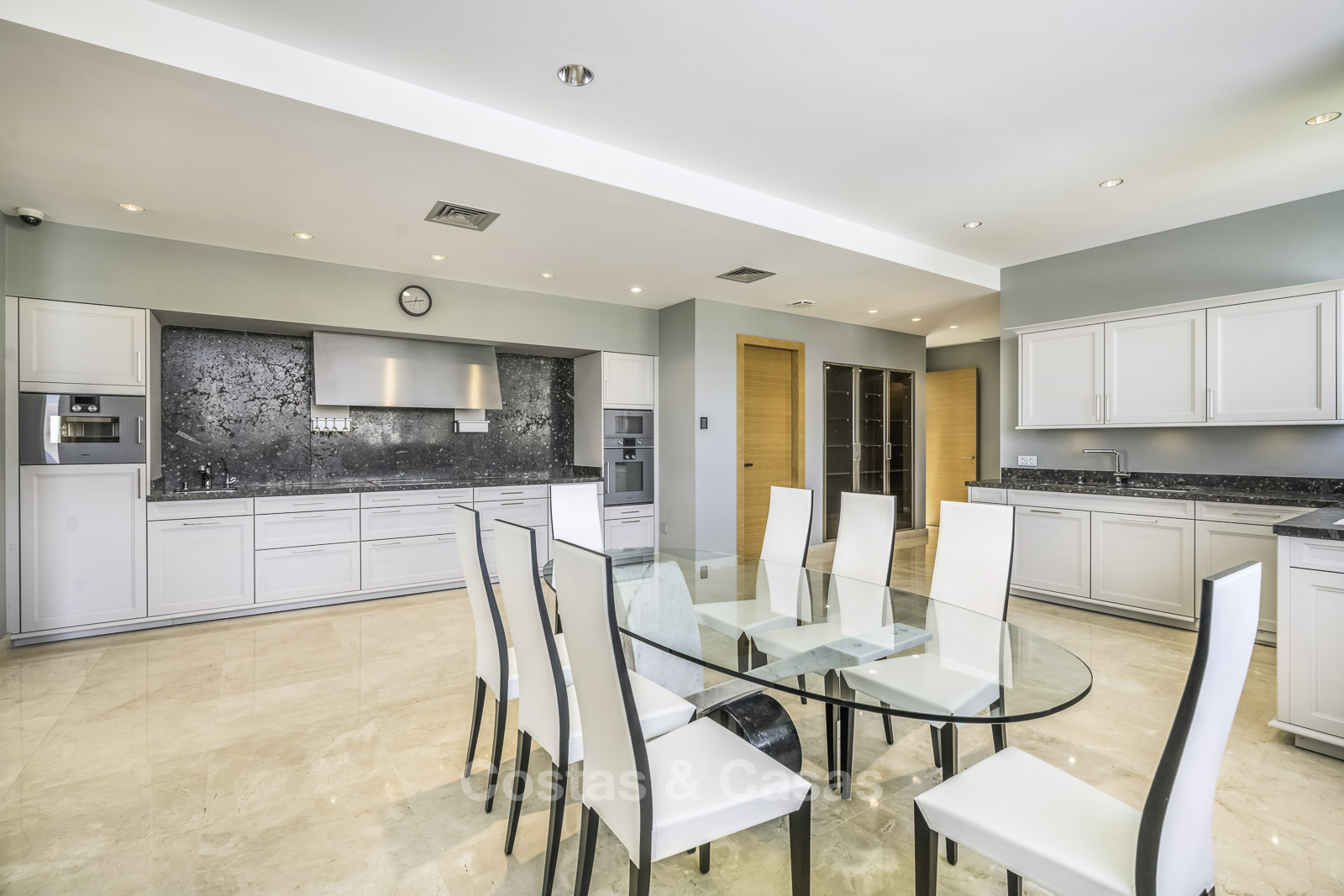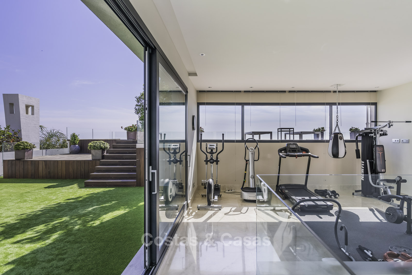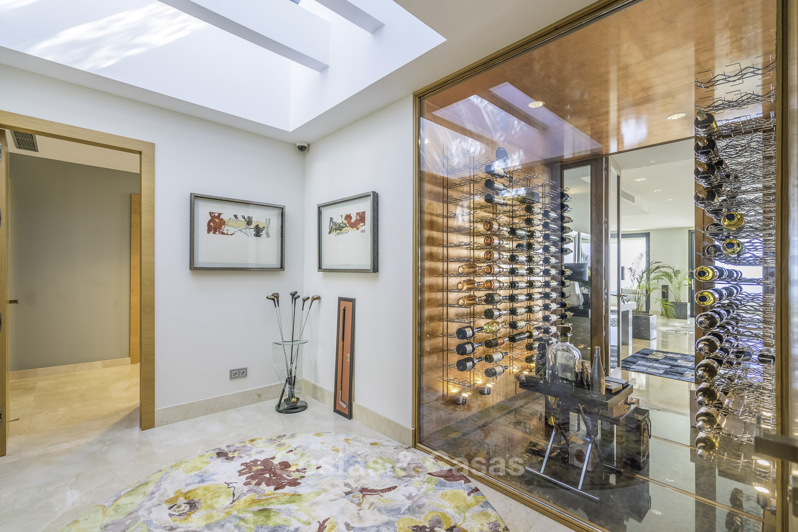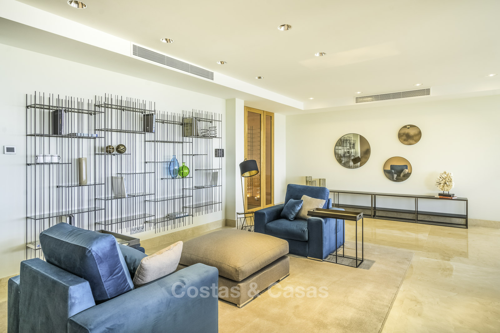 Suelos de marmol Grandes puertas correderas con perfiles de ventana empotrados Techos altos Puertas de suelo a techo y muchos armarios empotrados de suelo a techo Domótica para controlar las luces Cortinas operadas eléctricamente Aire acondicionado para frio y calor. Barandillas de vidrio Plazas de garaje subterráneas y trastero.