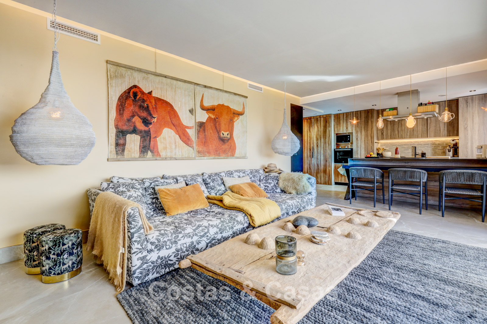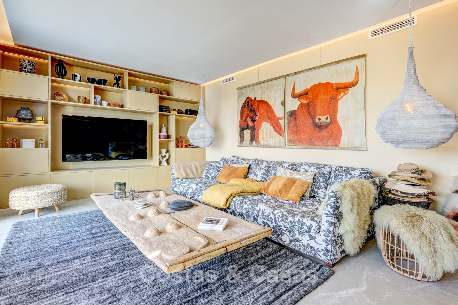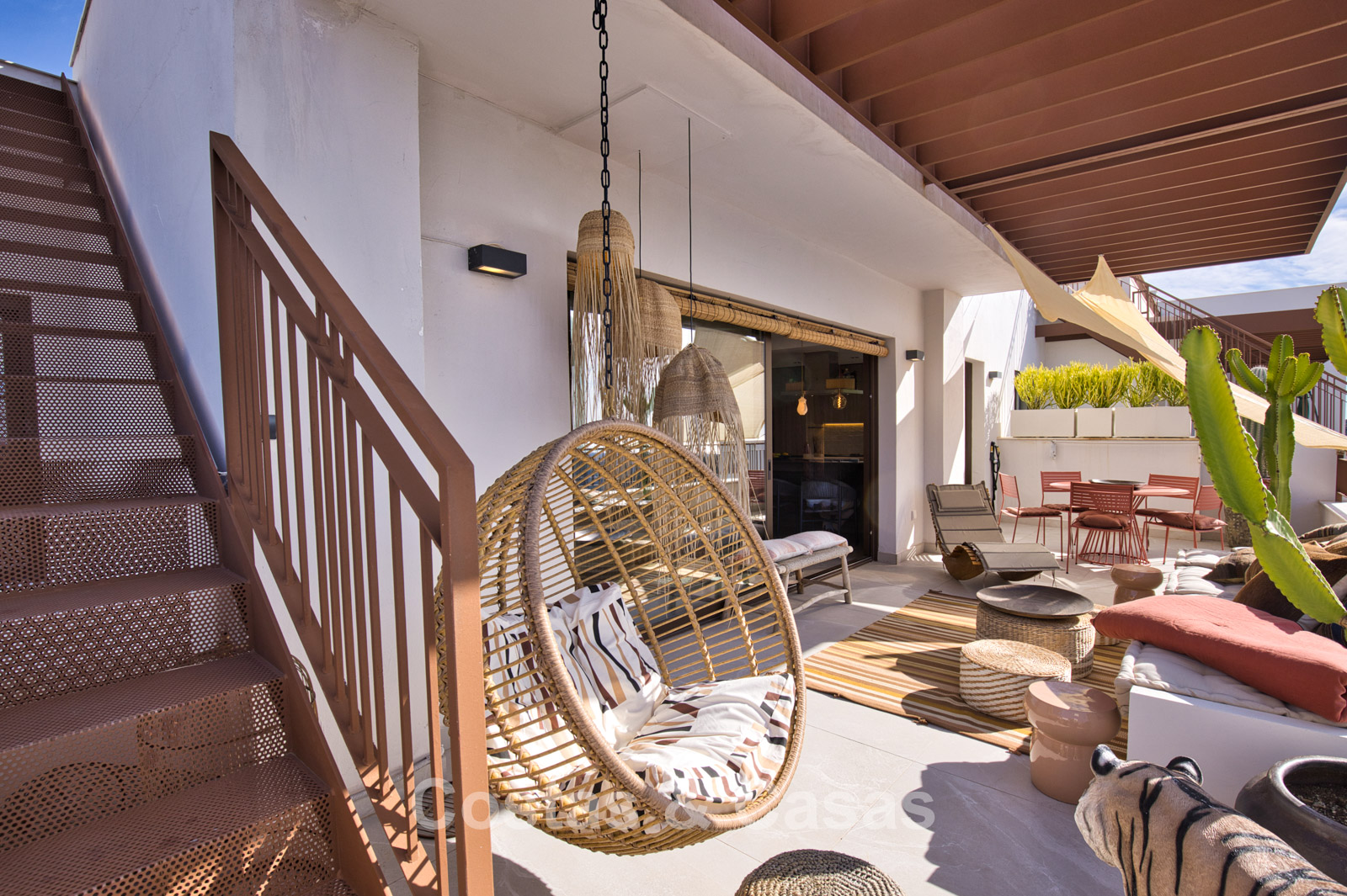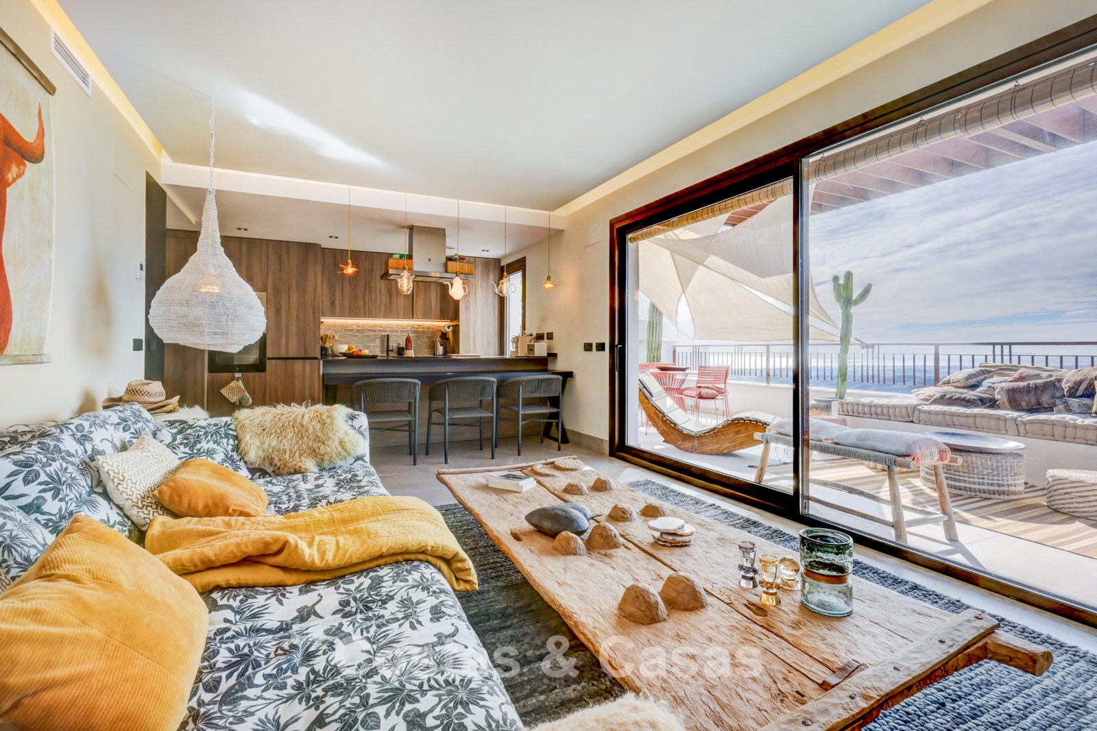 Entre en un mundo de elegancia sin esfuerzo: este ático se vende completamente amueblado con gusto, con un atractivo estilo ibicenco que invita a relajarse y disfrutar del espíritu mediterráneo desde el primer día.