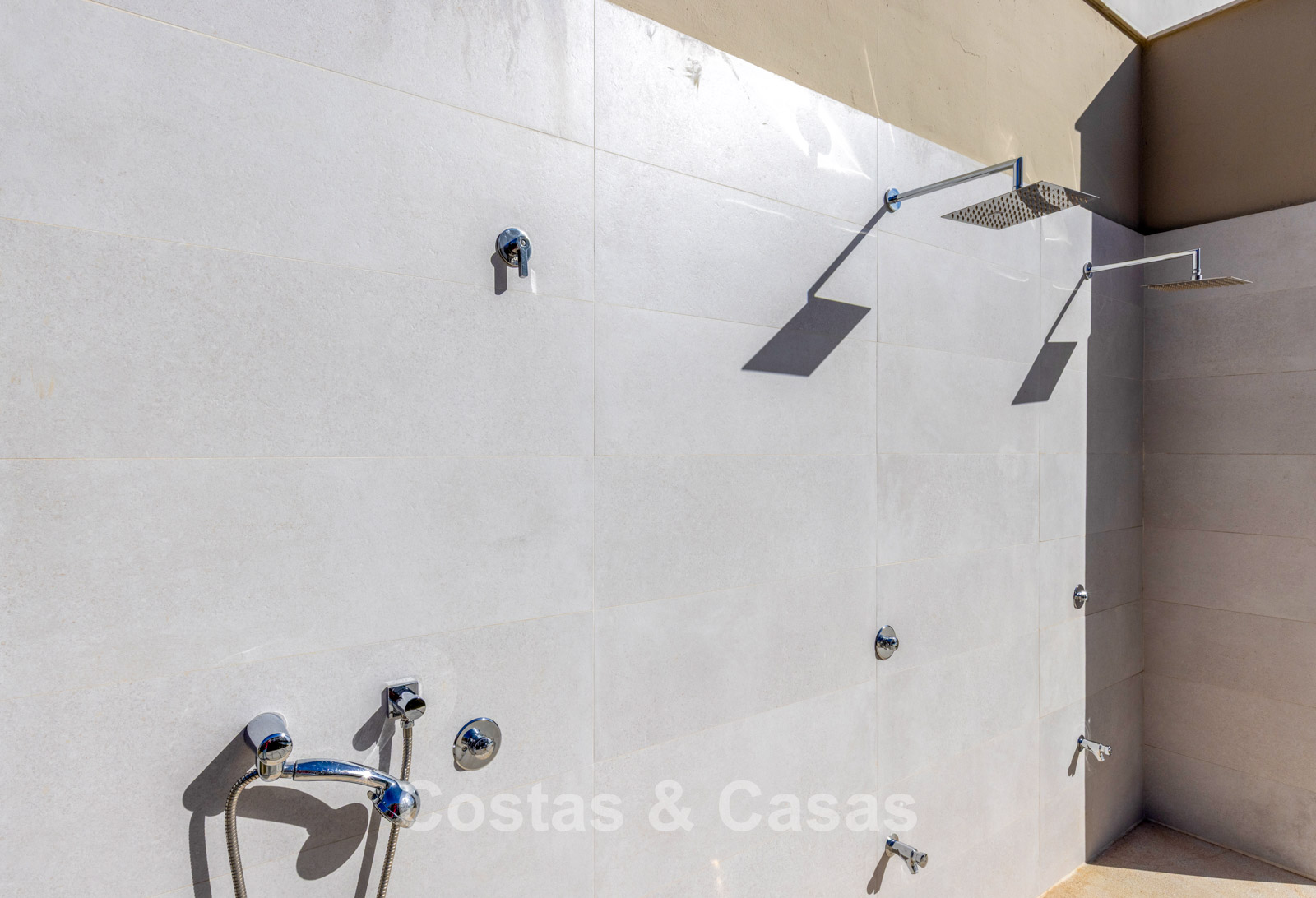 Amplia terraza adicional en la planta superior con cocina exterior equipada con frigorífico, lavavajillas y placa de cocina, zonas chill-out y comedor para disfrutar de una vida al aire libre excepcional.