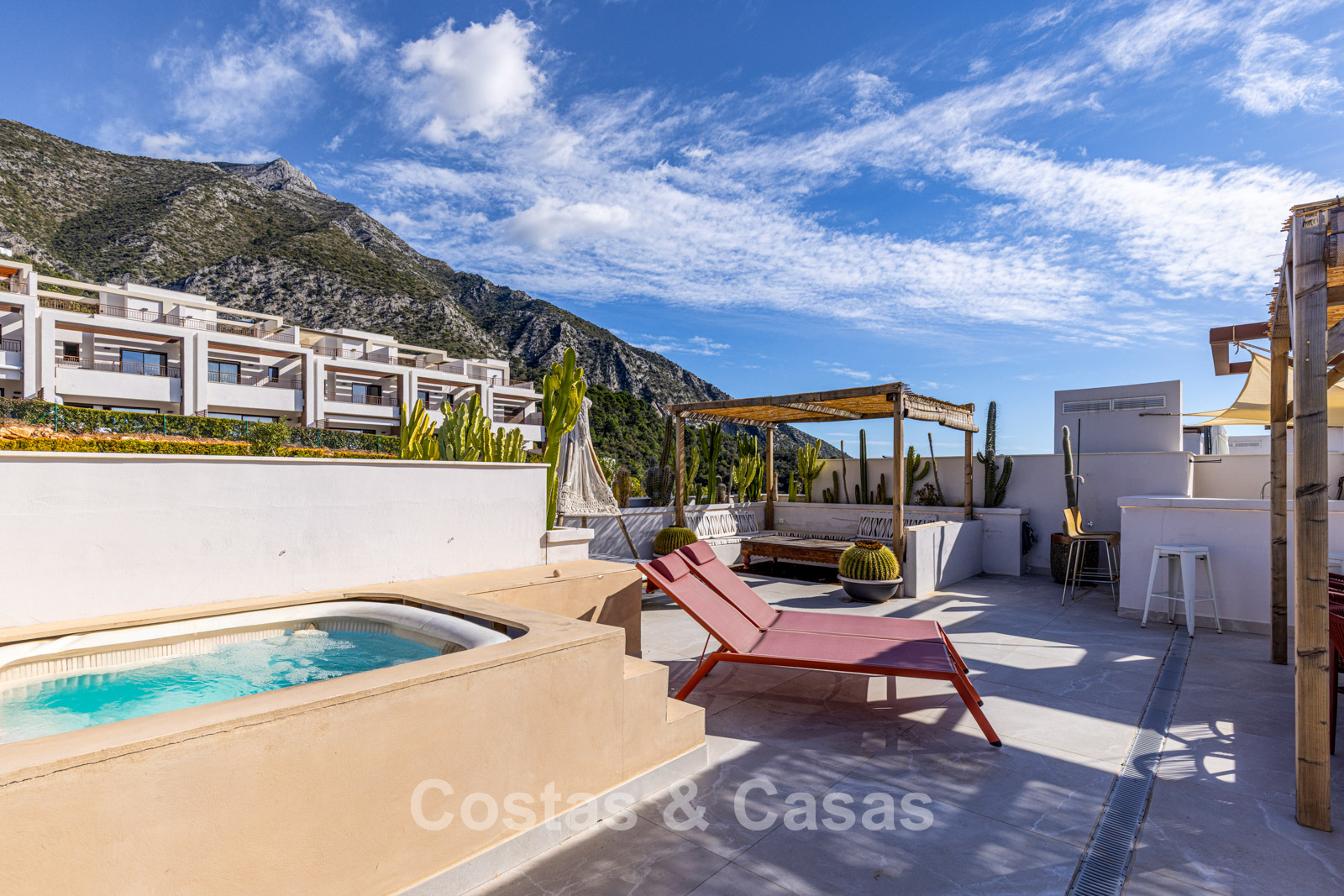 Descubra un remanso de paz y serenidad en este magnífico ático, situado en una comunidad cerrada y segura en Istán, a los pies de la Sierra de las Nieves, protegida por la UNESCO.